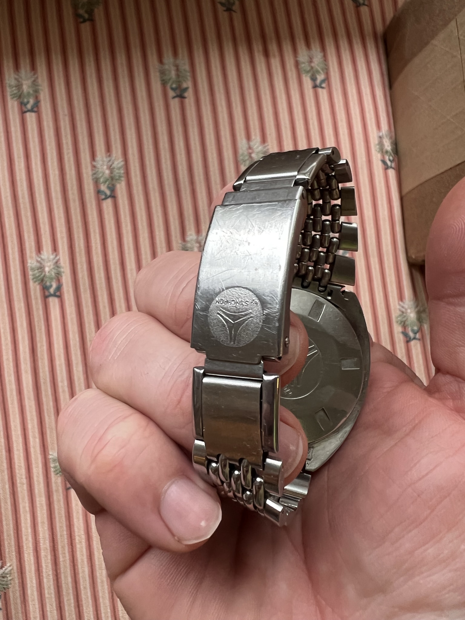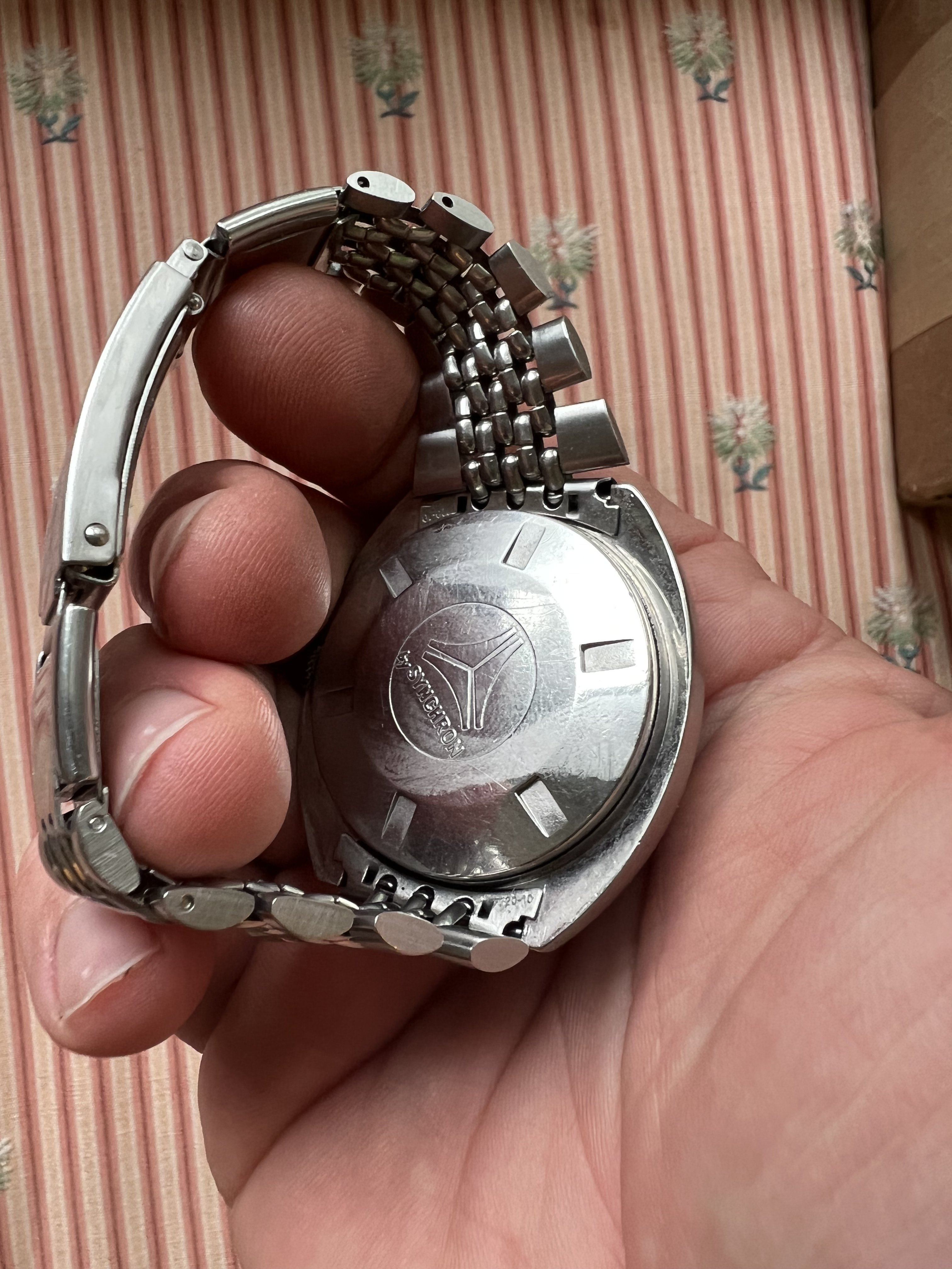 Other: signed original crown, original orange gasket mineral glass crystal, original hands, original Synchron signed Expandro bracelet.
