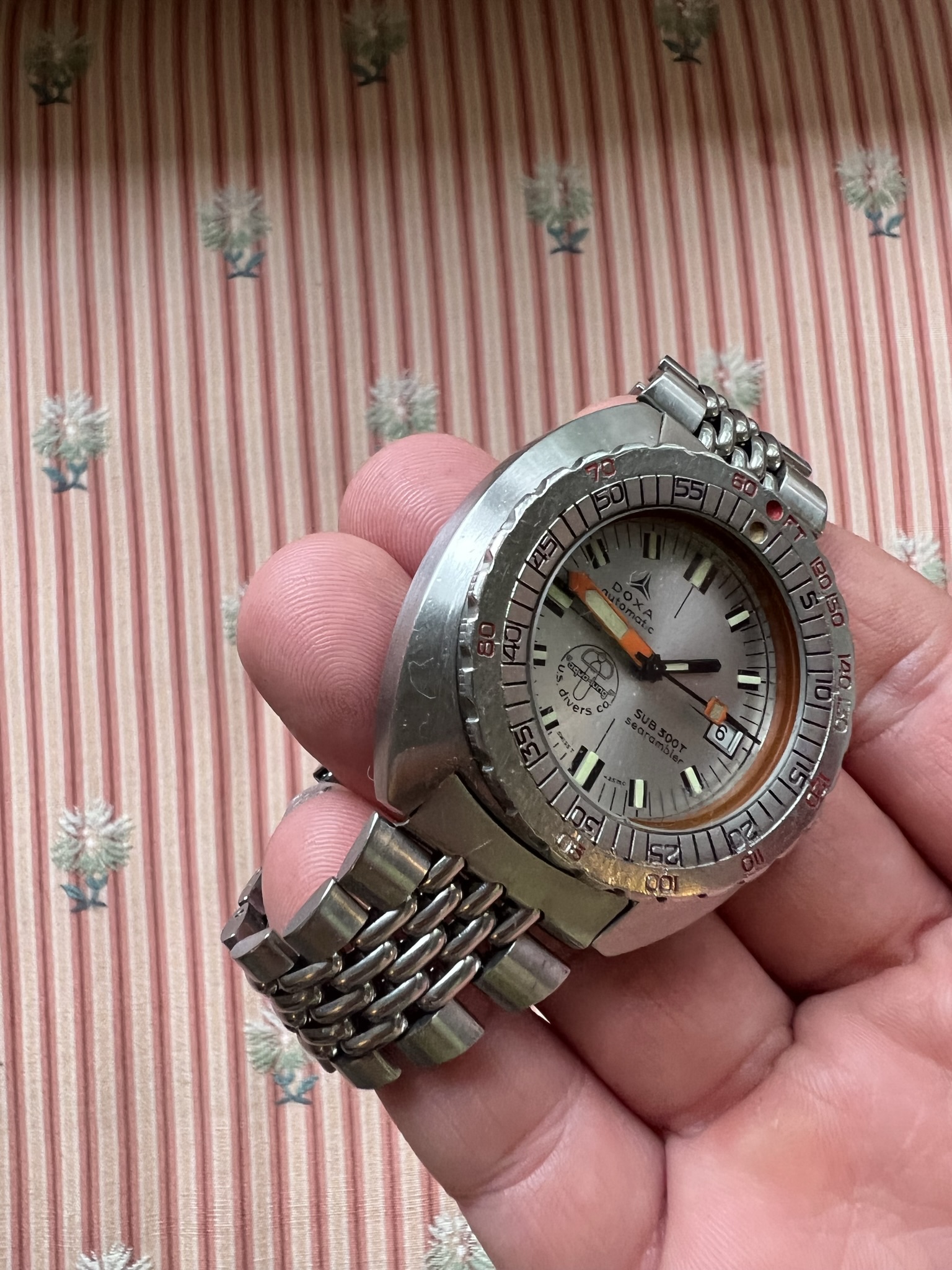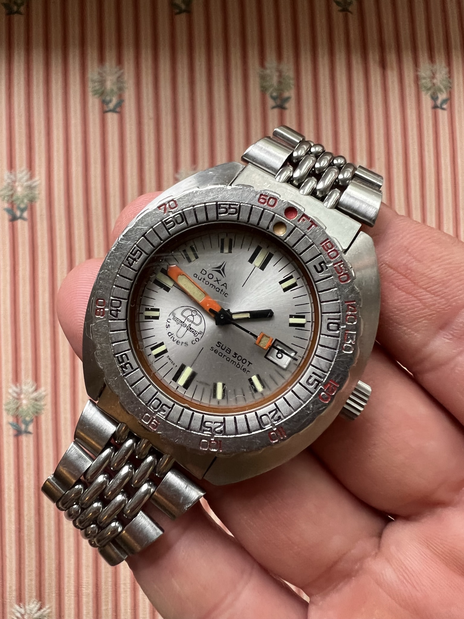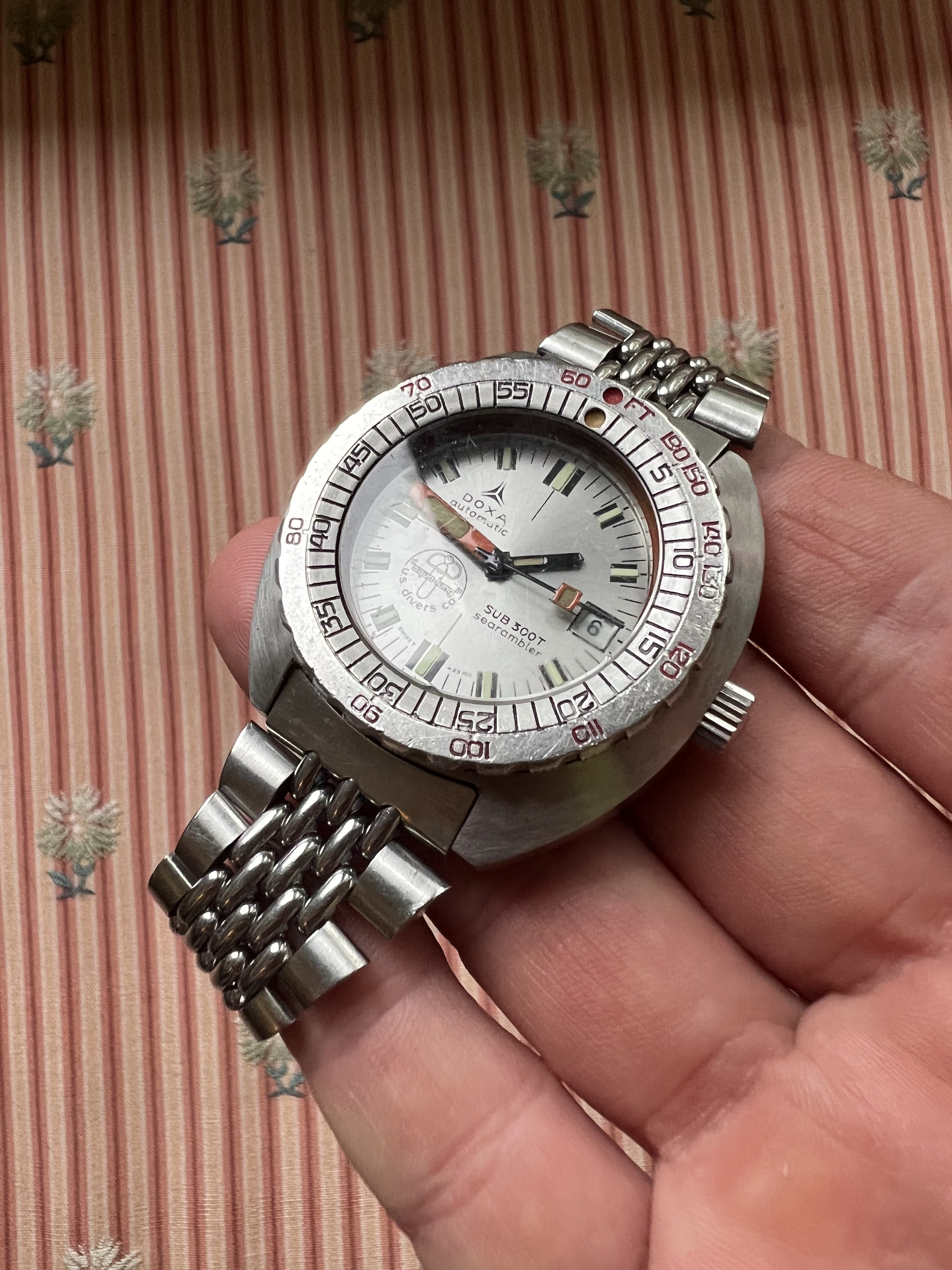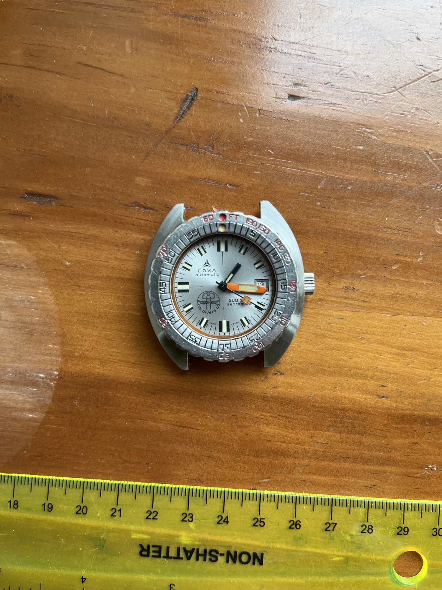 For sale is an uncommon Doxa Searambler, double signed US Divers Synchron. This is one of the better examples I have seen.