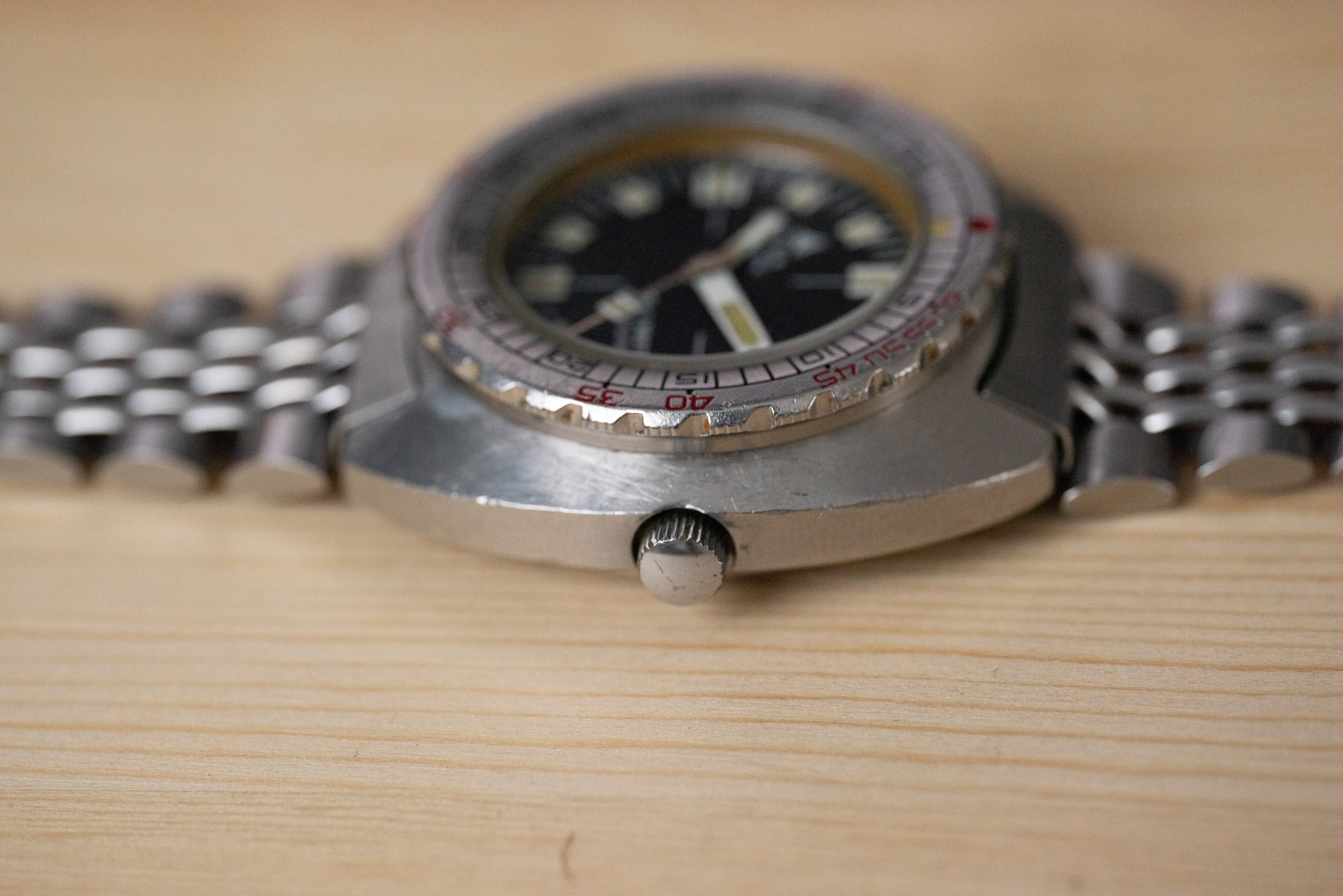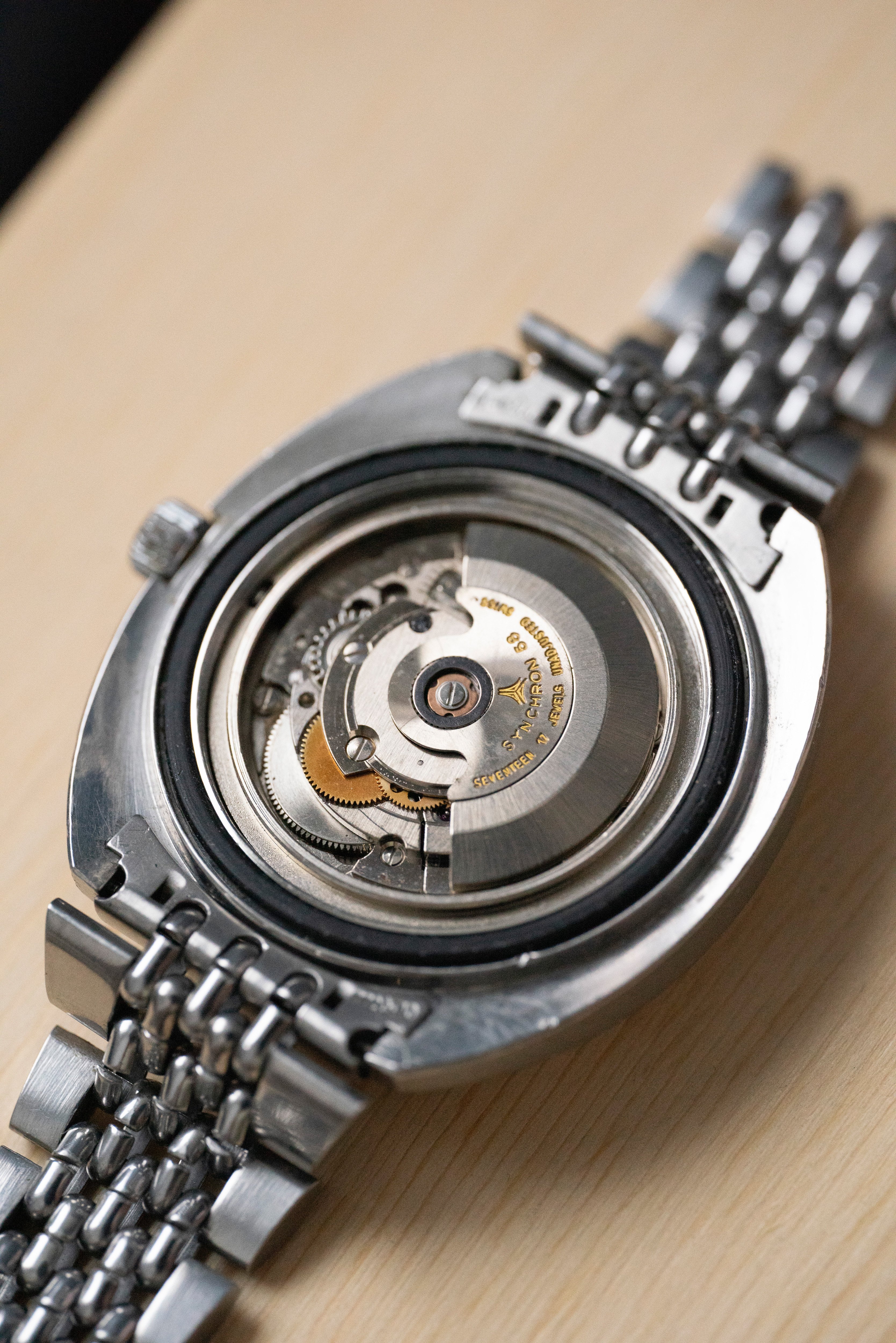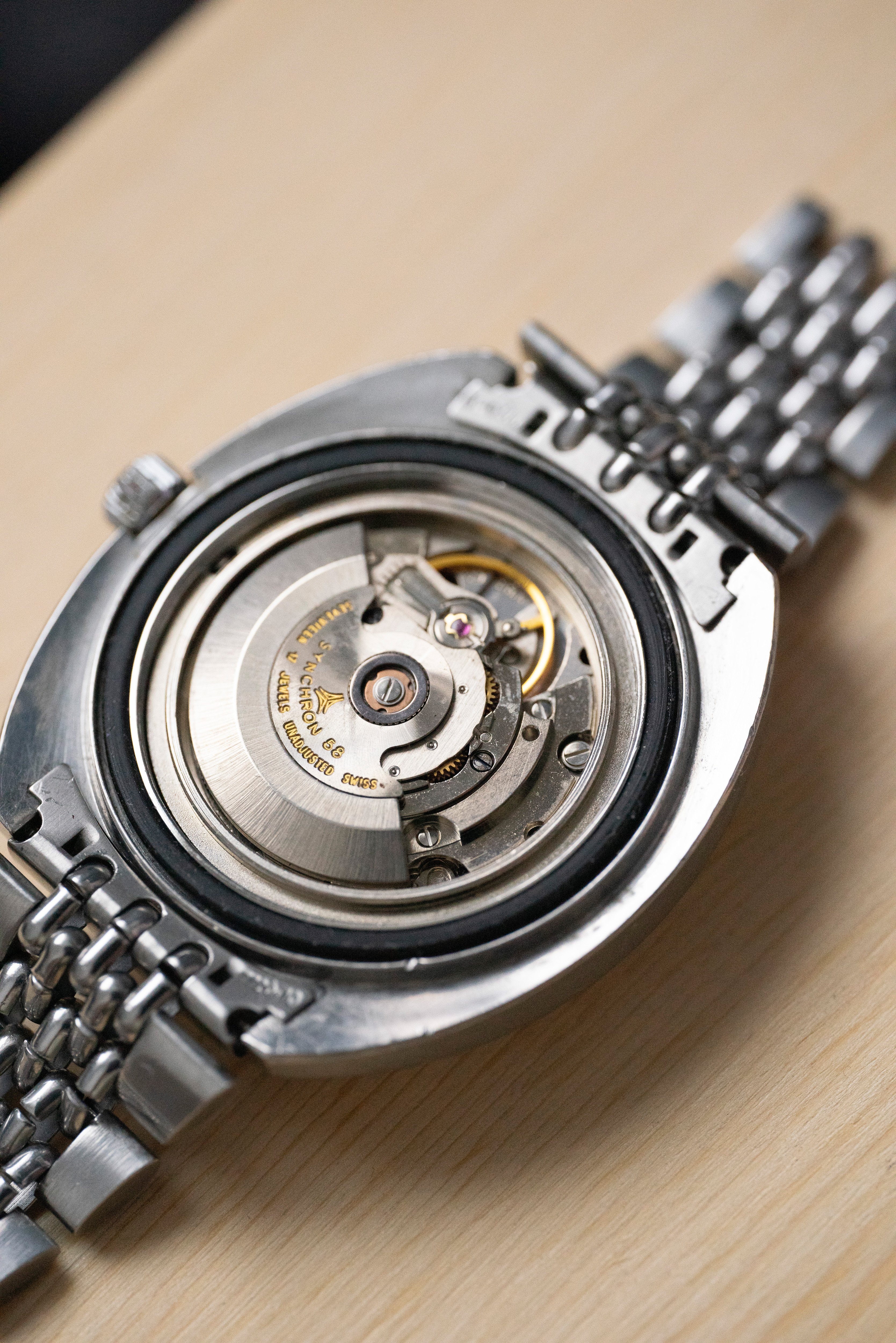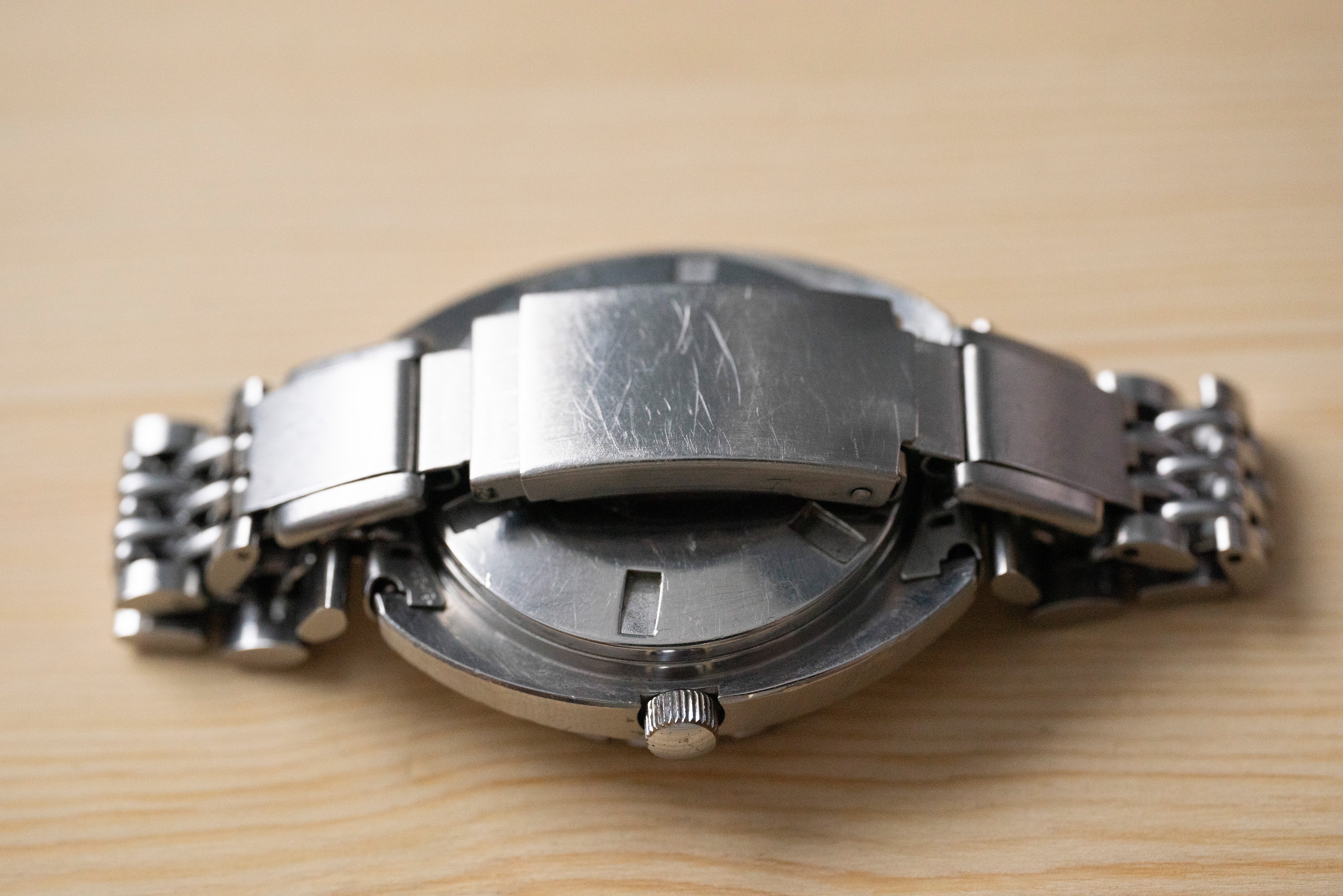 The watch comes on the original Expando bracelet in very good condition. The bracelet has multiple expansion mechanisms which are all perfectly working. Each half of the bracelet has 2 screwed links, 1 spring loaded link (springs are intact with tension) clasp adjustment works smooth and the clasp link expansion works fine as well.