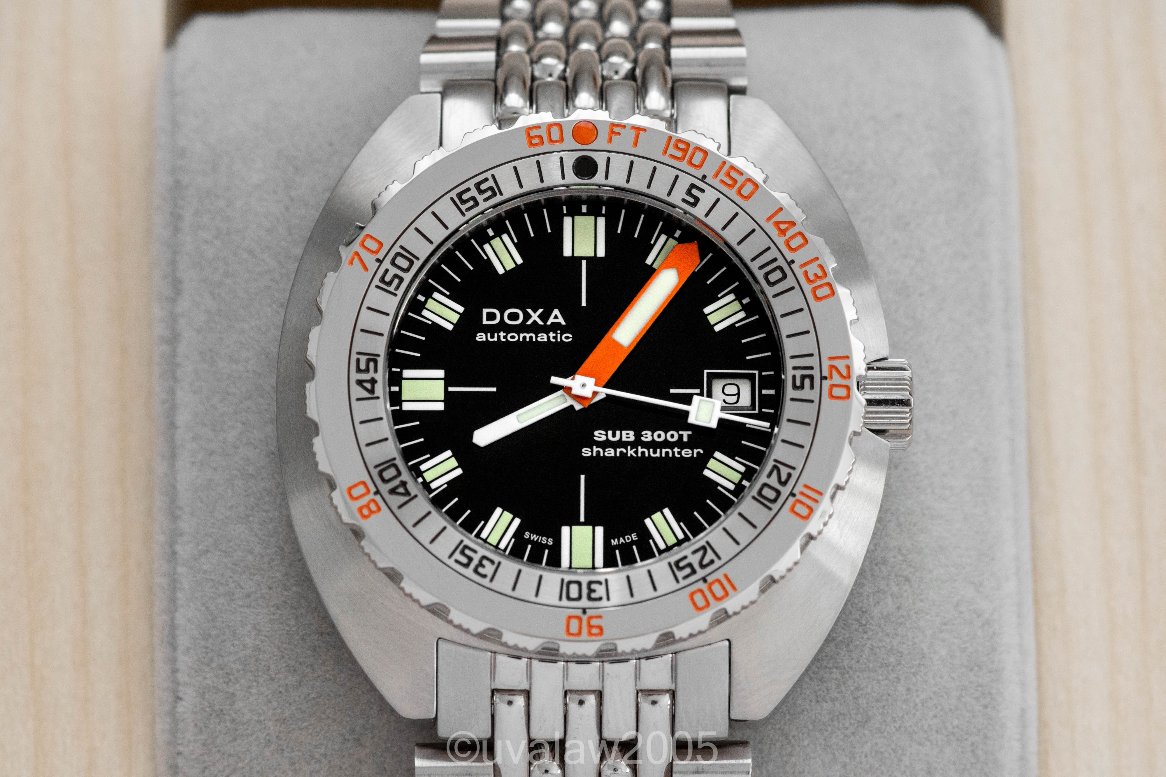 ·For sale is my DOXA SUB 300T Sharkhunter on OEM bracelet in excellent condition with light surface wear. Comes with inner/outer box, manual, hang tag, and warranty card. I'm the second owner, original owner purchased it from DOXA in May 2023 (two-year warranty runs through May 2025).