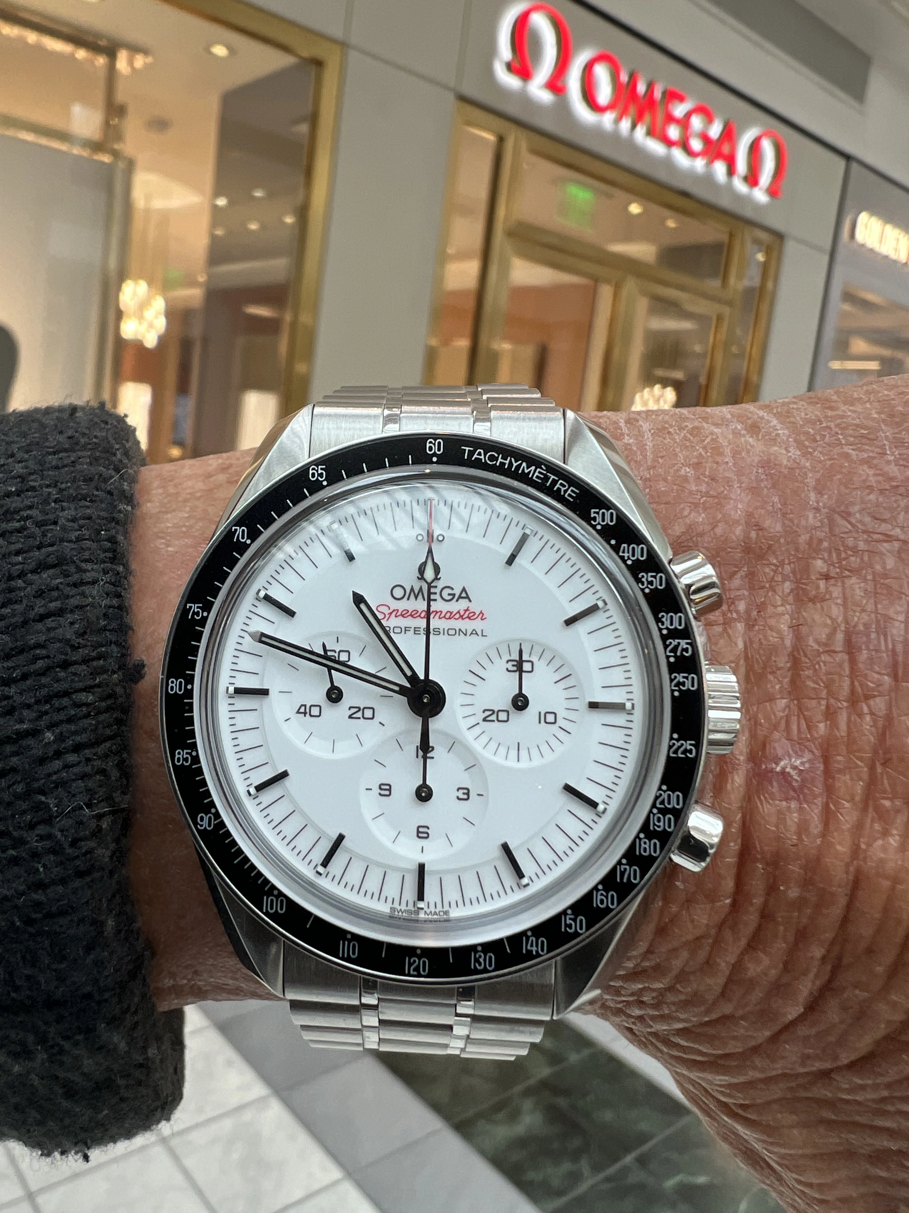 Ouch, that's very unfortunate. I've never dropped a watch or had a springbar give way, but I had a horror experience two weeks ago in the Zurich airport. I was wearing my new Sedna/steel Speedmaster that I got at a bargain price. Security at the Zurich airport has always been a pretty low key affair, no need to remove, shoes, belts, or empty pockets. But for some reason I tripped the metal detector, the security guy asked me to remove my wallet, and my watch. He held a small blue tray in which I put my wallet and I carefully placed the watch in it and said, "be careful". As I removed my hand and for some unknown reason the tray he was holding flipped forward and we watched the watch do a swan dive 4 ft to the hard terrazzo floor, splat, face down. Uh,oh, that can't be good. He was very apologetic, " I'm sorry, I'm sorry, I was very clumsy, sorry" I reached down and picked the watch up expecting to find a shattered crystal, but no, it was intact. I quickly went back through the detector, grabbed my wallet and watch and sat down to do a thorough inspection and I could not find any ding, dent, scratch or rash anywhere. And it was still running. That was two weeks ago and it is running fine at +2 sec/day and there just is no mark on it. Why there was no damage is a mystery. Talk about luck. But I will have to start carrying a service pouch or box and take the watch off before going through security in the future, a hassle, but a necessary one.
