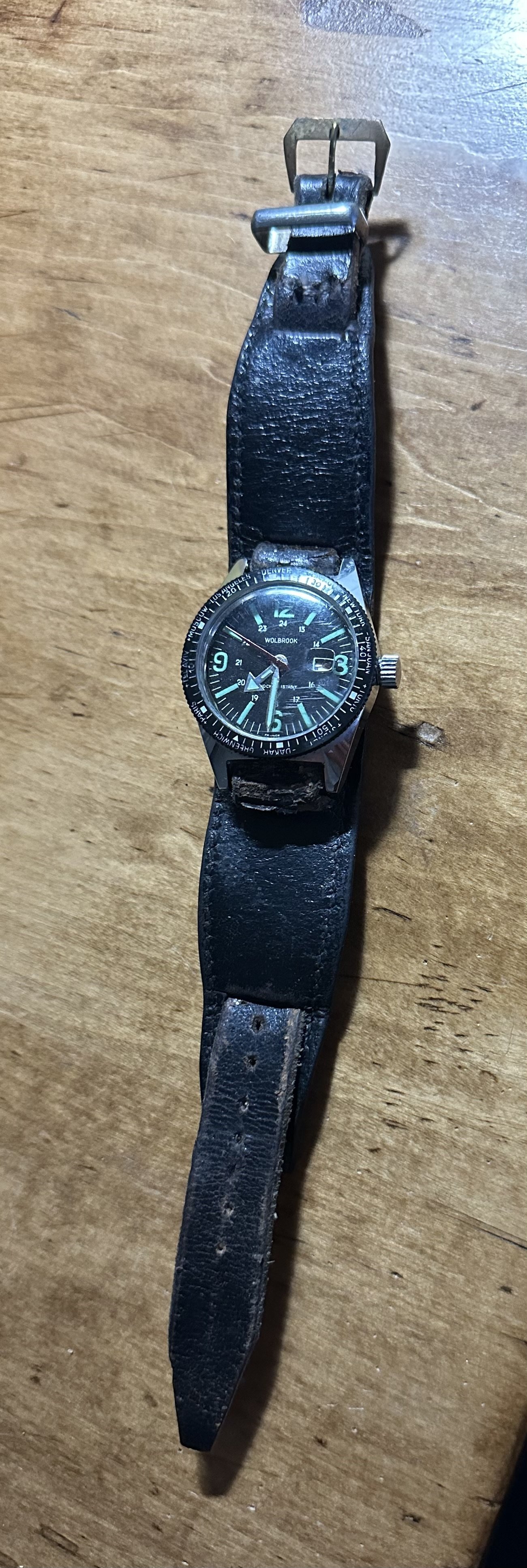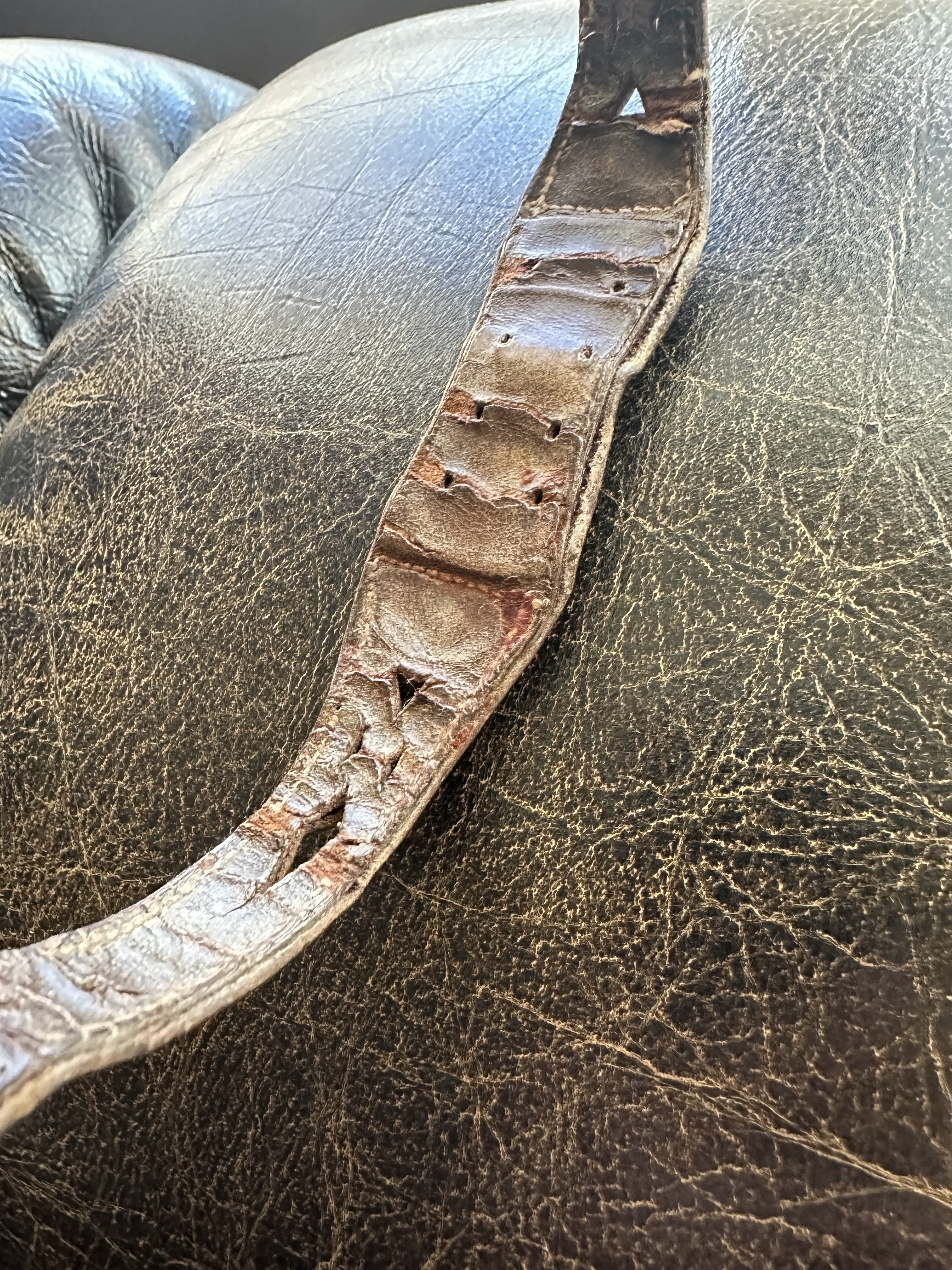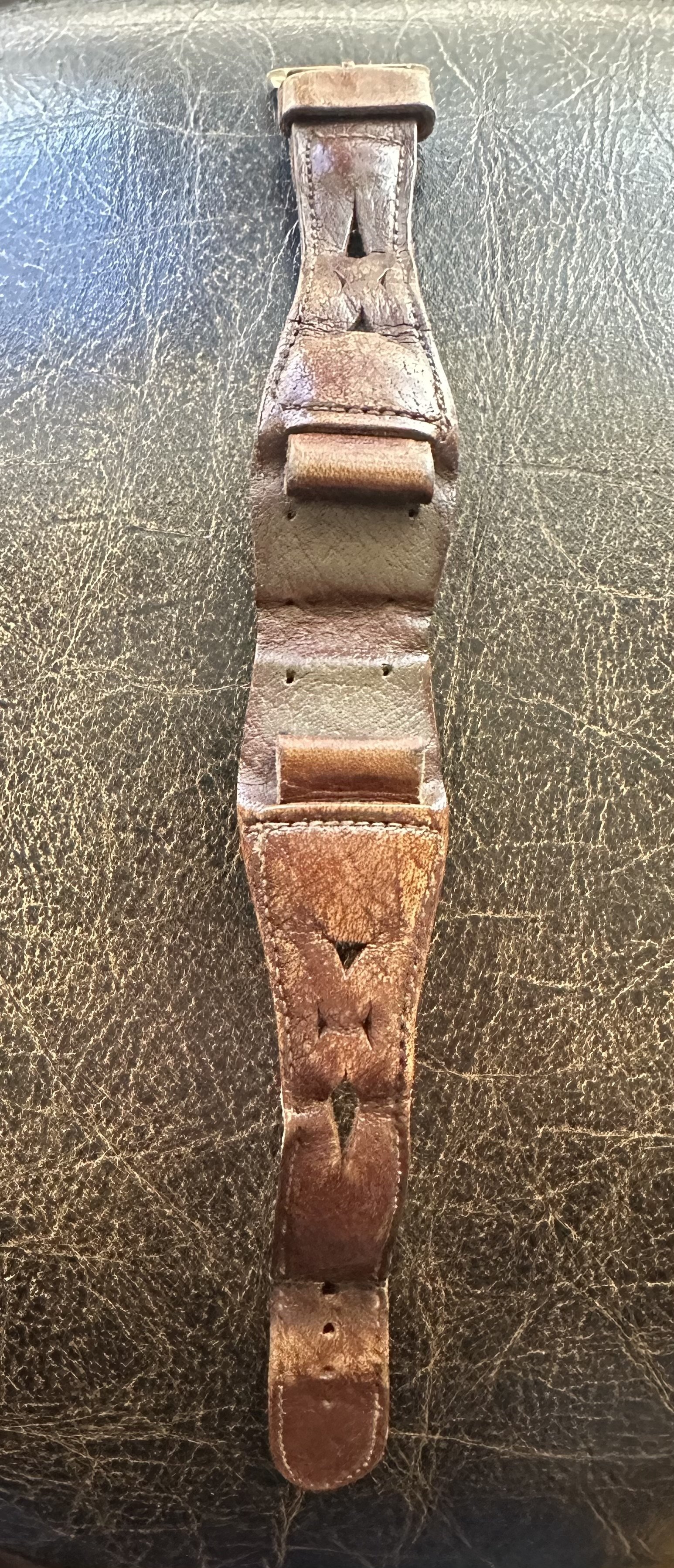 ·Here’s my amazing gnarly strap contribution [see pic below]…an Omega Barenia leather NATO that I purchased soon after I received my new 1861 in 2015. I think I mowed the lawn at least 72 times wearing that strap…possibly 73 or 74 times…and some sweating was probably going on during most of those mowing evolutions.