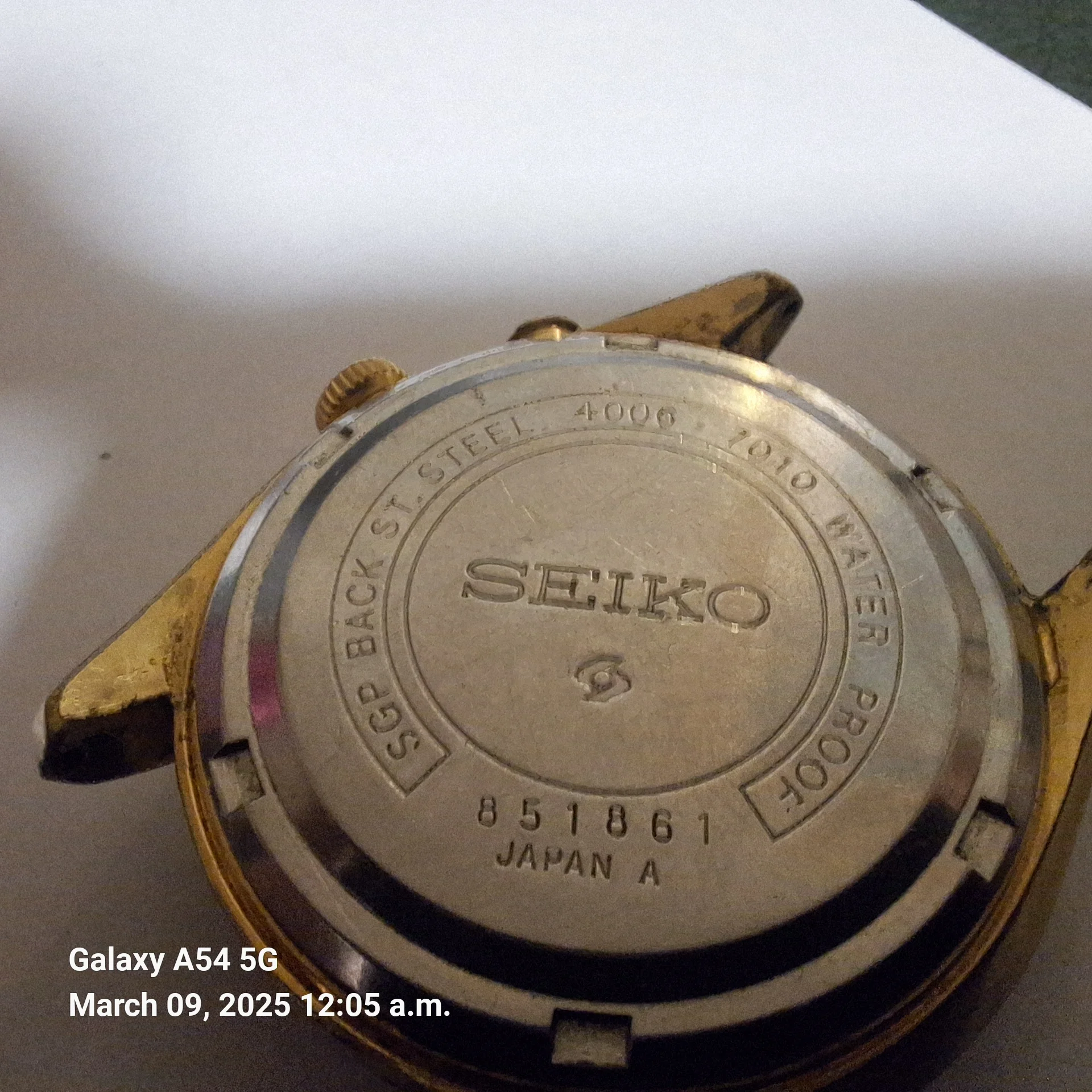 ·My first watch gifted to me in1967 when my parents reurned from Japan. It's been in my box for about 40+ years ago when it started to have resistance when winding the alarm or setting the time. The gold plating on the case is worn but still wearable. The metal band is original and so is the crystal.