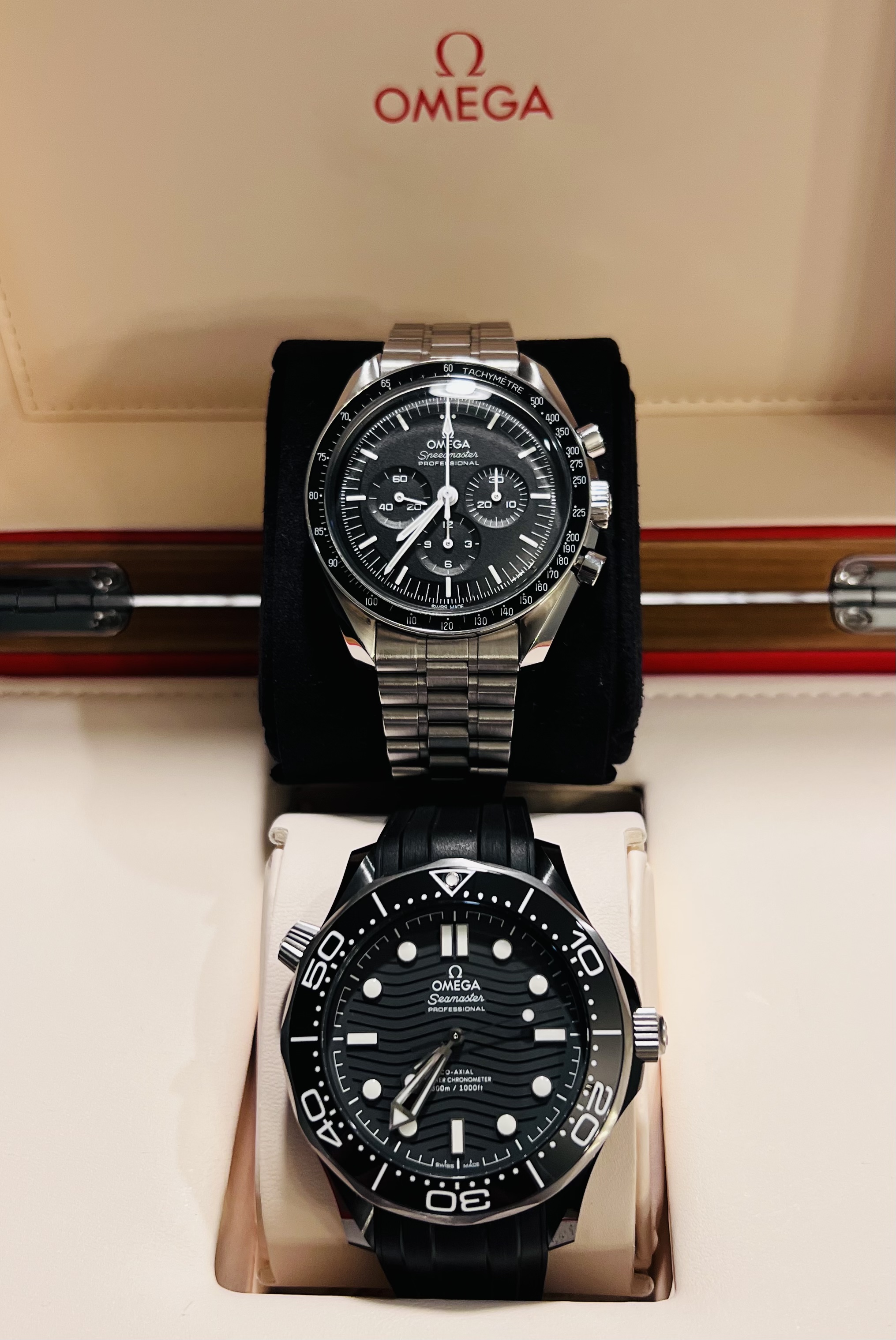 Posts 375 Likes 2,965 Texans93 ·Feb 10, 2022 Two and done….for now. The Seamaster arrived today, I think it compliments the Speedmaster well. I couldn’t be happier!