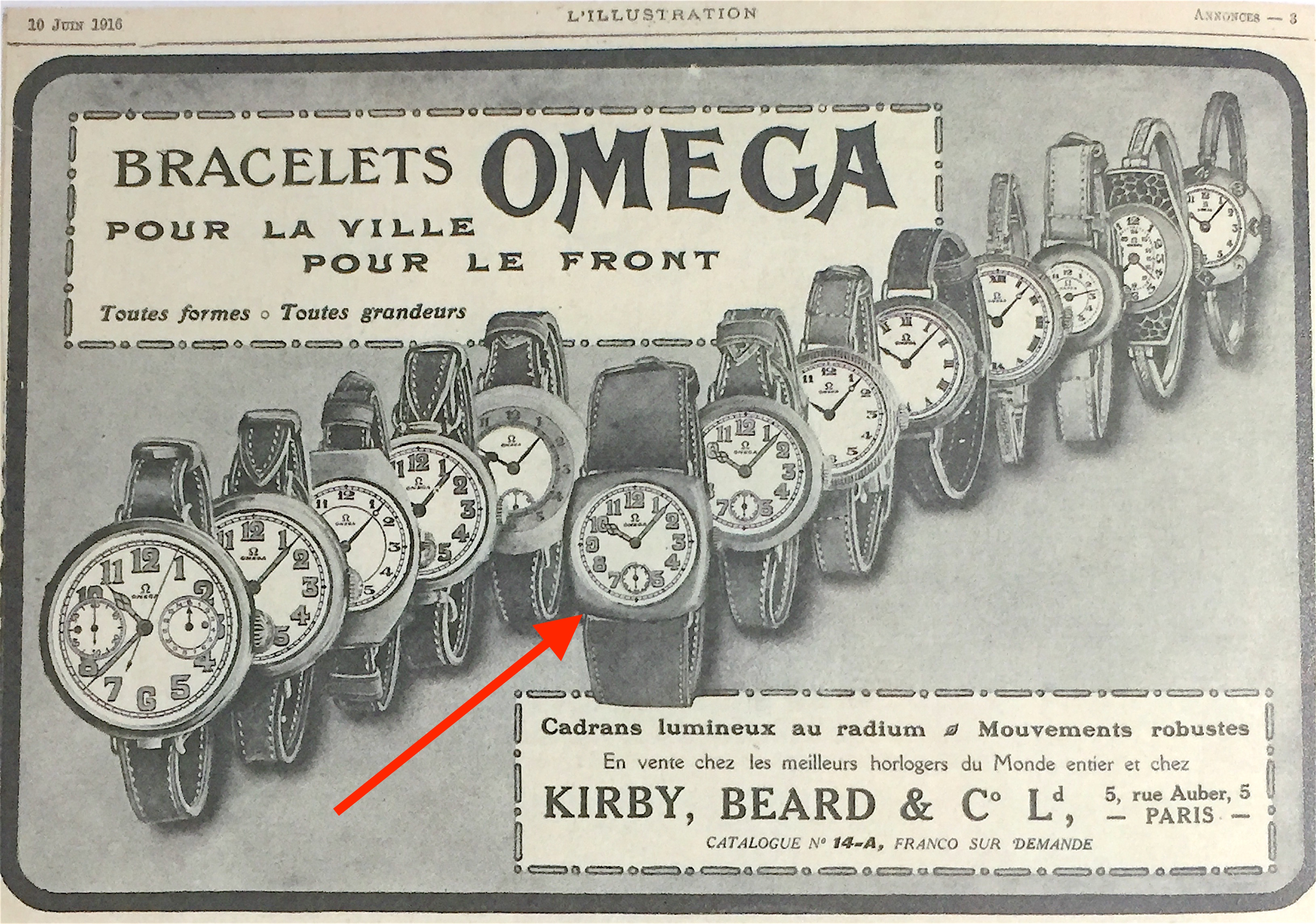 They advertised Omega watches in the weekly French newspaper "L'Illustration", and from an advert dating to 20 June 1916 we see: