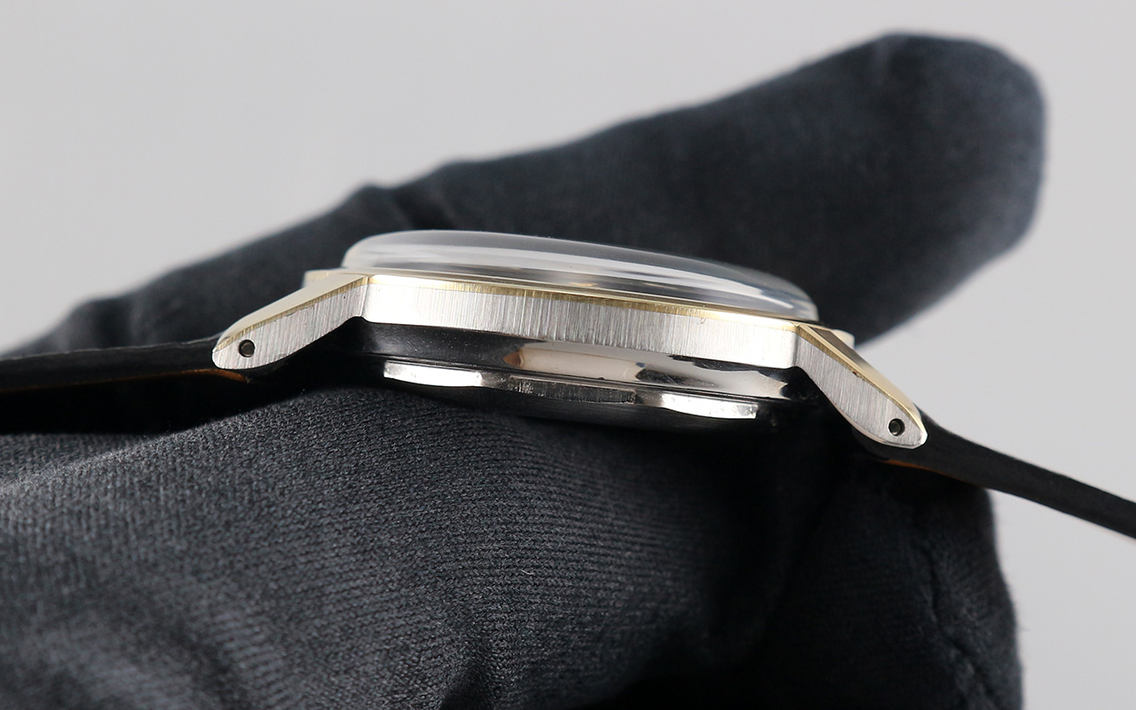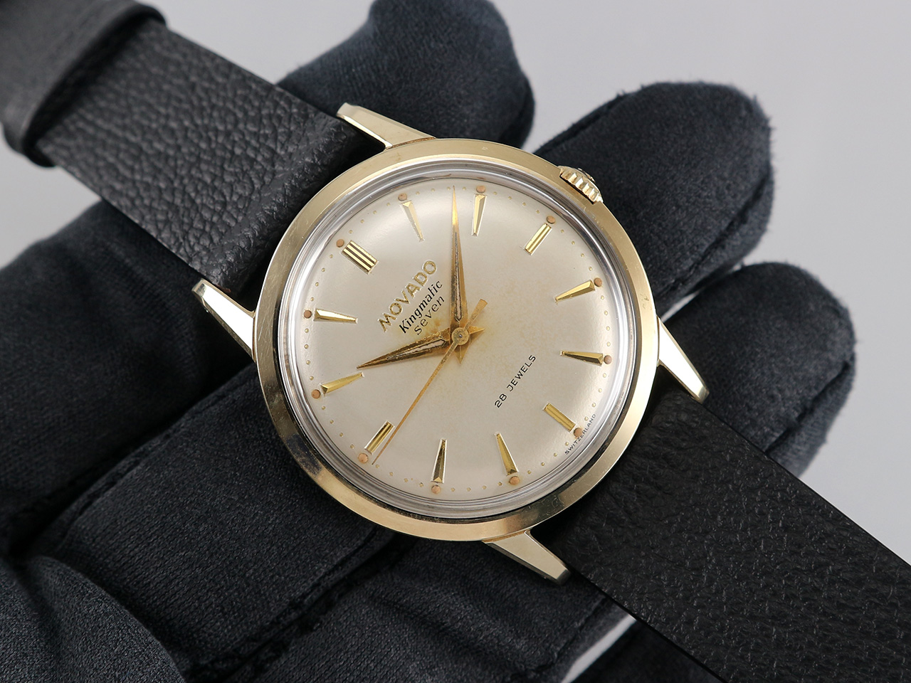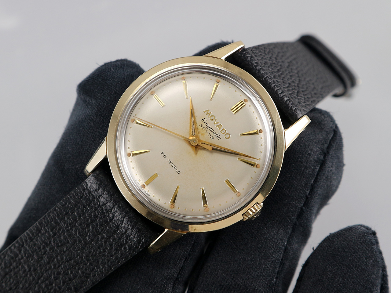 ·Up for sale is a very nice Movado Kingmatic Seven ref. 11232. The original dial with pearled dots & creamy patinas looks beautiful. The gold-capped case is unpolished and in great shape plus the original crown. It measures 33.8mm wide without crown and 40.5mm lug to lug, the lug width is 18mm. Inside is the Movado in-house cal. 431A, service history unknown but still running strong & keeping good time.