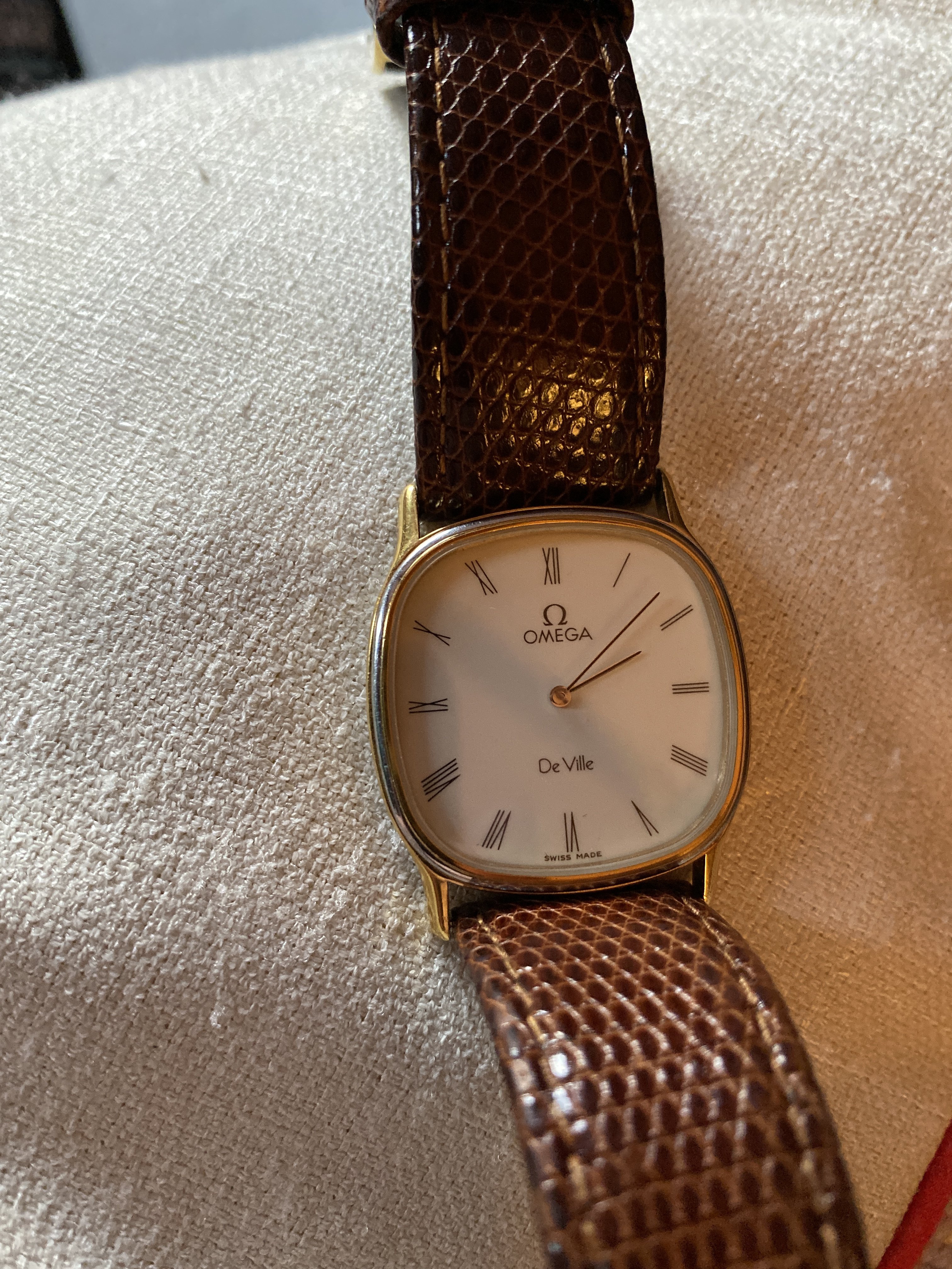 My father has this Omega De Ville, bought in the early 80s in Switzerland. Can anyone tell us anything more about them? I've had a good Google but can't find the model anywhere else, in fact I can find very few DeVille in that shape and from that era with Roman numeral figures.