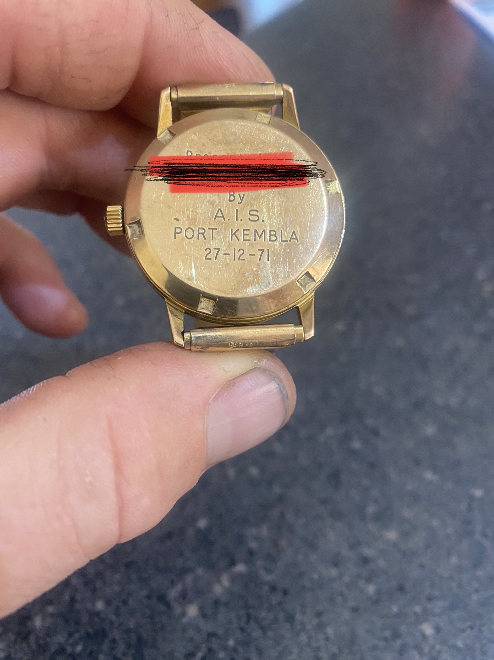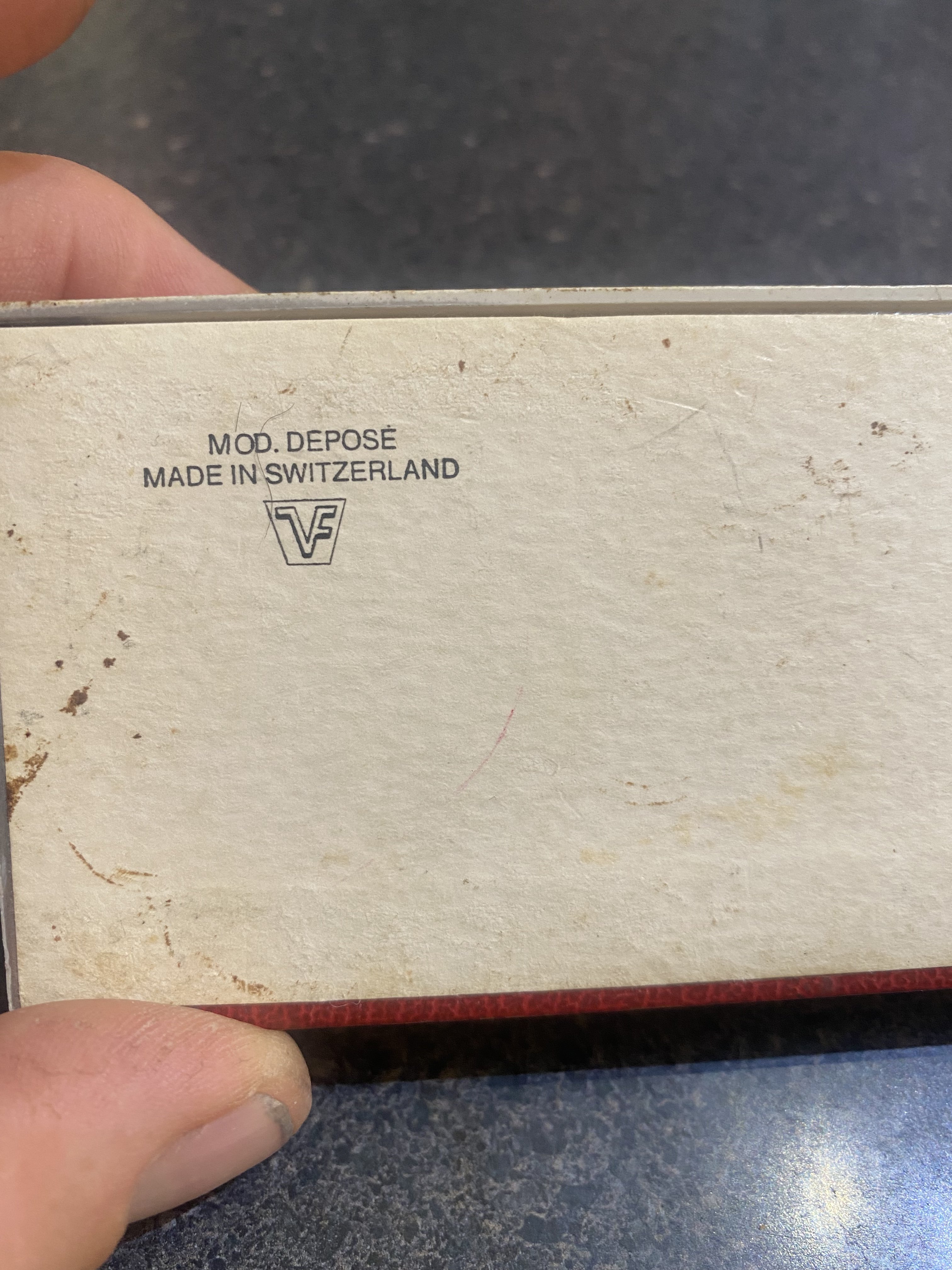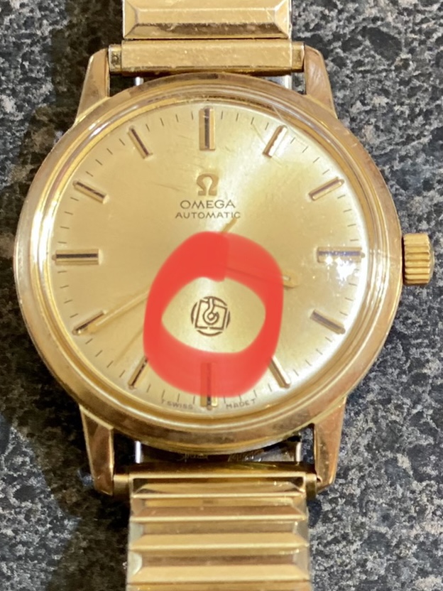 Found this in my grandfathers box of things and am curious as to it’s origins. The dial says omega automatic and the box says Mod. Deposé however there is a strange stamp I’m unable to identify. There is no model number on the rear , only my grandfathers name and date. Any help would be greatly appreciated.