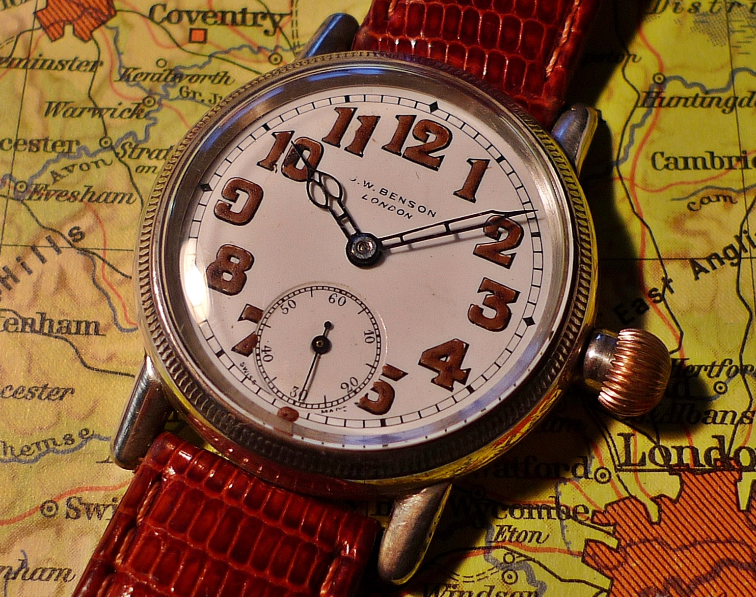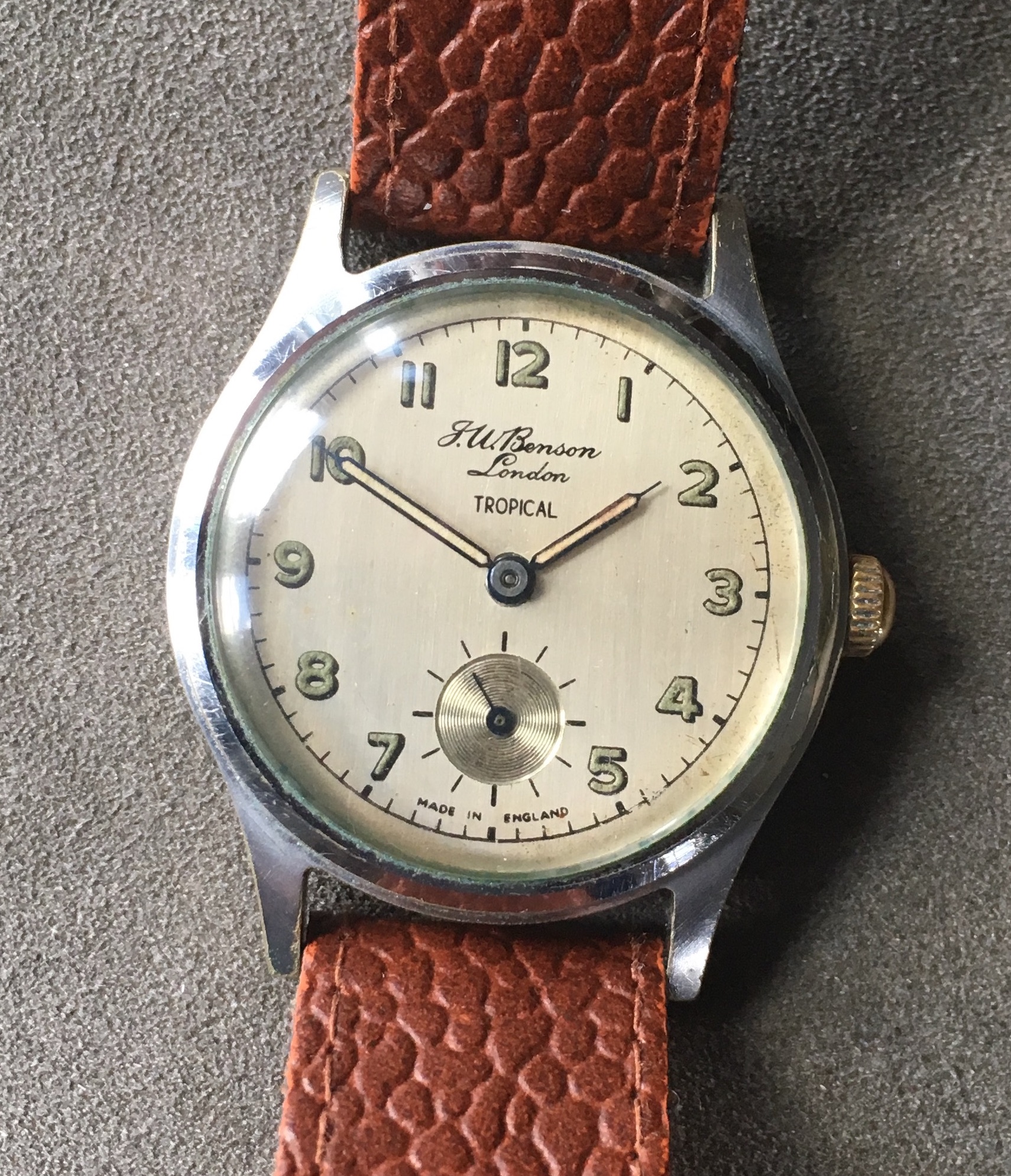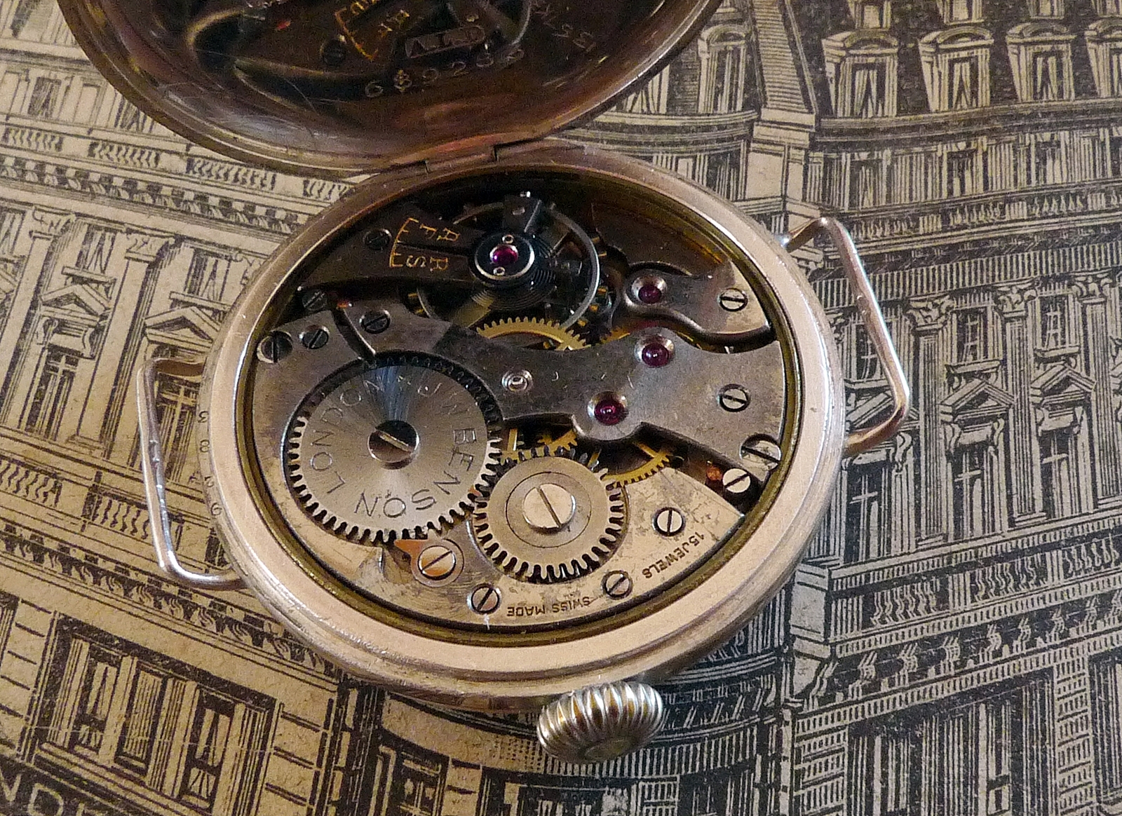 Not many persons have English wrist watches in their scope. If so, one thinks perhaps of the Smiths watches, mostly post WWII. However, there are few made in the first three decades of the last century, which have continued the traditional English watchmaking, which has been superior in the 18th and 19th century. They, of course, were not competetive with respect to their price and a representative example for the decline of english watchmaking excellency.