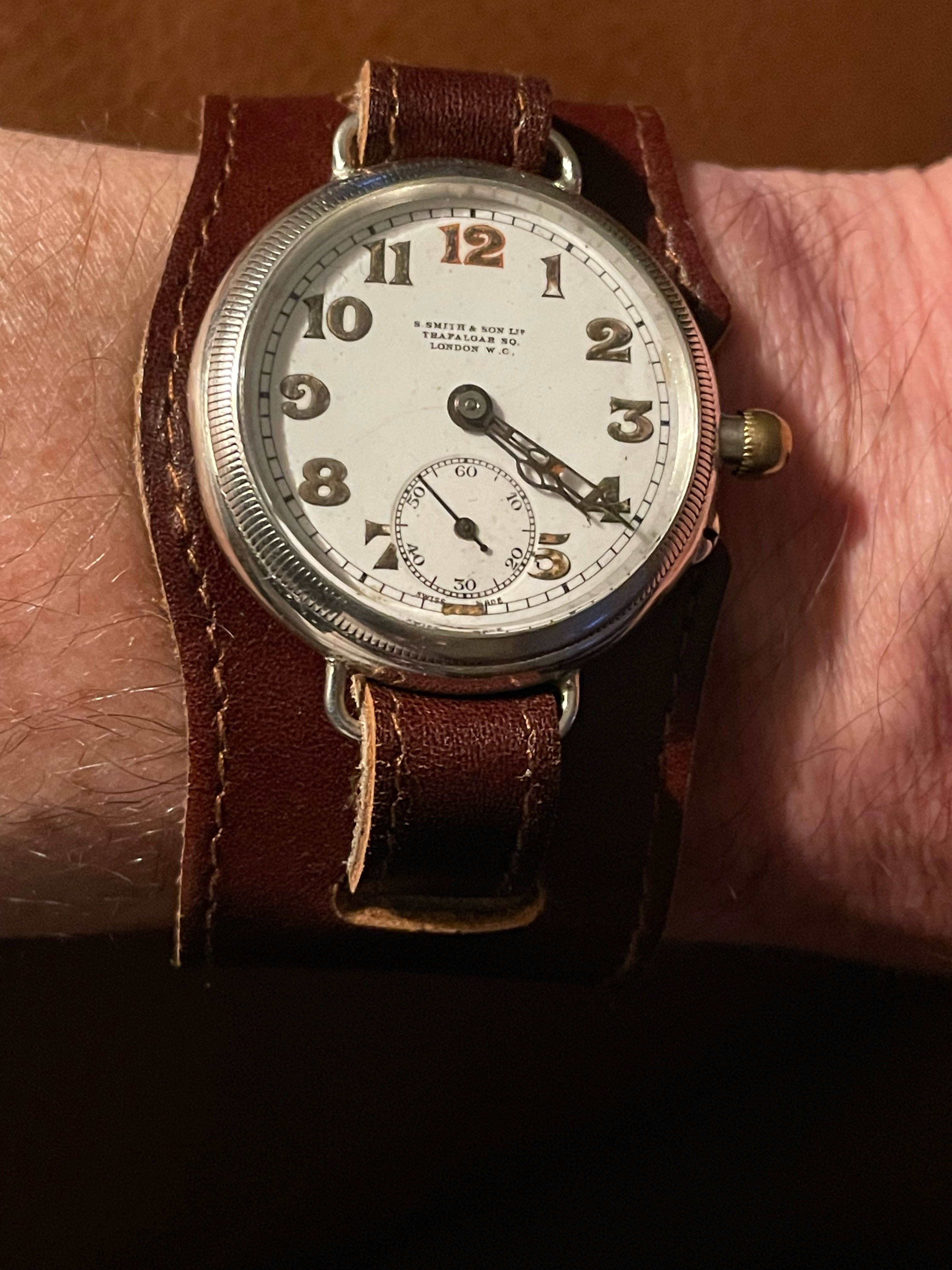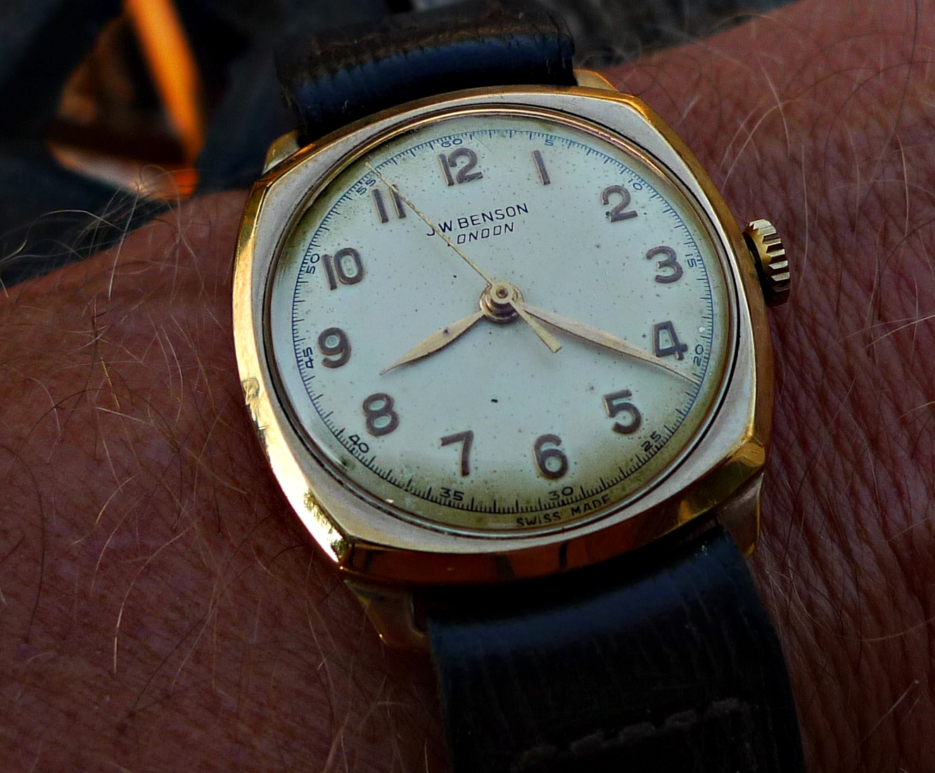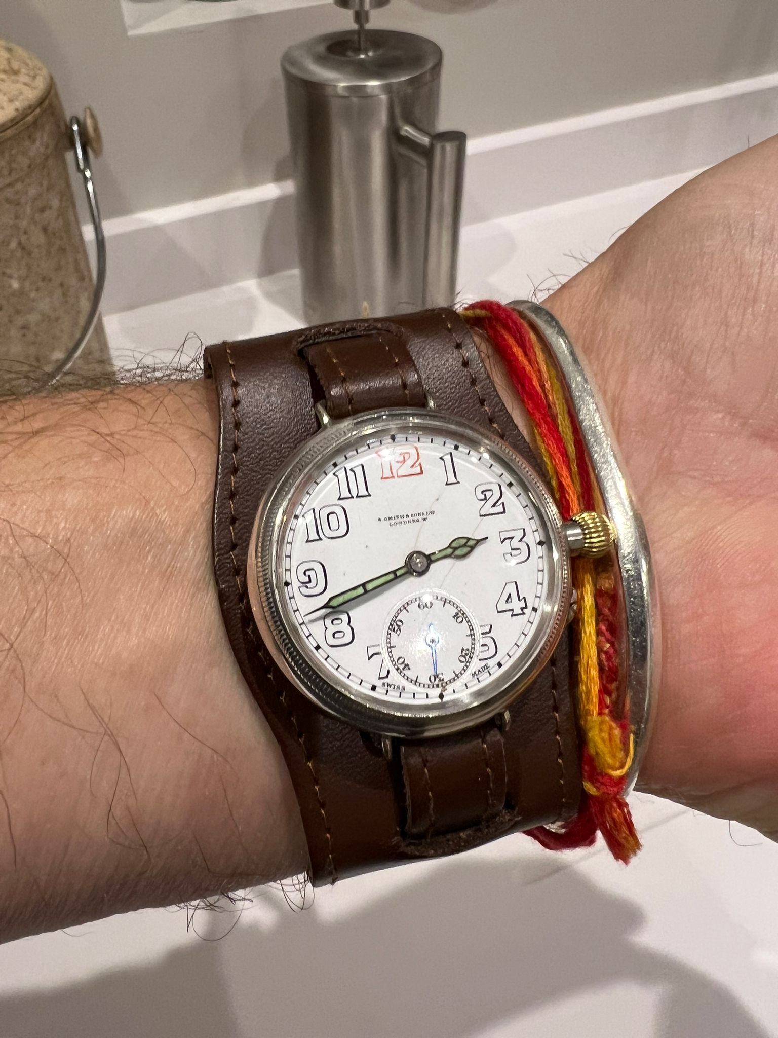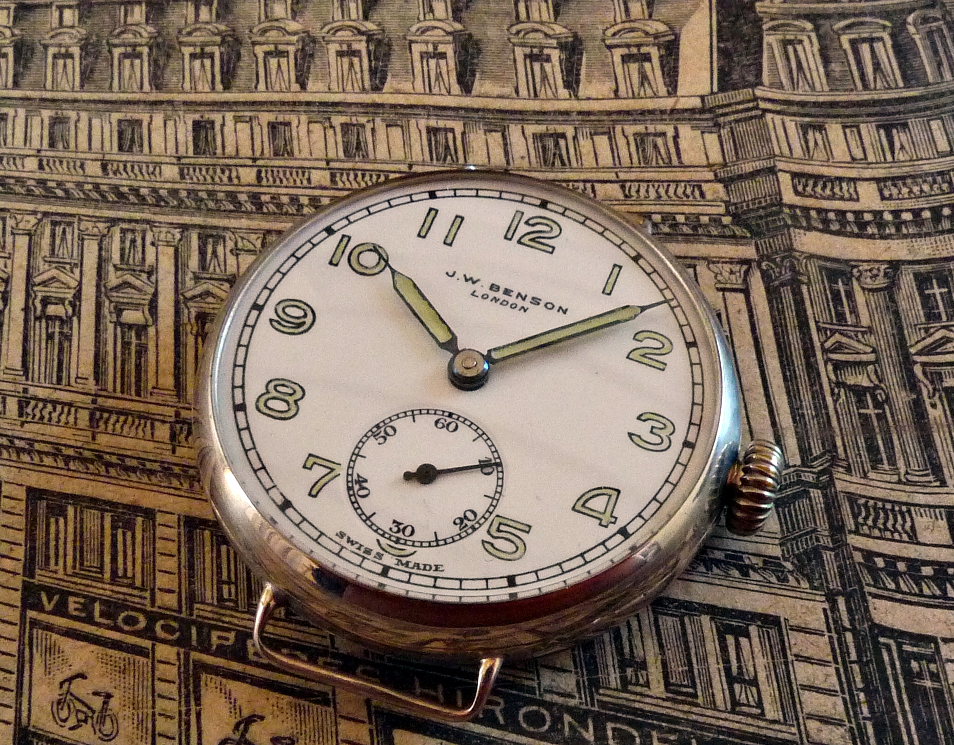 Not many persons have English wrist watches in their scope. If so, one thinks perhaps of the Smiths watches, mostly post WWII. However, there are few made in the first three decades of the last century, which have continued the traditional English watchmaking, which has been superior in the 18th and 19th century. They, of course, were not competetive with respect to their price and a representative example for the decline of english watchmaking excellency.