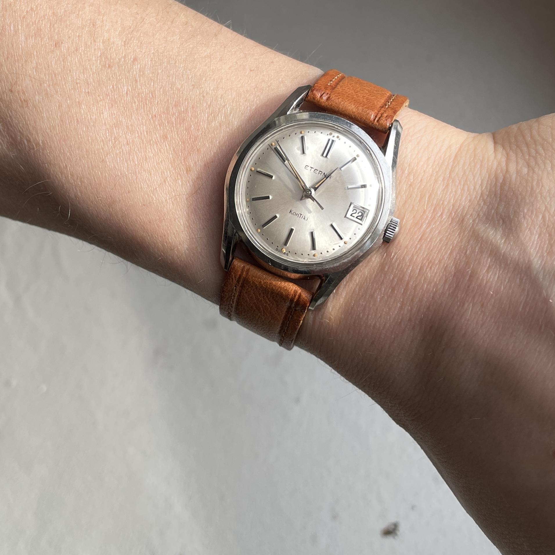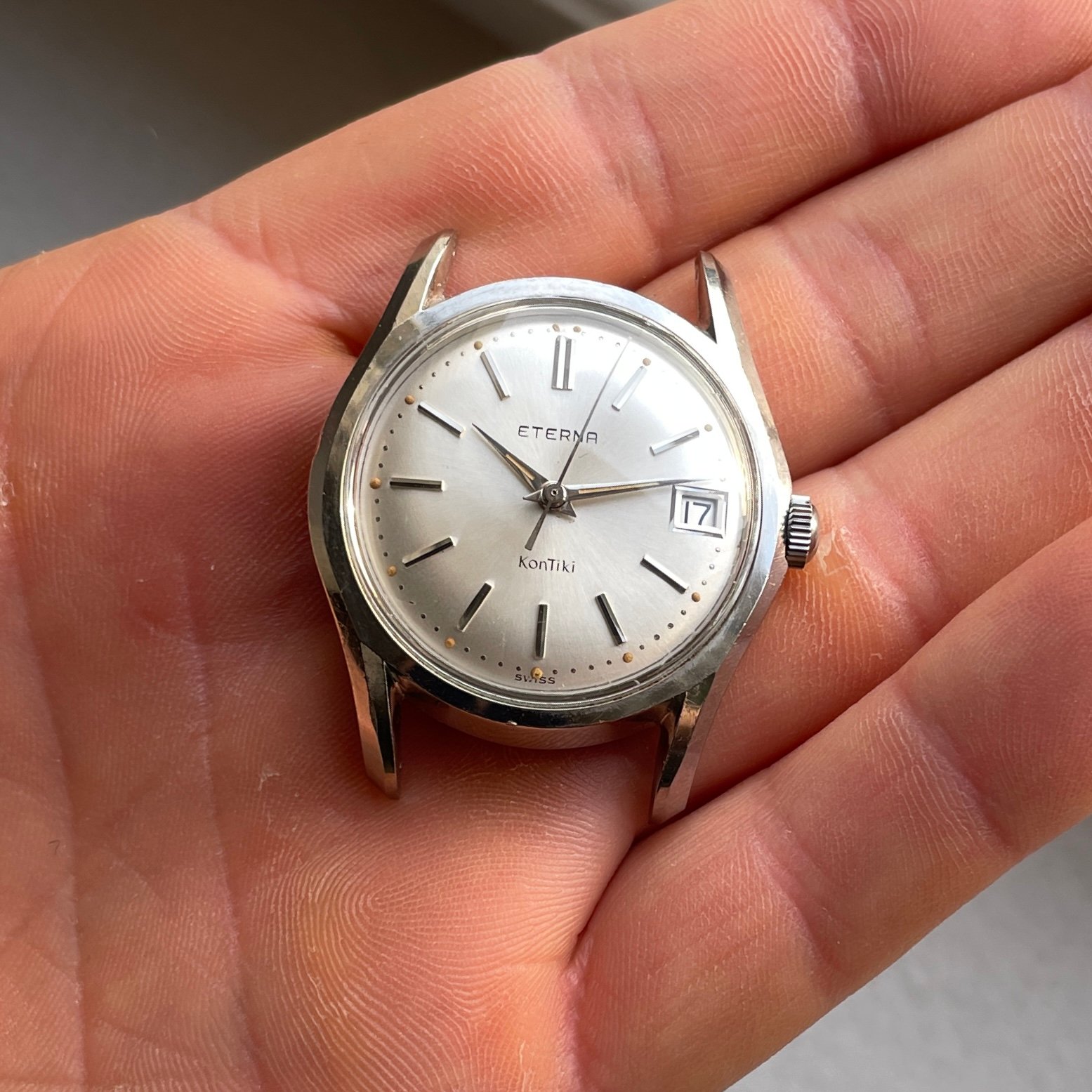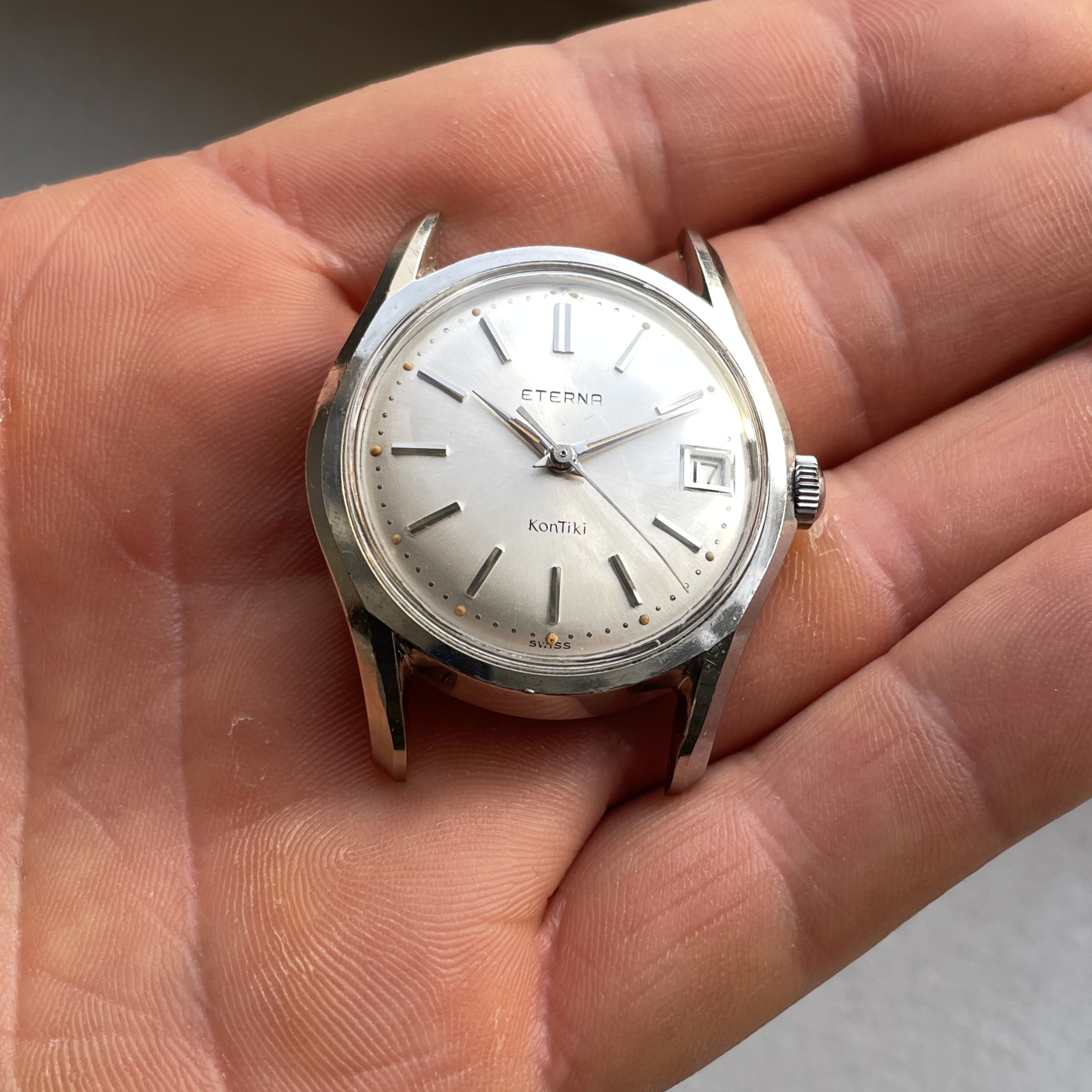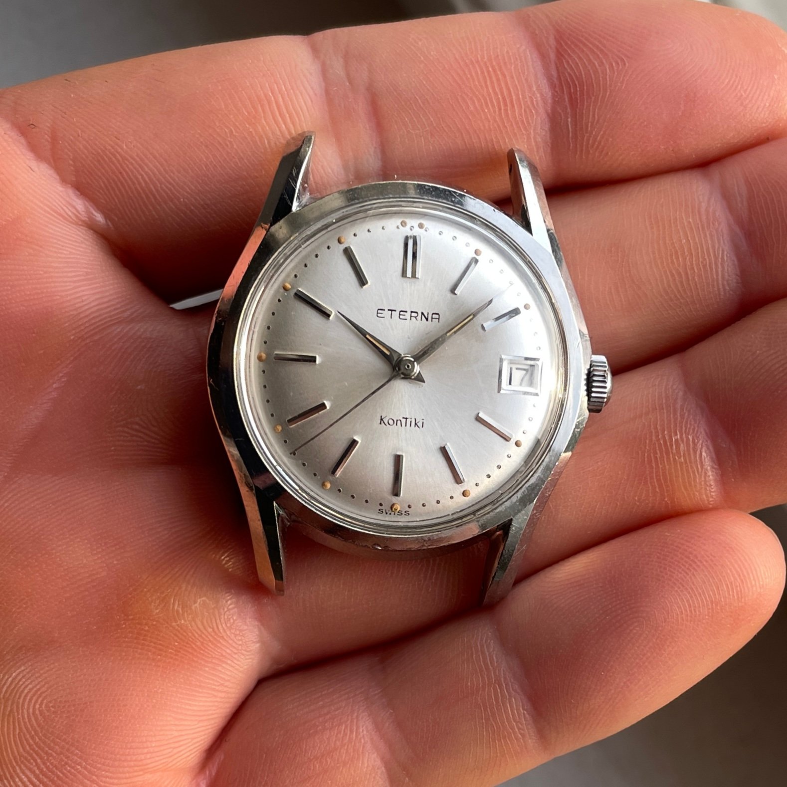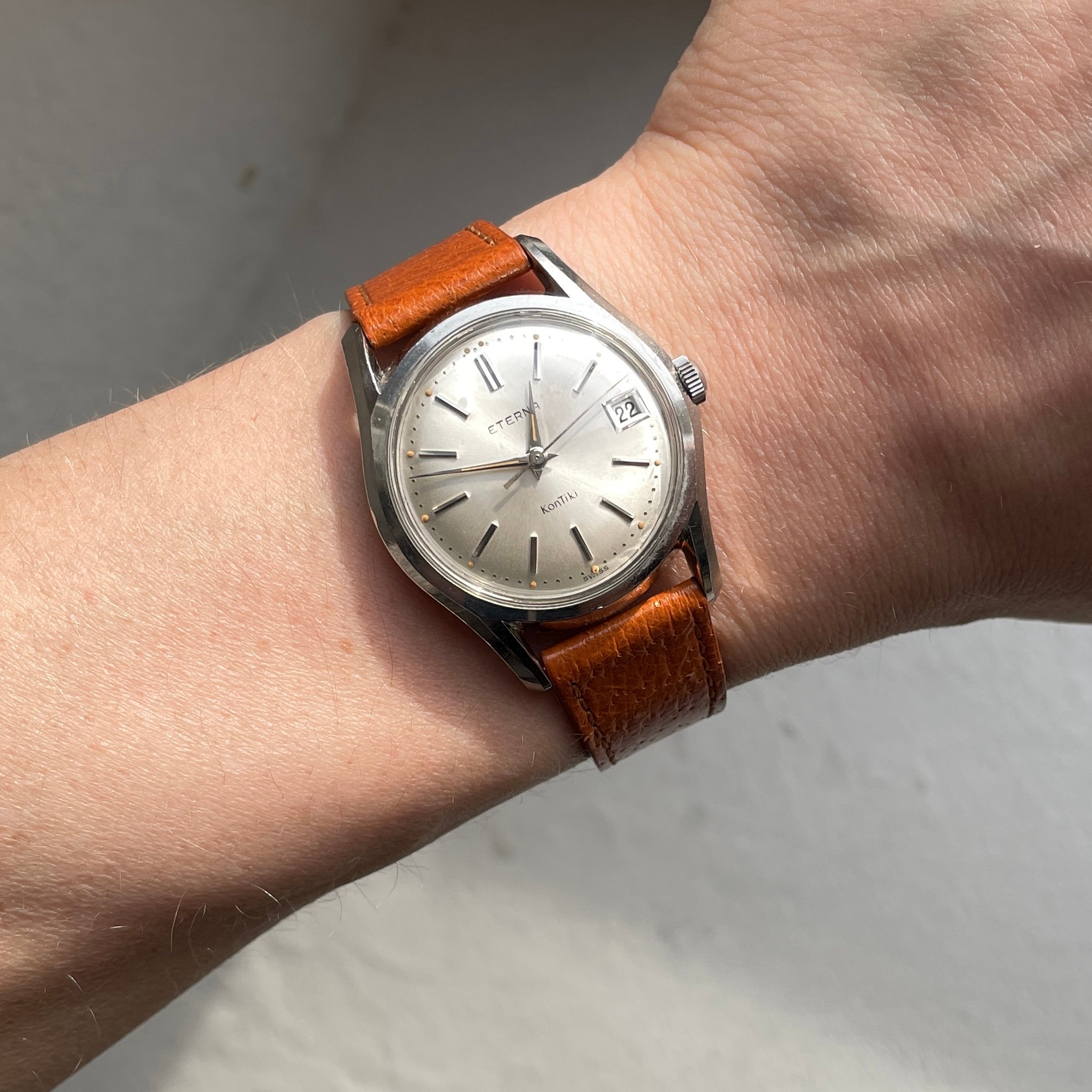路For sale is a very nice Eterna Kontiki from the 60's, this is a very uncommon configuration with manual movement and date. Case is unpolished and as sharp as they are found and the dial is almost flawless.