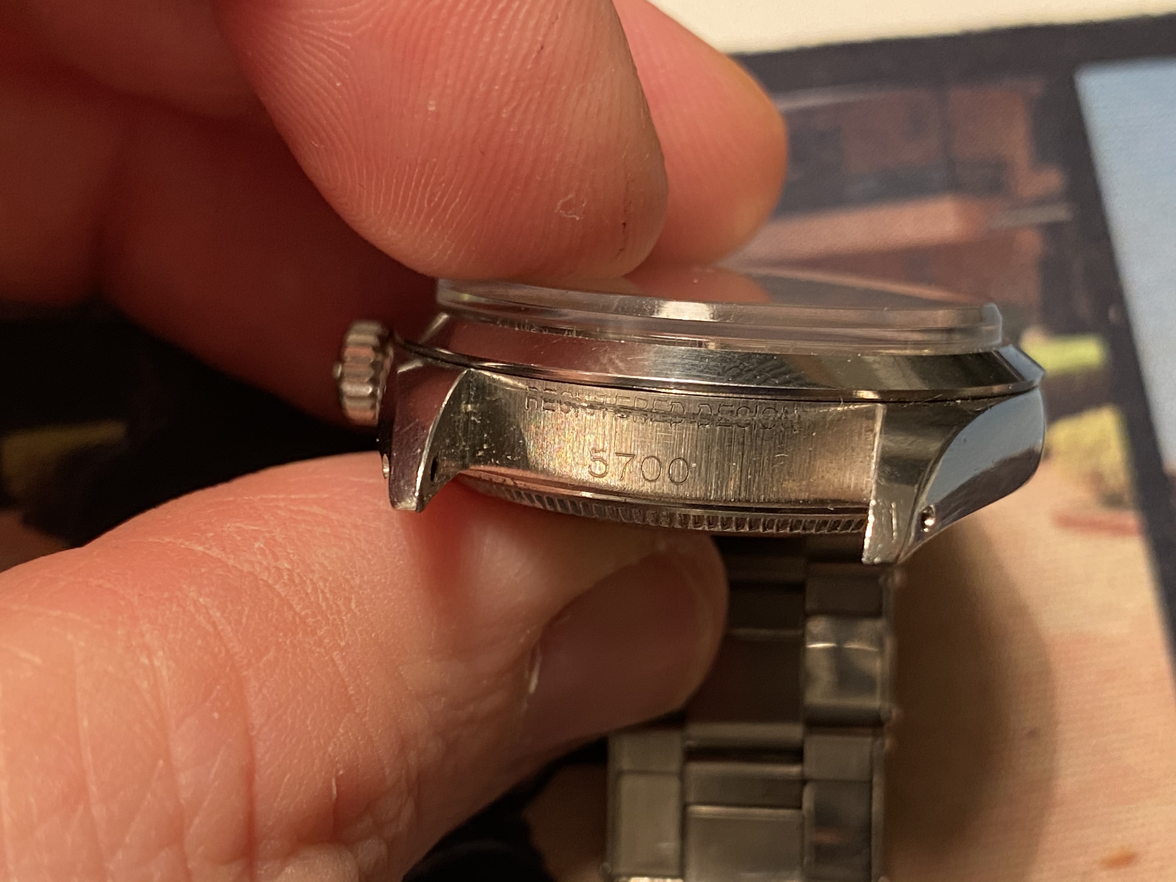 Very nice watch indeed. Absolutely no doubt the engraving is original. See below for an almost NOS 5508 with the same engraving. I don't think the caseback engraving is any worse than lots of 'registered design' engravings between the lugs - the quality of those engravings is highly variable. Rolex just didn't care back in those days - watches were a tool to be used; they had no idea that people would be analysing parts in meticulous detail with macro photography 60 years later. Though I get the feeling some are just arguing for the sake of arguing...