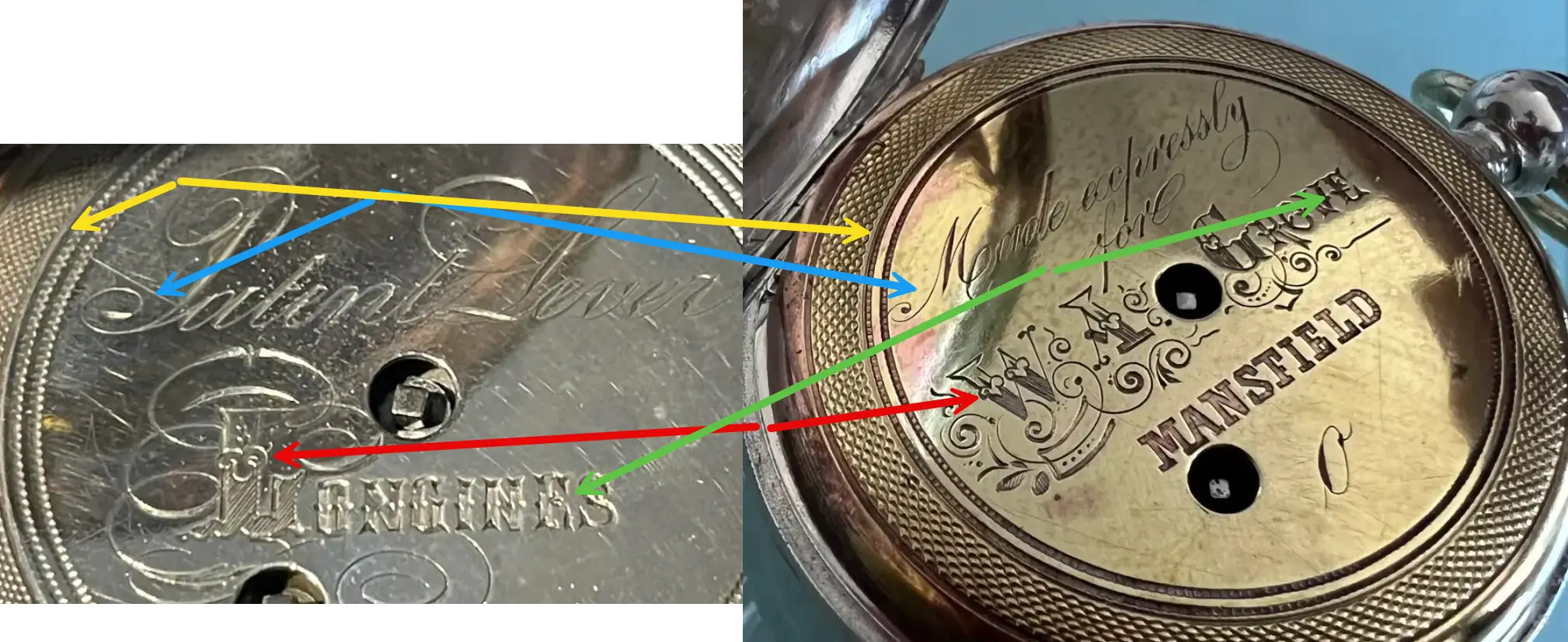 Anyways, the point is that the engraver is the same person again. Note the long "R". The engraver is leaving his/her DNA all over these movements and your watch case. Look at the R in Francillion on the movements and the R in your Grove