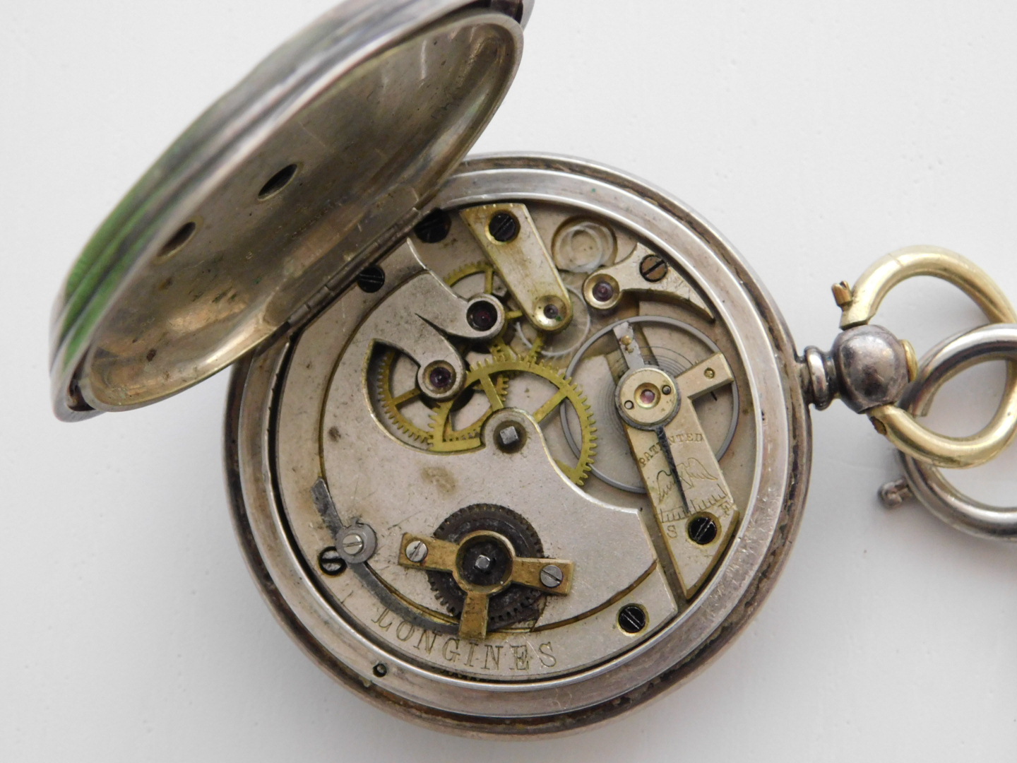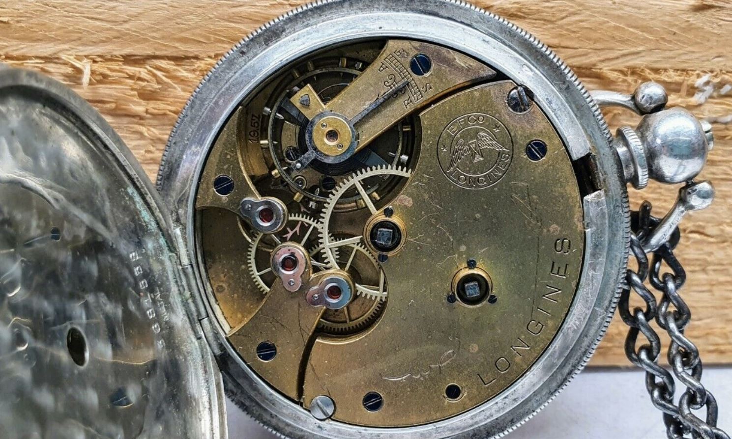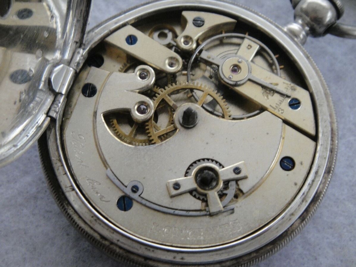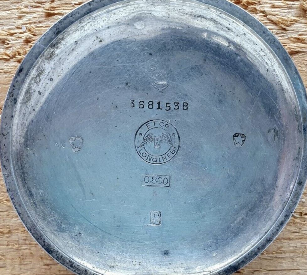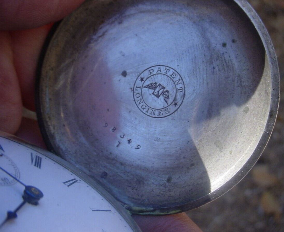 Longines serial numbers began in 1867 (source: Patrick Linder). It was at this time that Longines began to produce its own movements (source: Patrick Linder). Most early pieces have serial numbers that are only visible on the cases rather than the movements. These early cases often had no markings that mention Longines. Up until the Swiss introduced standard hallmarks for precious metals in 1880, silver cases (at least) often had no hallmarks either (source: http://www.swisshallmarks.com/). In the same year, Longines set up a workshop to make their own silver cases (source: http://www.watkinsr.id.au/Francillon.pdf).