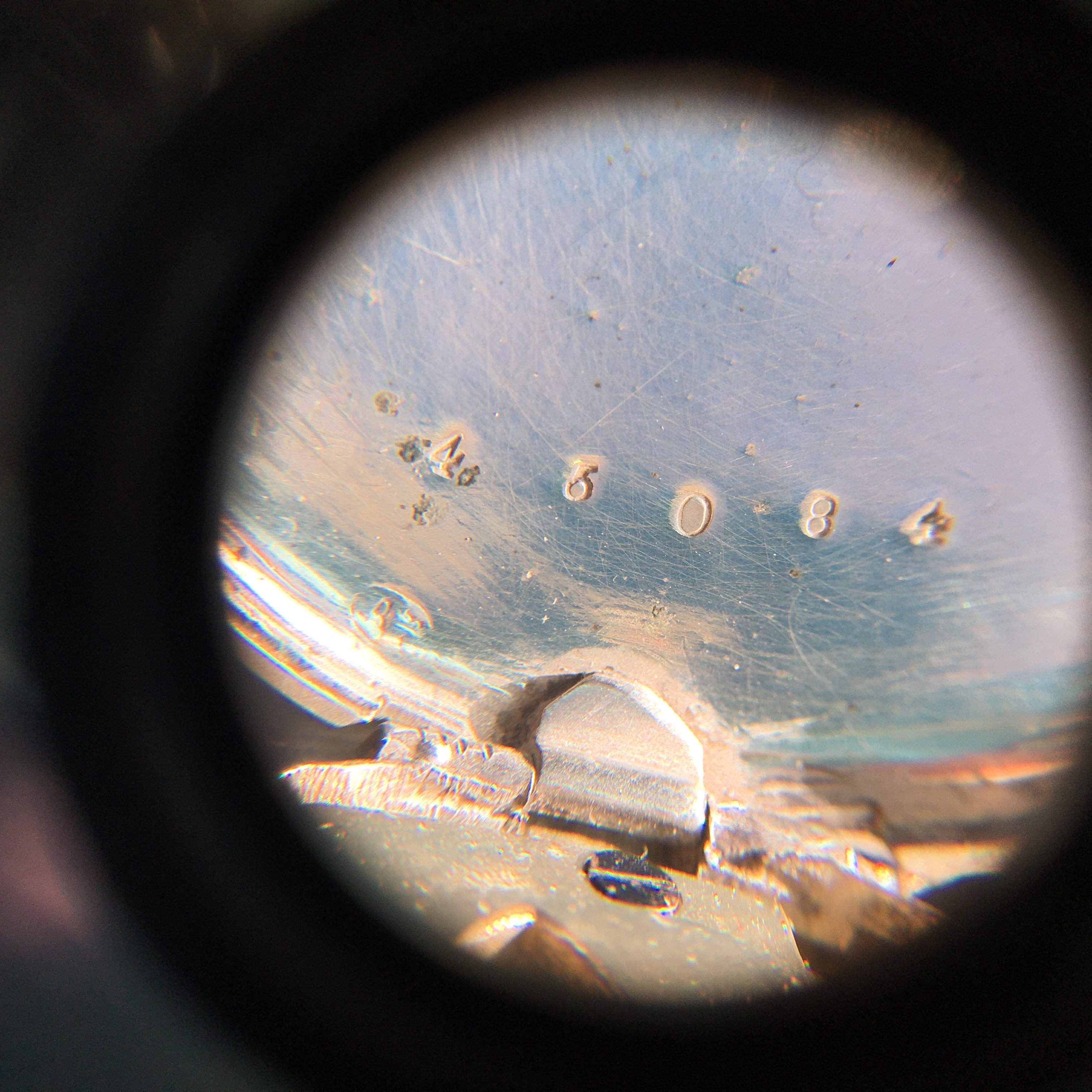 Another mystery about my watch is who made the case. There is a small "AT" marking on the inner case-back (seen below) that can also be found on serial 98'349 above. Neither I nor Longines' Heritage Department have been able to attribute this marking to a maker. If anyone has any information, I would be most grateful.