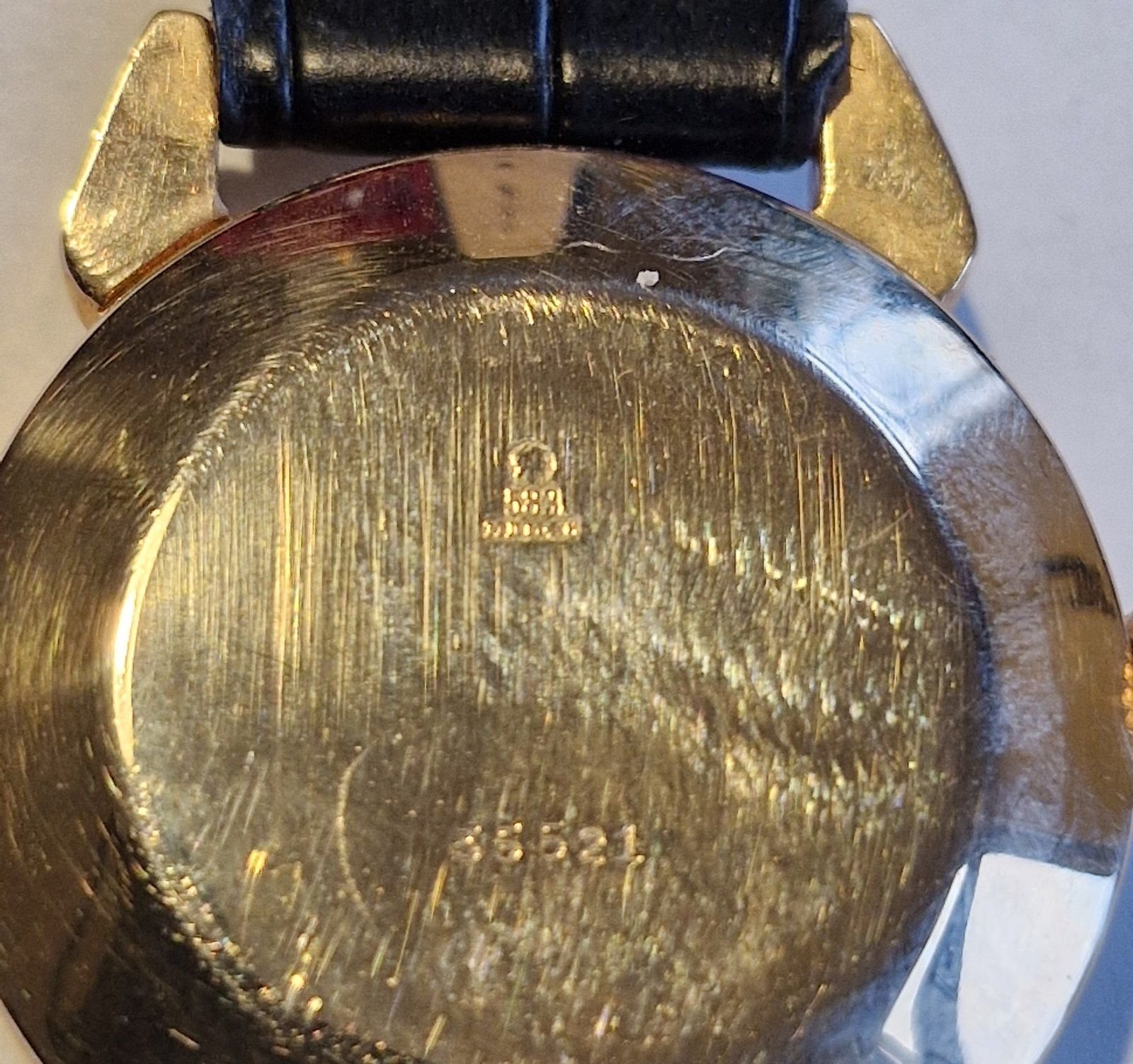 The dial and hands (gold?) are beautifully preserved. The crown is likely original and does not appear to be merely gold-plated. The bracelet with clasp is not original, but modern. For changing you will need a braclett for fixed lugs,