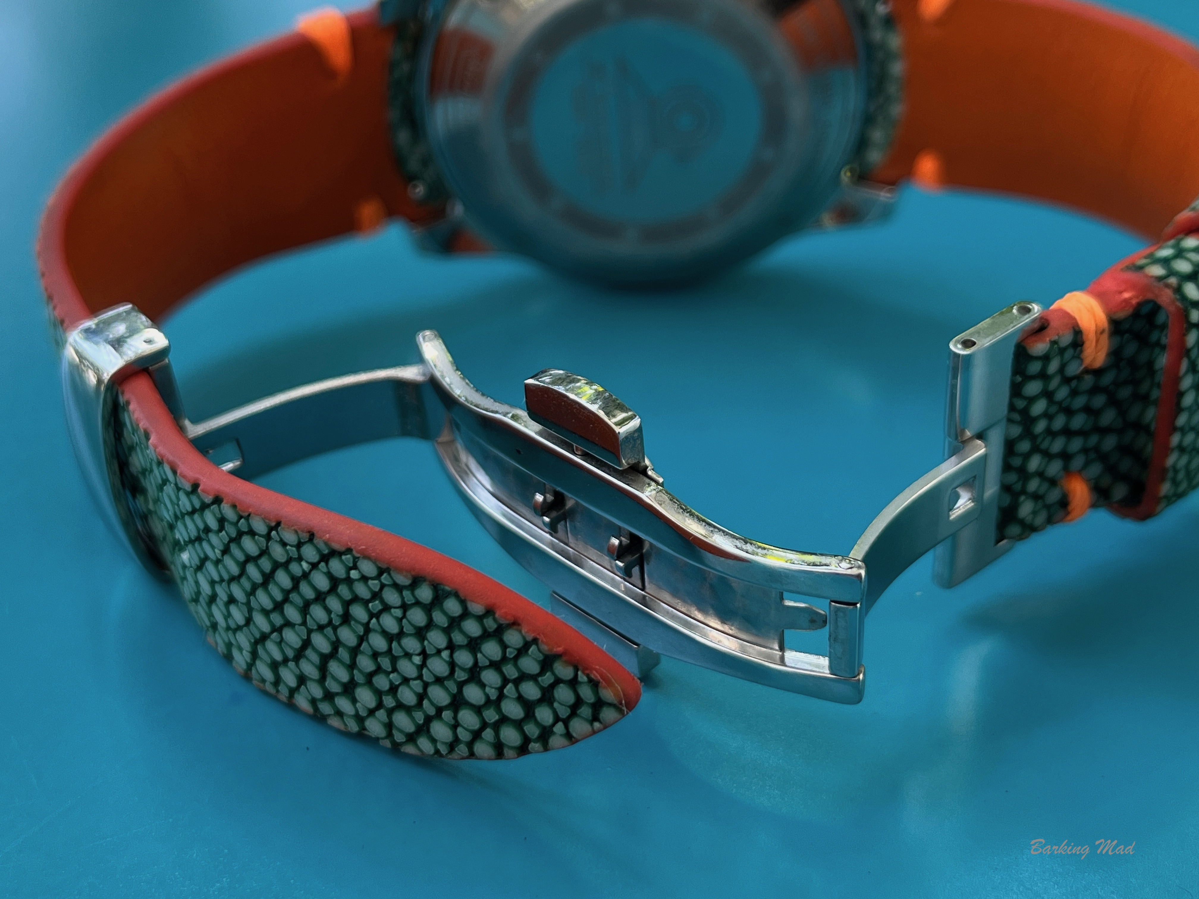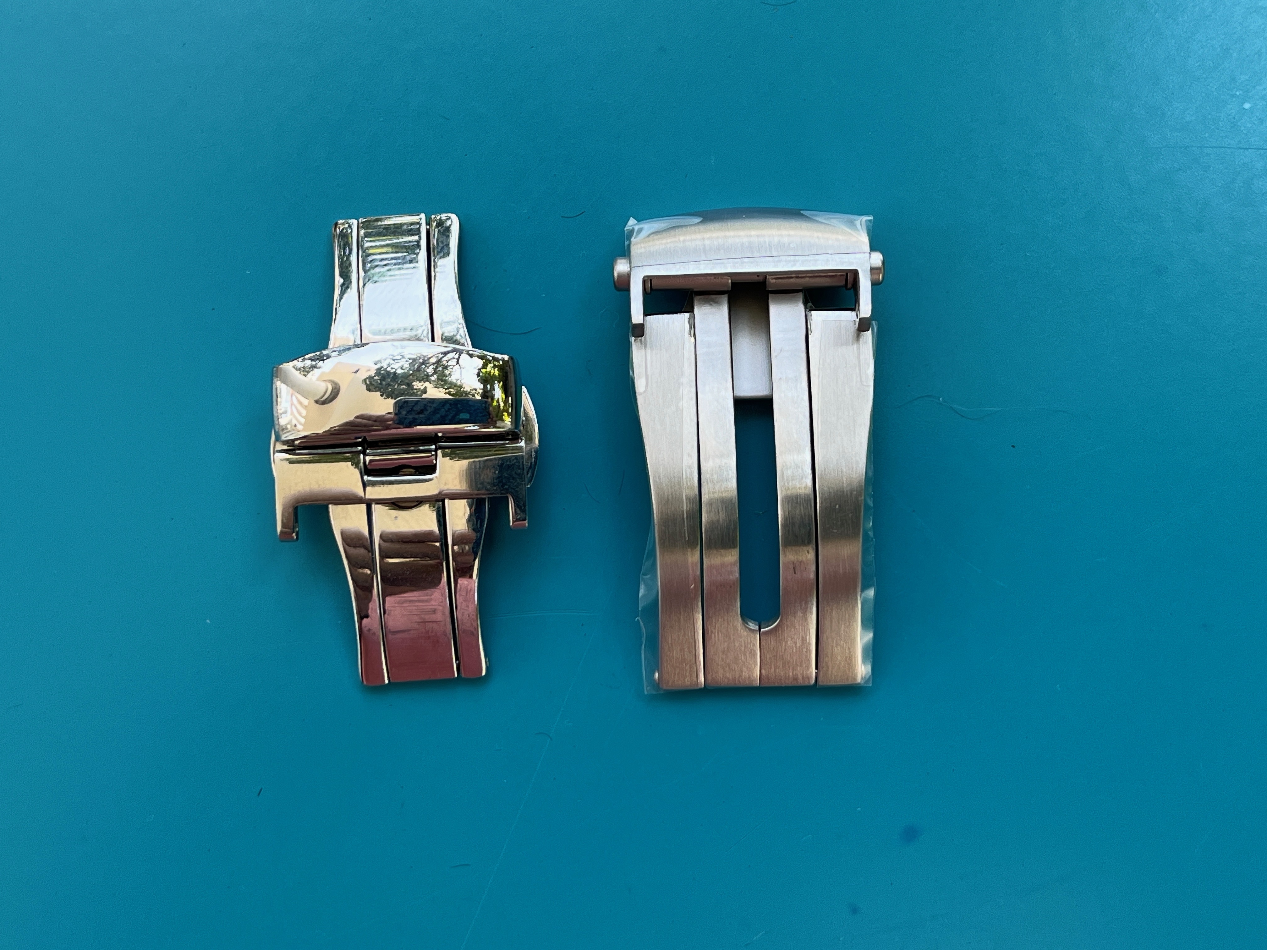 I fitted a custom strap that I had made but have never been overly happy with the deployant clasp for a couple of reasons, one it was polished when the original and the watch are brushed and two the release action requiring the pressing of buttons unlike the factory friction fit.