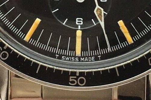 We can also see above the 50 on the bezel, which is one of the tells for differentiating this service bezel from an original 60s version.