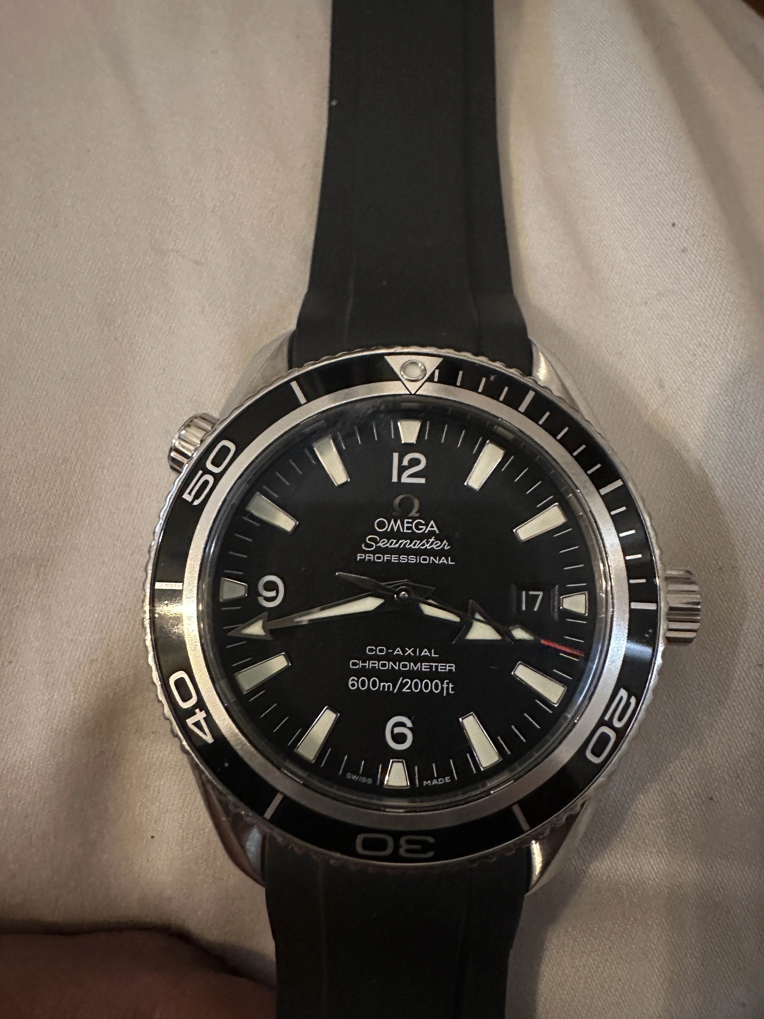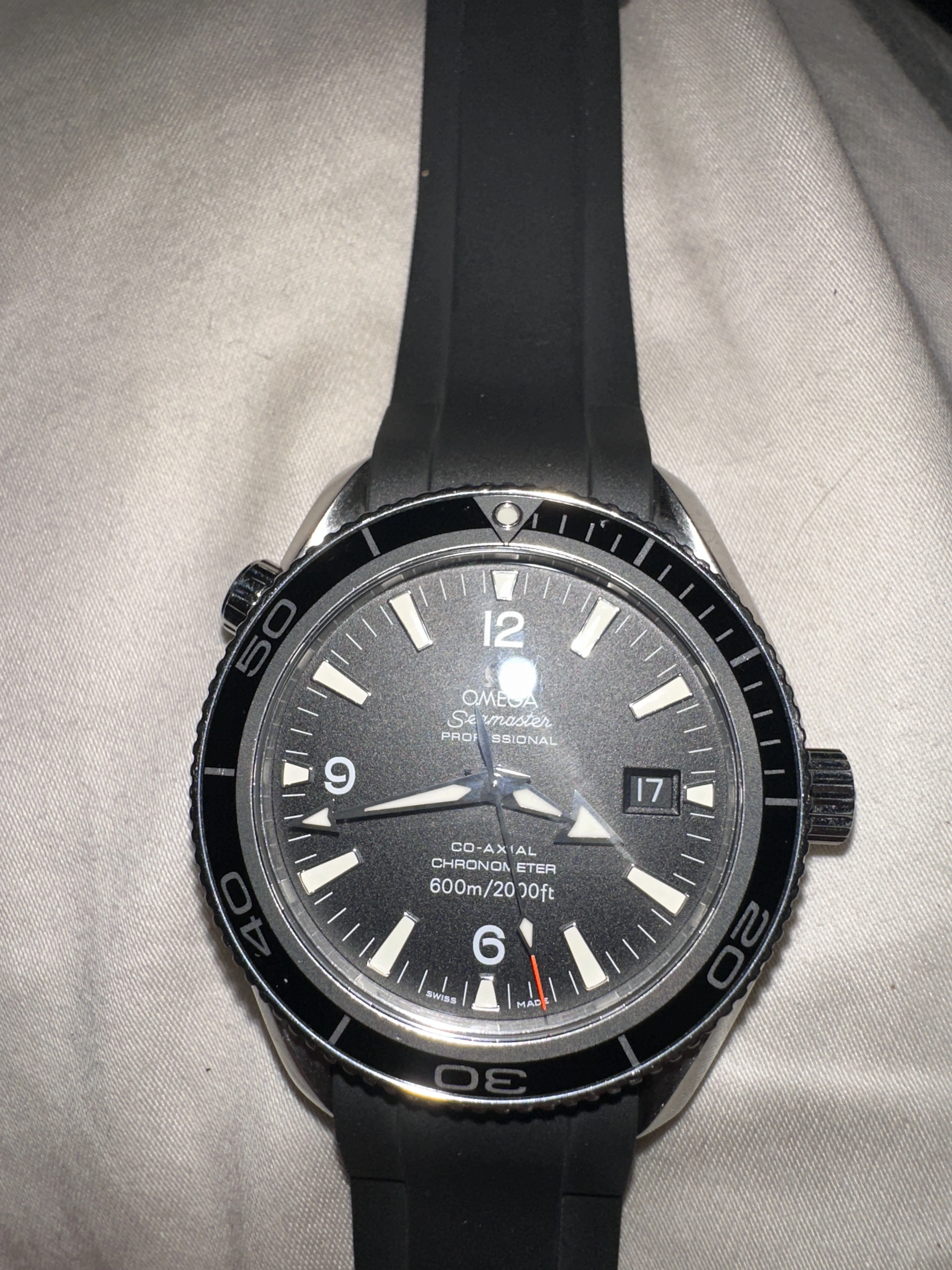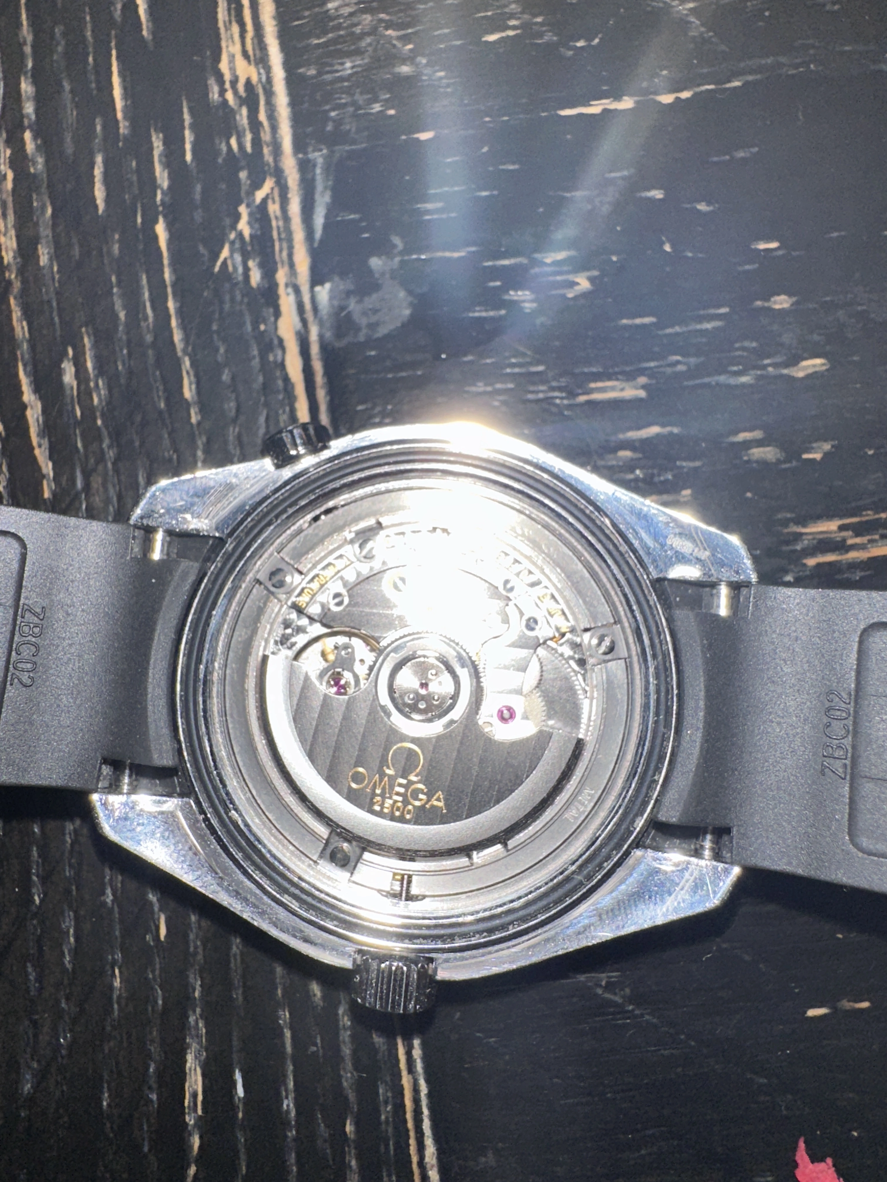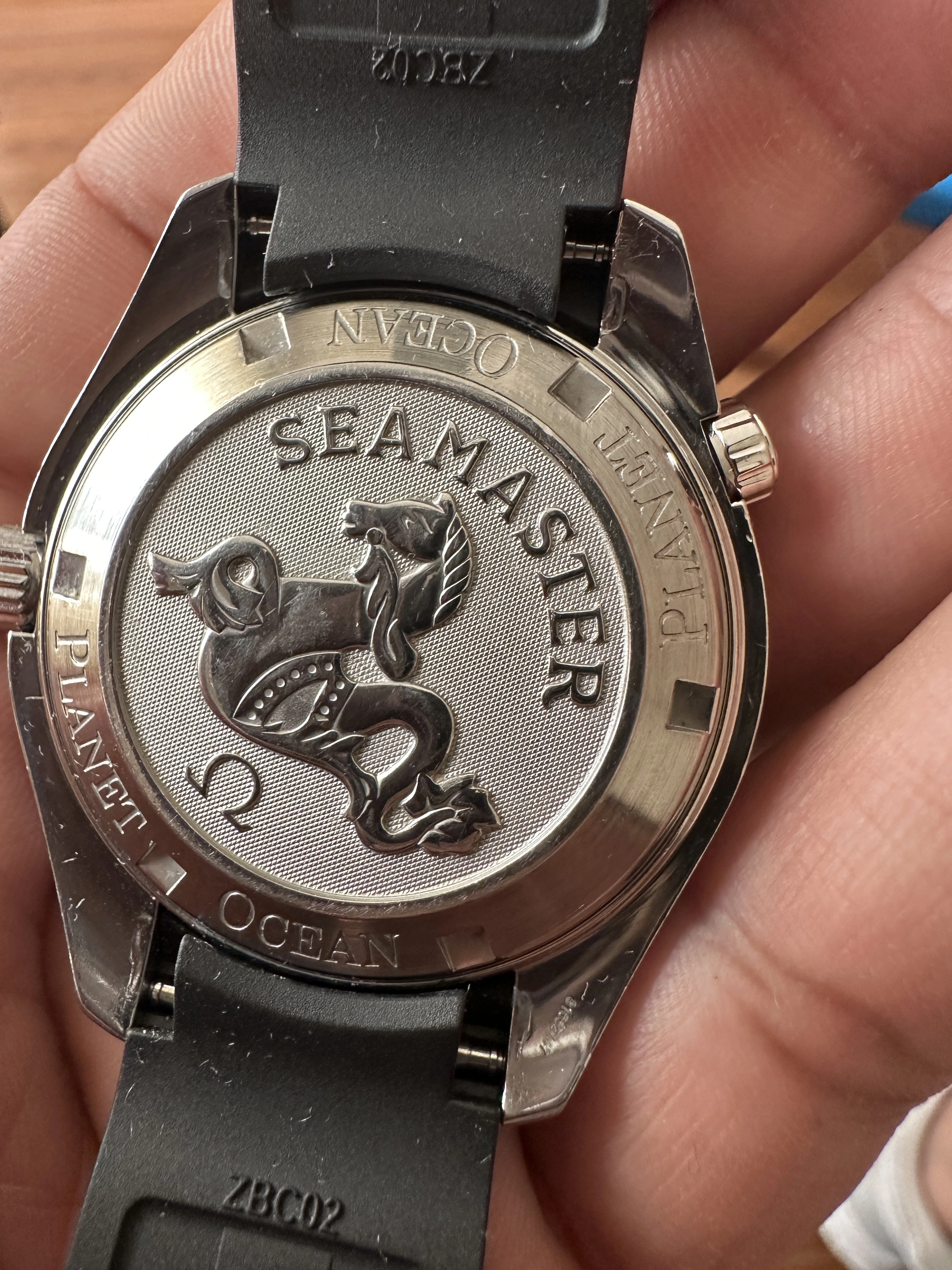 ·Hey all, recently received a Planet Ocean from a reputable eBay seller in the United States and it passed authentication. However, I noticed some flaws with the piece. I’ve owned a 2201.50 in the past and knew the caseback was inscribed with planet ocean on the under arch, seahorse in the middle with the omega logo and the laser engraved Omega globe. This particular watch ( ref 2901.50) has Planet Ocean inscribed twice on the caseback. Also, the crown appear misaligned on the Omega logo. I’m not sure if the age of the watch and tarnish is messing with my eyes but the crown logo looks funny to me. The movement, dial, hands, and bezel all look right. I’m not sure if the 2901.50 was a newer version than the 2901.50 and Omega changed it all later on. My understanding was both references were the same but one had a bracelet and one did not. The seller is denying it’s counterfeit and offered a refund but I’m curious if im overreacting or if there’s something to this. Thanks in advance. Serial number on the watch is 81062147. I’m including photos taken at various angles. I’m wondering mainly 1. Was this caseback design ever used even for a short time 2. Does the tarnish around the crown logo create an optical illusion or does the logo deform over time. - thanks, Ryan.