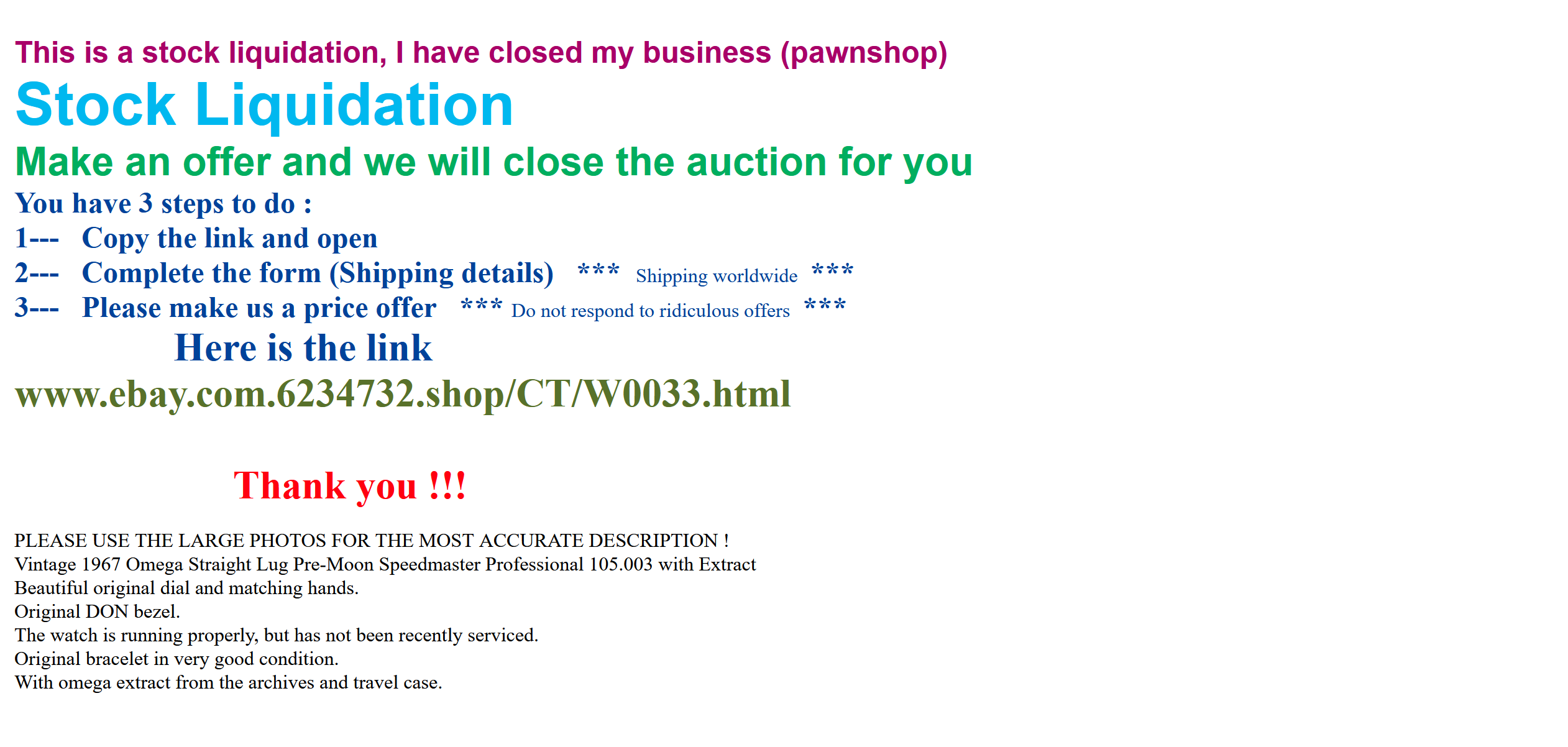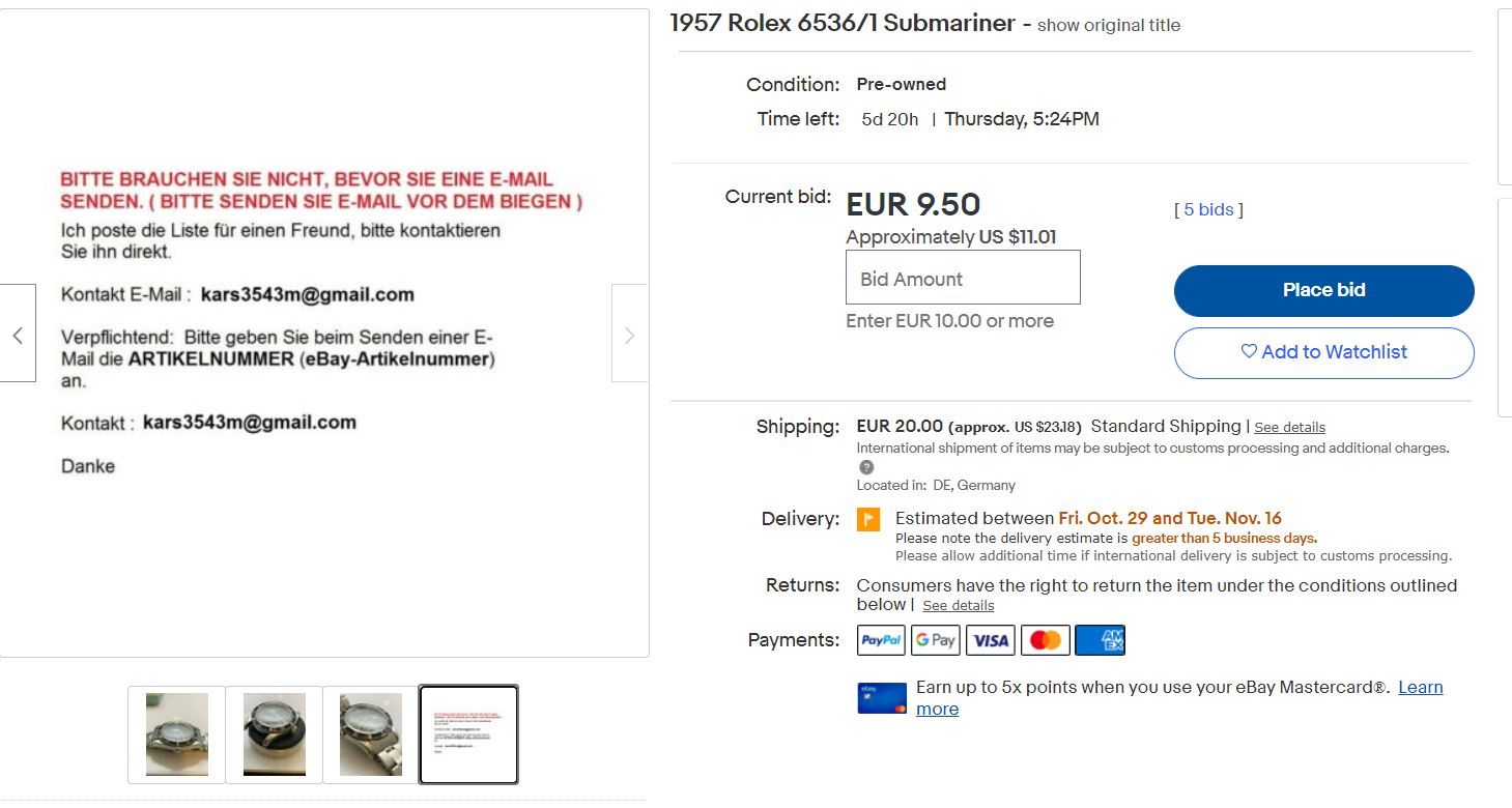 Getting a bit smelly, lets look at the description. Hold on, he doesnt want me to bid? He wants me to email him direct? Look here:
