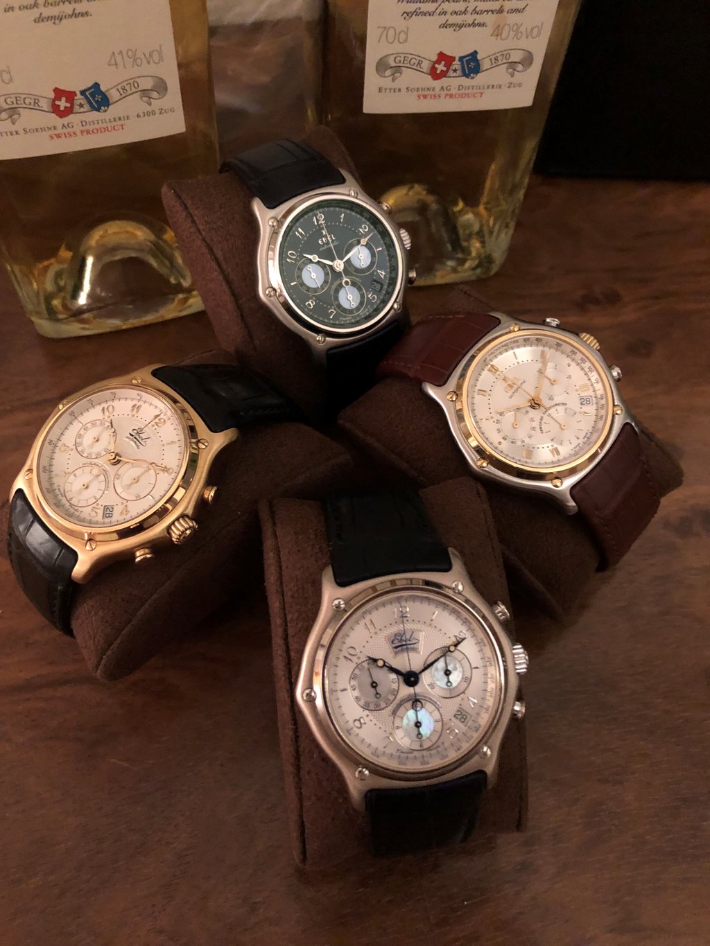 I think Don Johnson wore one of the predecessors, which was called 'Le Modulor', and as you say had the famous El Primero movement. These watches above are the successors which featured a (Lemania 1340 based) Calibre 137 Ebel Movement. This movement was also used (and I believe still is) in Ulysse Nardin watches. Rumor has it that if you send such Ebel models for revision, it goes to Ulysse Nardin workshops.