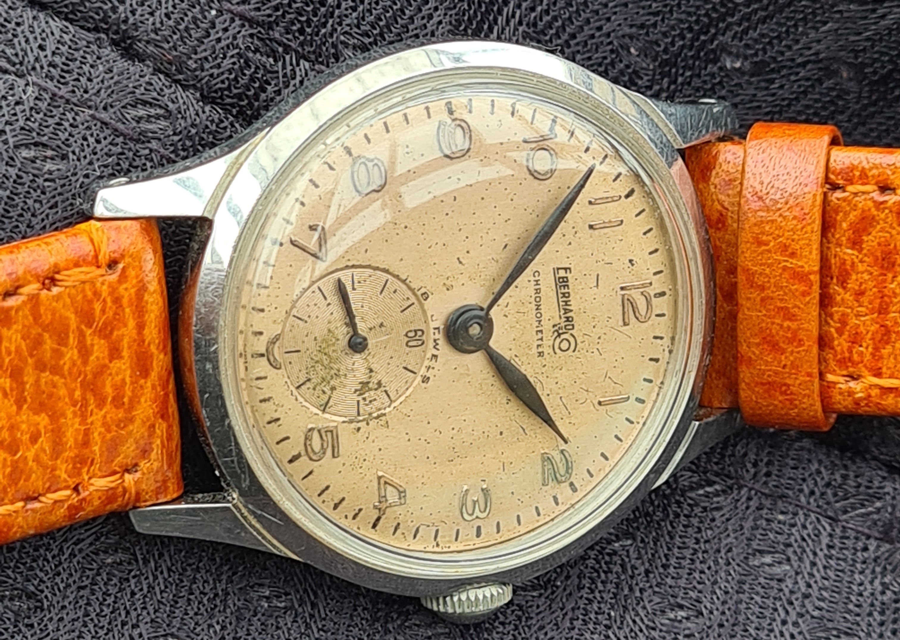 Eberhard is best known to collectors for the chronographs. Chronometers such as the one you have shown, are uncommon. I would guess that it is from the late '40s or early '50s.