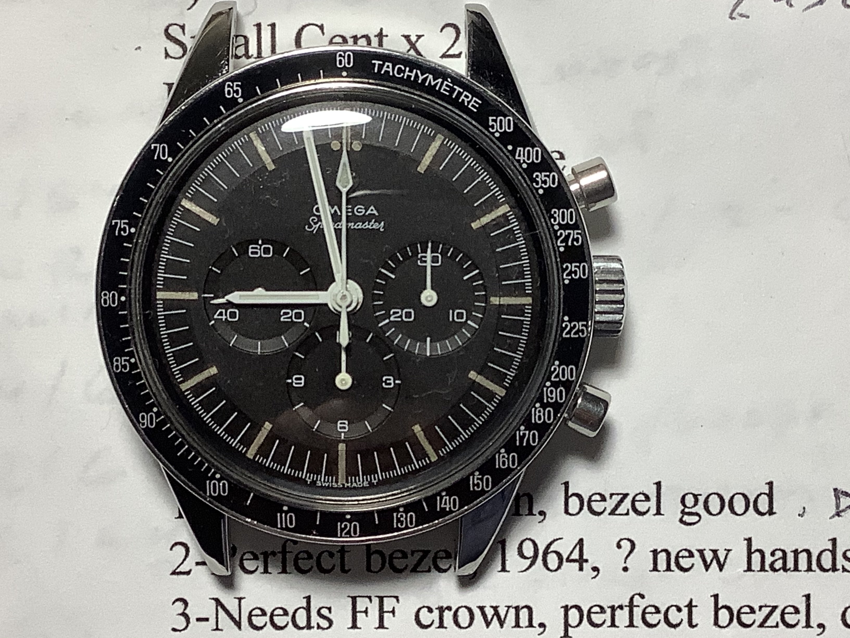 To wit: the Ed White Speedmaster below has a lot going for it: nice A1 crown, the dial and hands are very clean, the bezel so-so, and the lugs unfortunately have the typical Rolex satin finish that was applied to the tops, that was never originally on the watch: