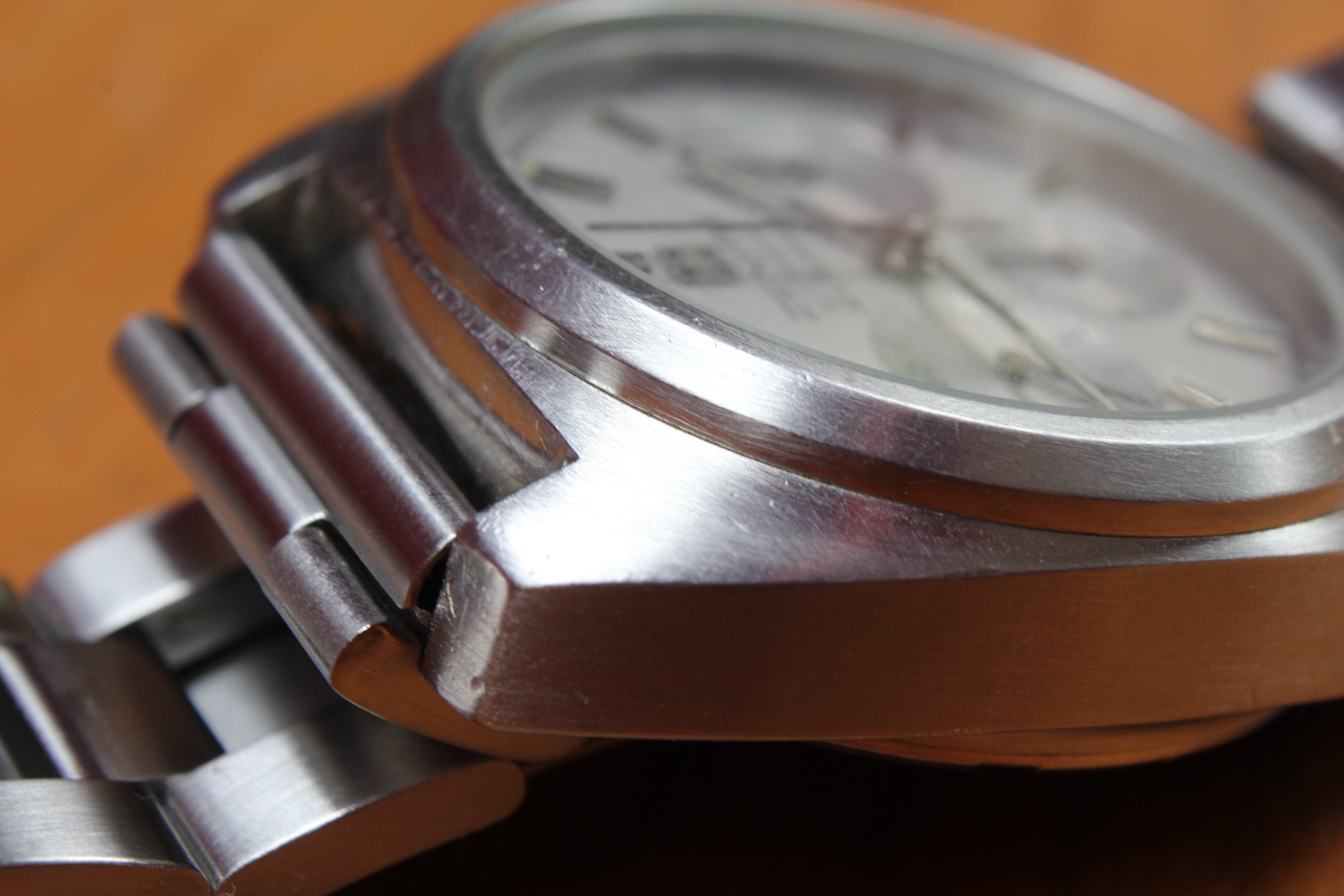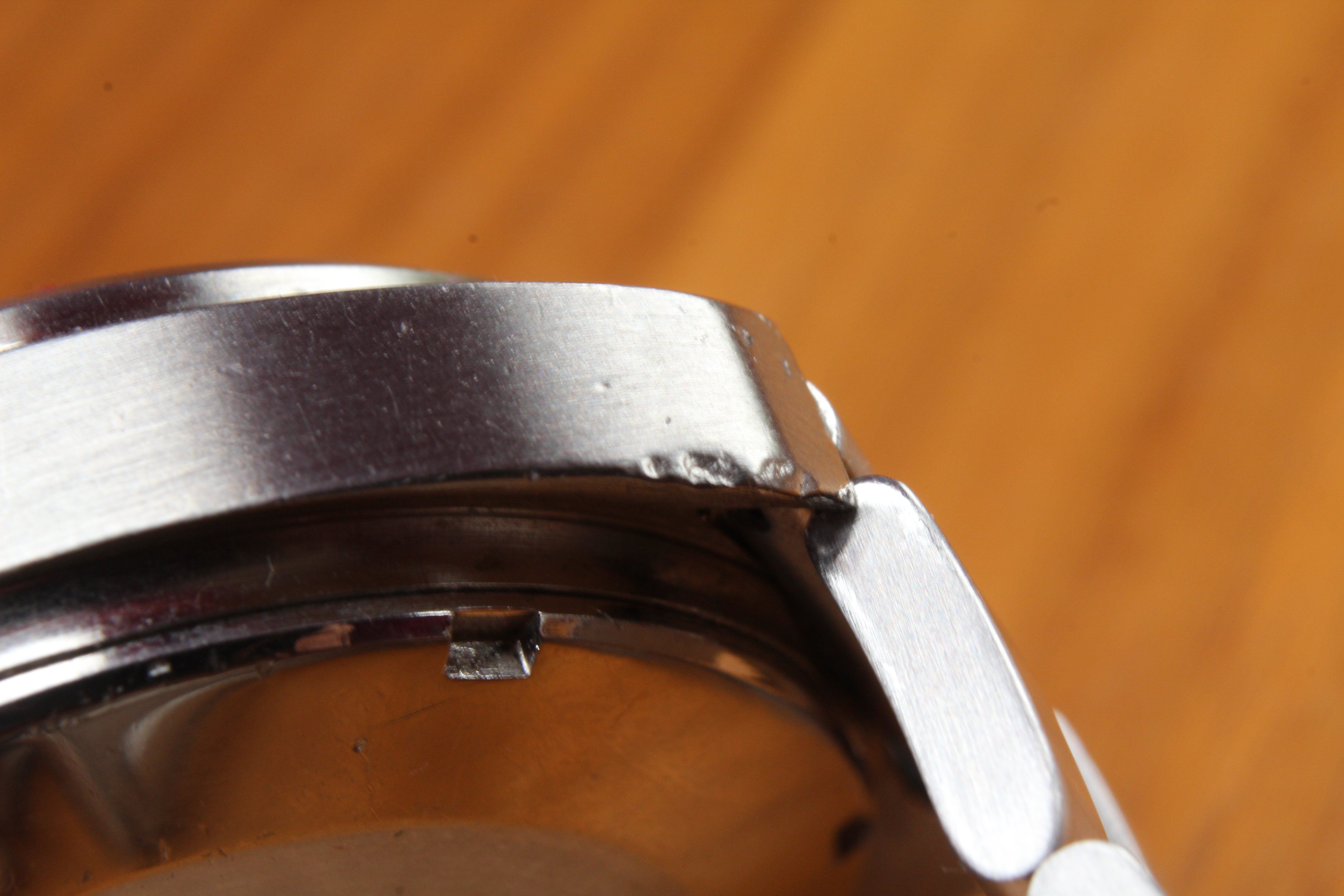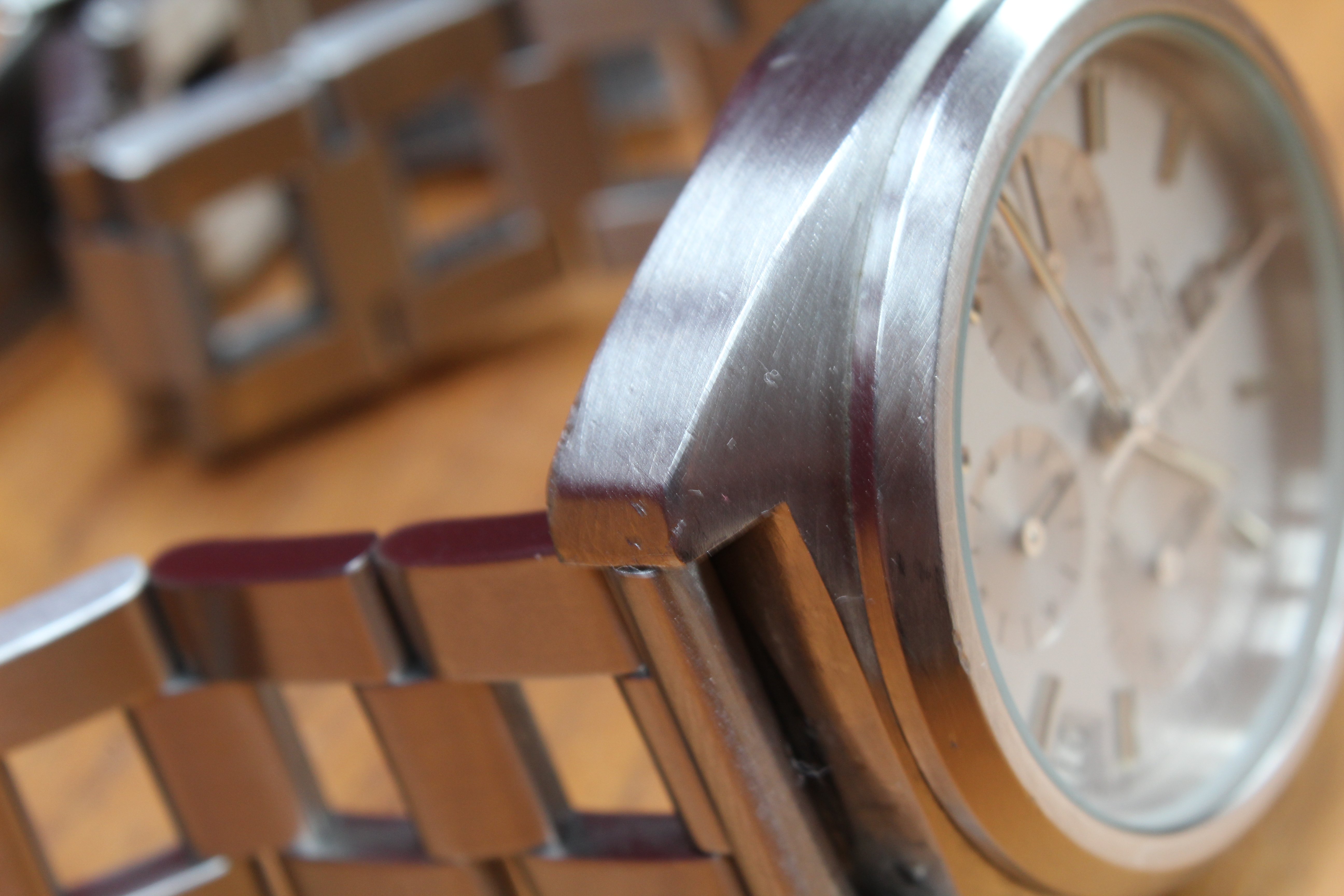 My guess would be that only the upper surface of the case should have brushed finish and that the bezel and case sides should be polished