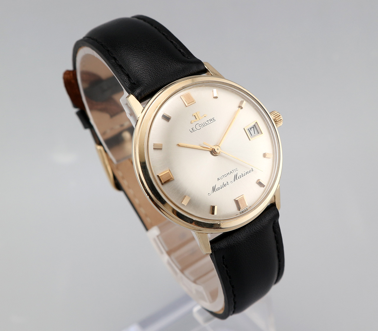 ·Here is a fabulous, all original LeCoultre Master Mariner from 1966. The silver sunburst dial is in excellent condition, with a golden LeCoultre logo and barely any marks. It has chunky golden block hour markers with square slates at the poles. The golden baton hands are in very fine condition.