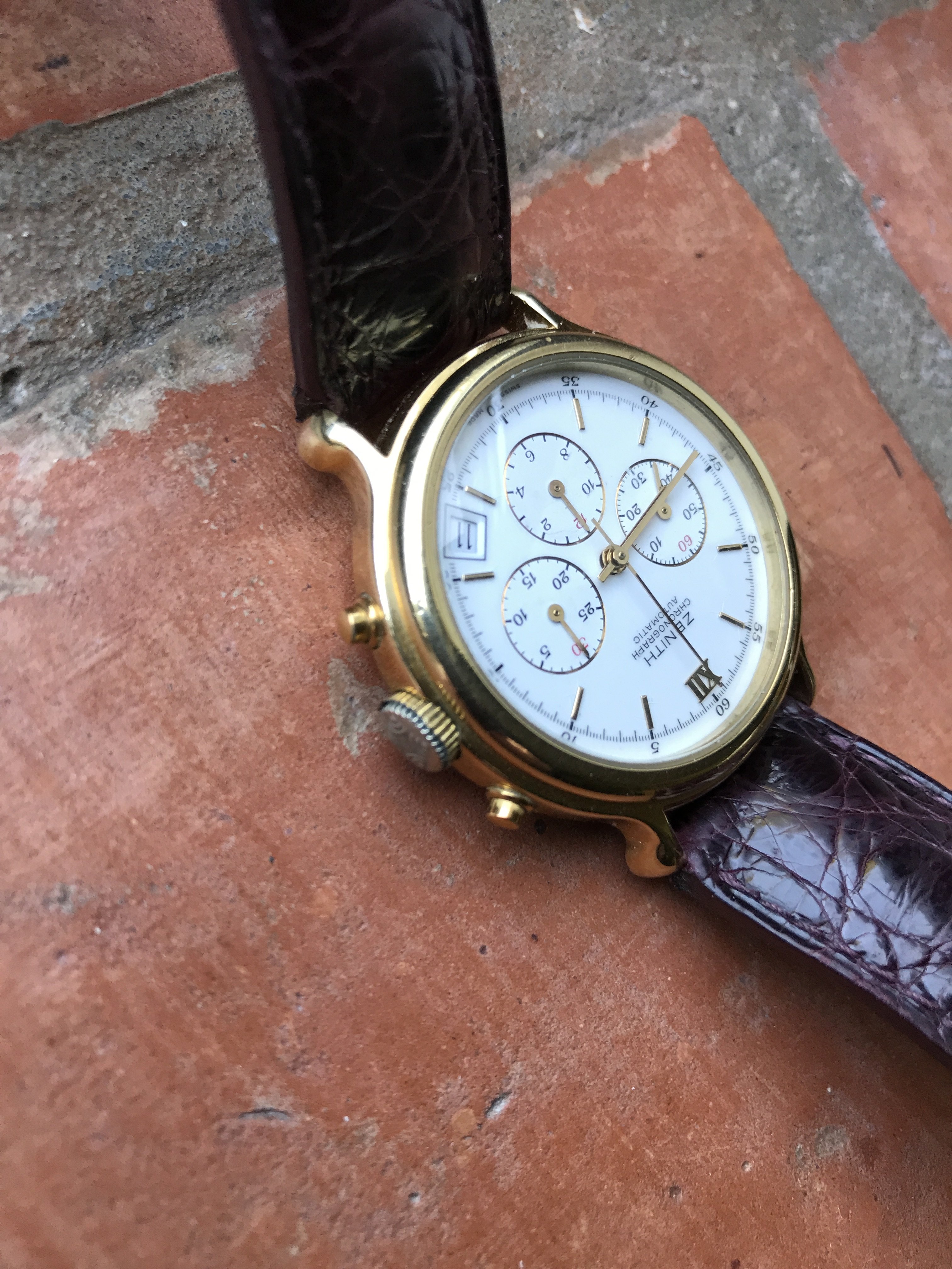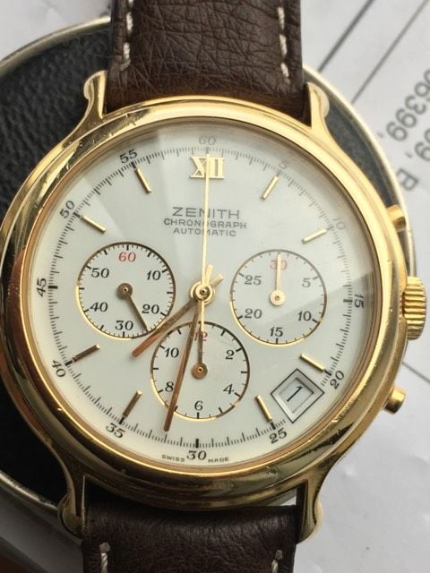 I have this chronograph Zenith vintage El Primero 40.0, ref. 20.0020.400 from 1985. The condition of the watch is good, but the crown (gold capped) is missing the front cap.