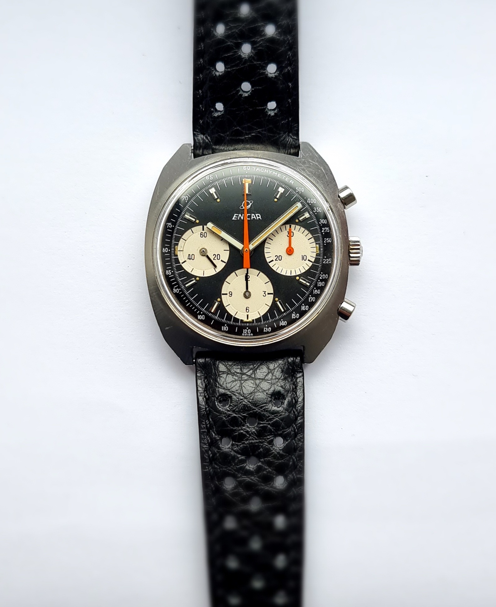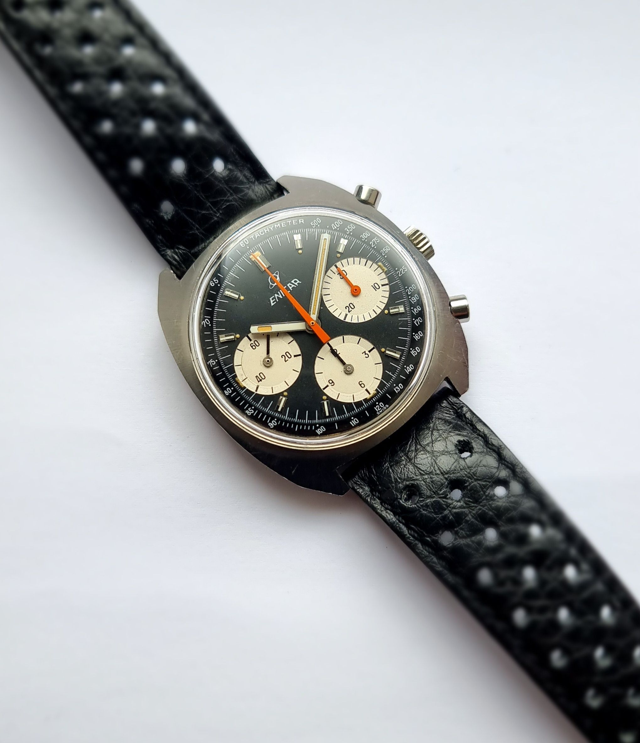 ·A superb example of the rare reference Enicar 072-01, also know as the 'Mitter'. Named after Czech F1 driver Gerhard Mitter who wore this reference in the 1960s.