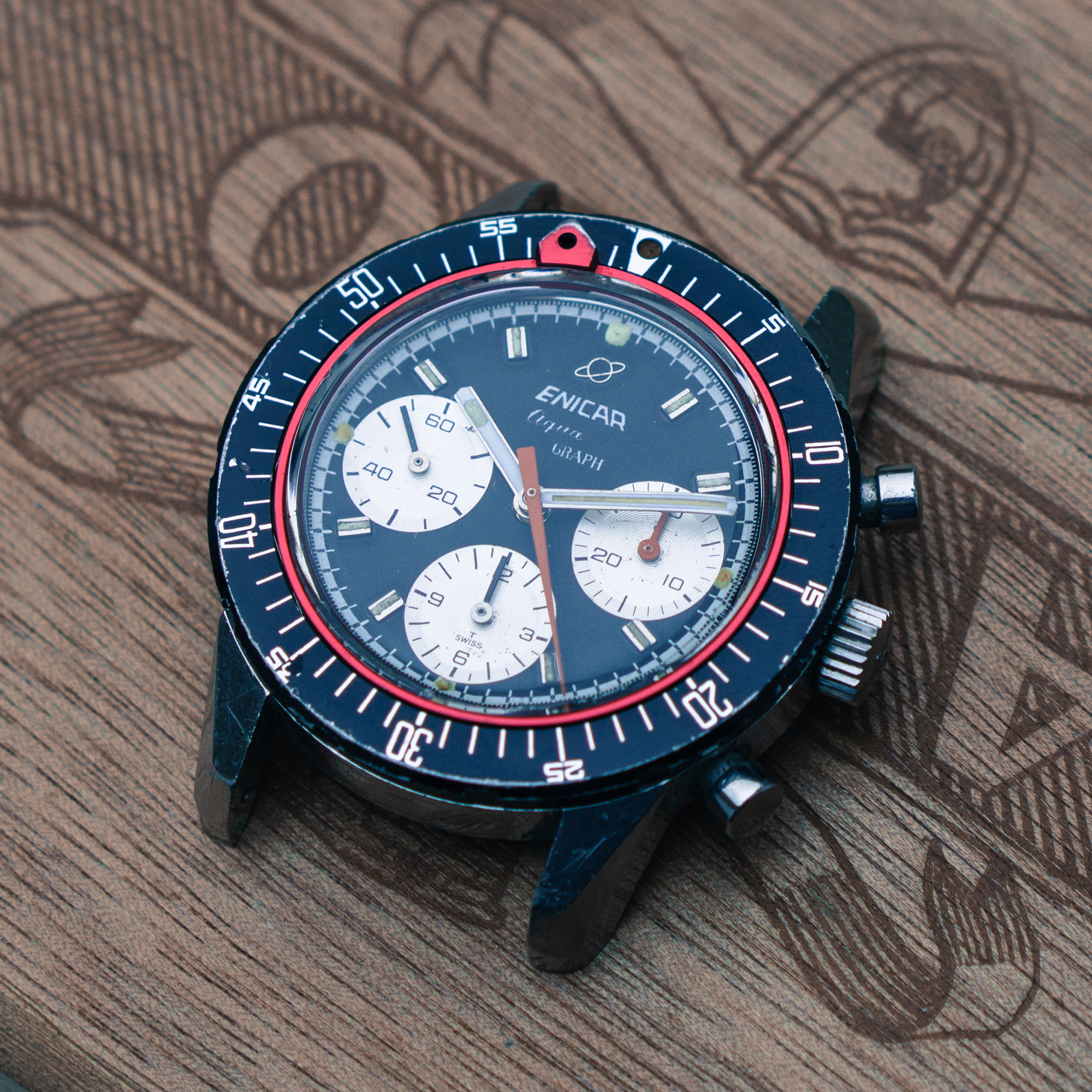 from my collection I am selling this nice Aqua Graph from 1969. The Aqua Graph is the diving version of the famous Graph chronograph line of Enicar in the 60s. Established in 1963, this is a later MK IV model. I am selling to fund another Graph chrono 😁