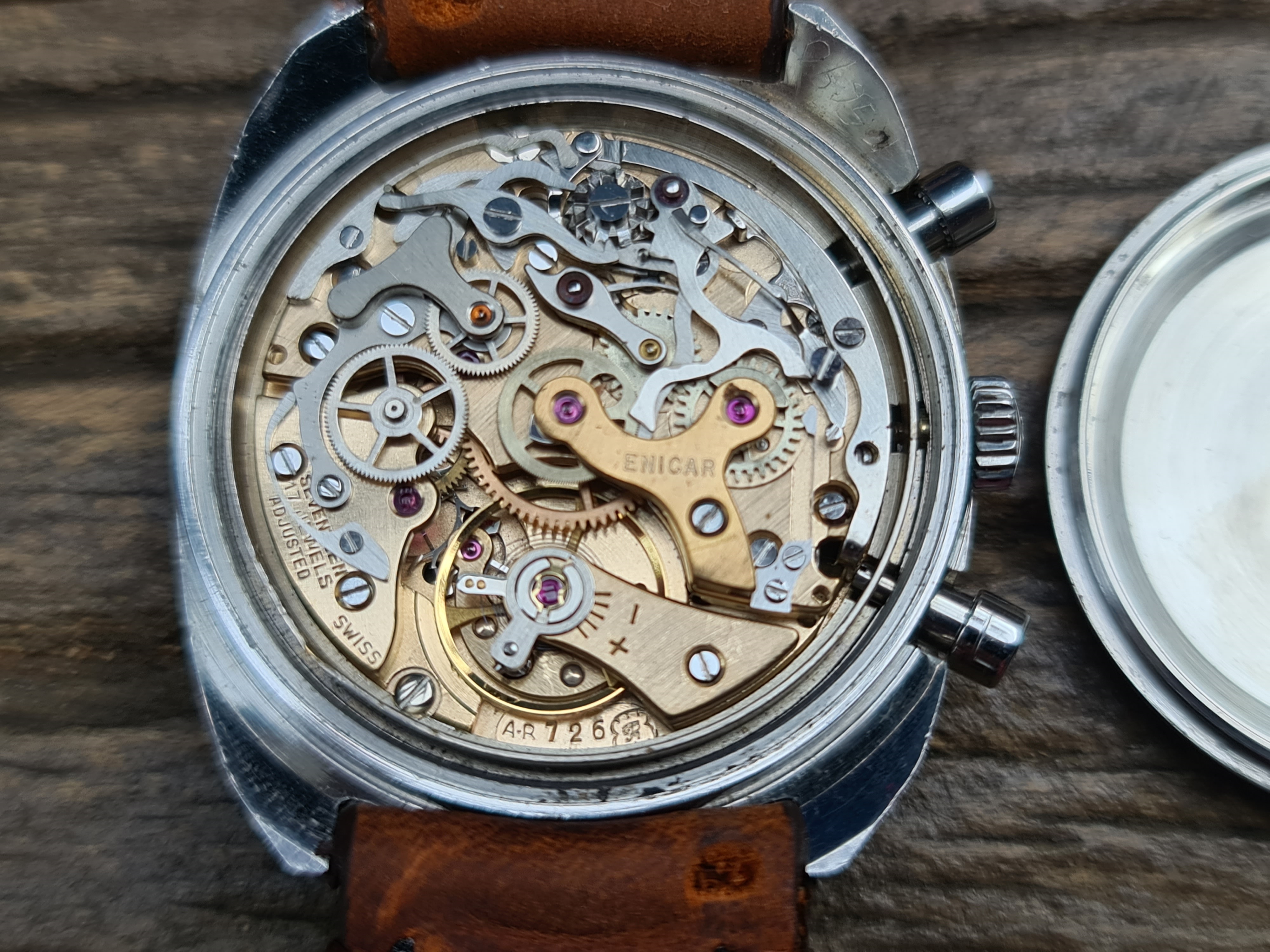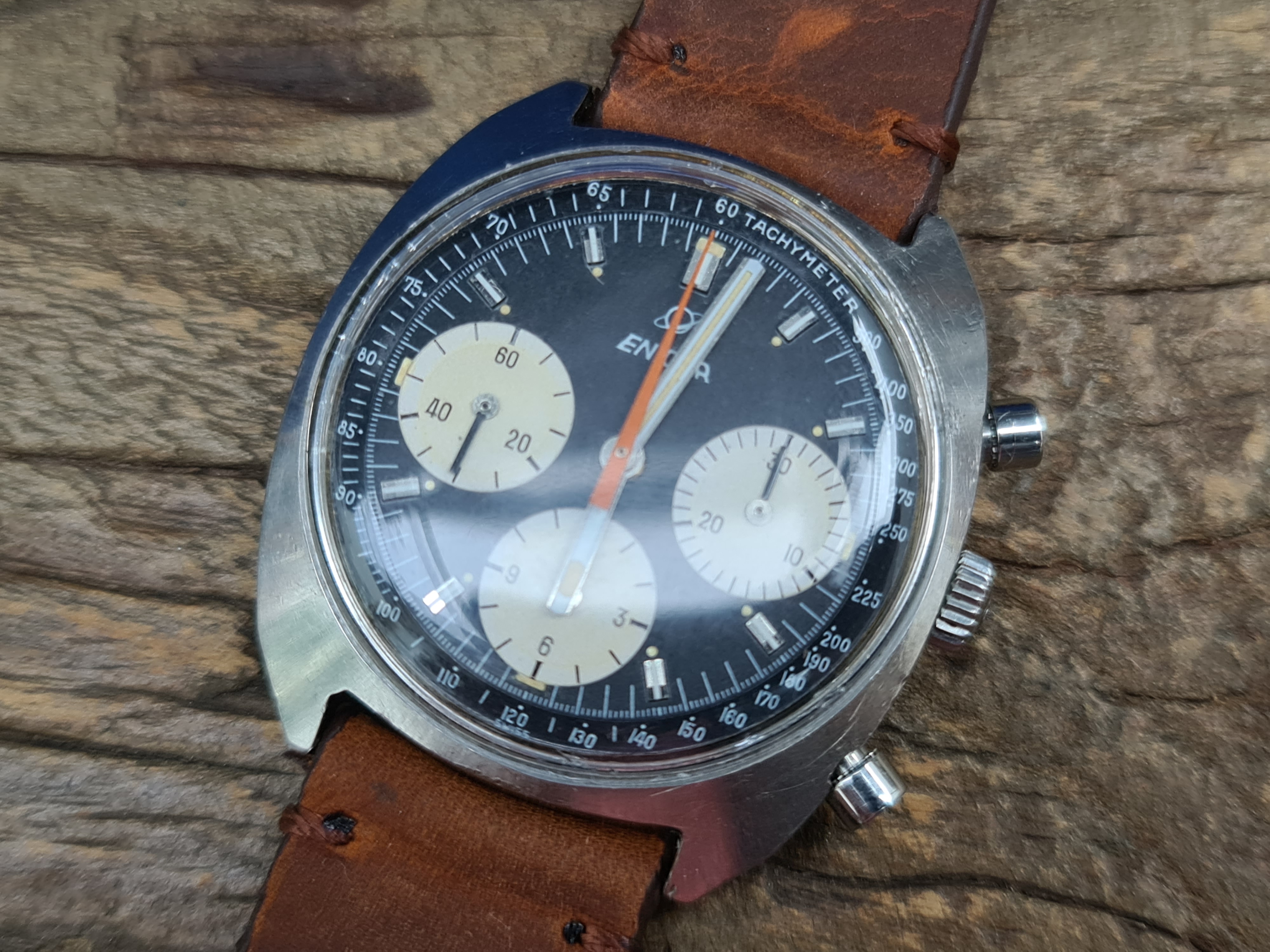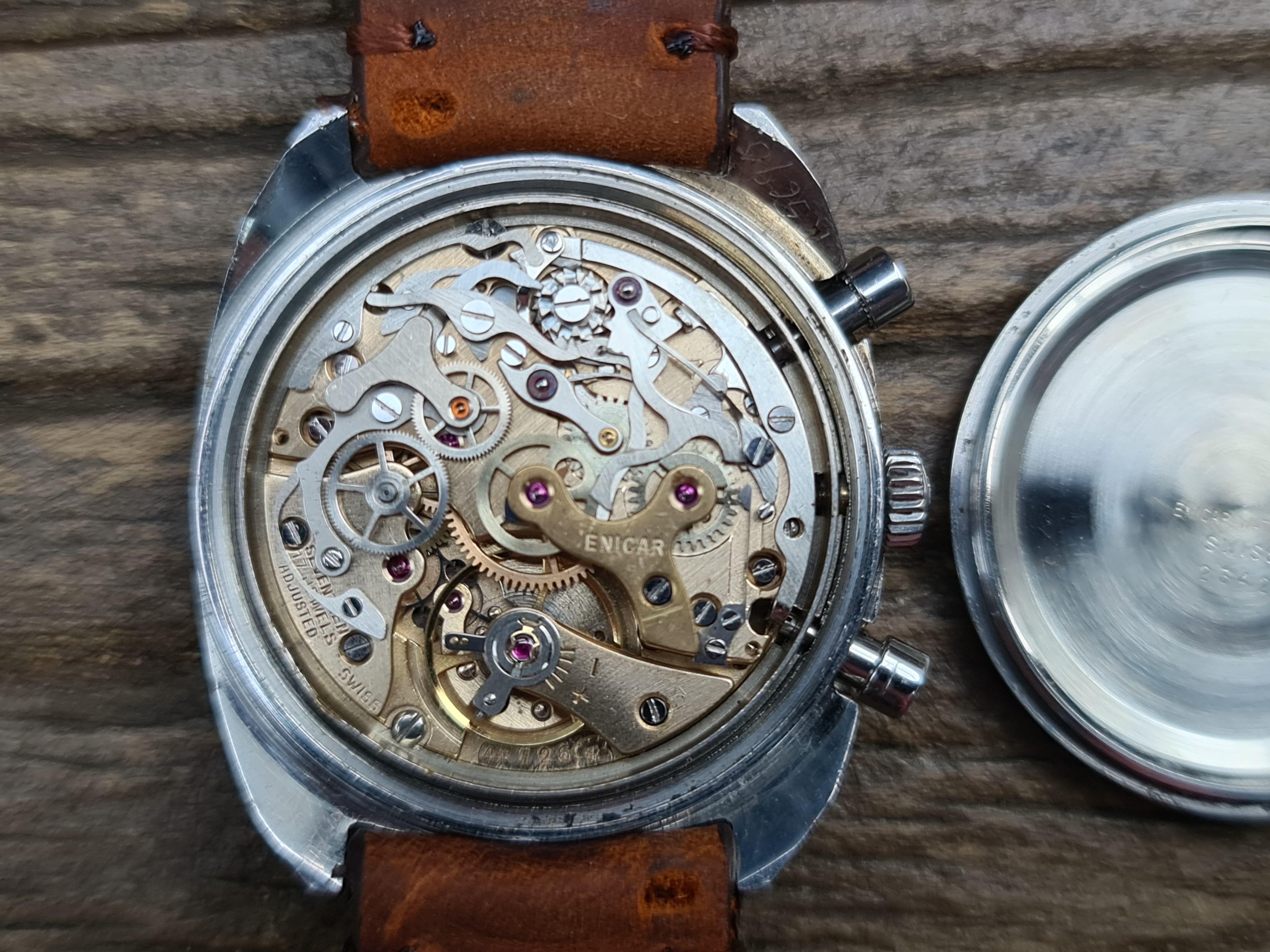 ·Up for sale is a lovely Enicar Valjoux 72 Chronograph nicknamed the 'Gerhard Mitter' or 'Mitter' for short. These were worn by the Formula driver Gerhard Mitter during races. Movement is actually the upgraded and higher beat Valjoux 72 movement being the 726.
