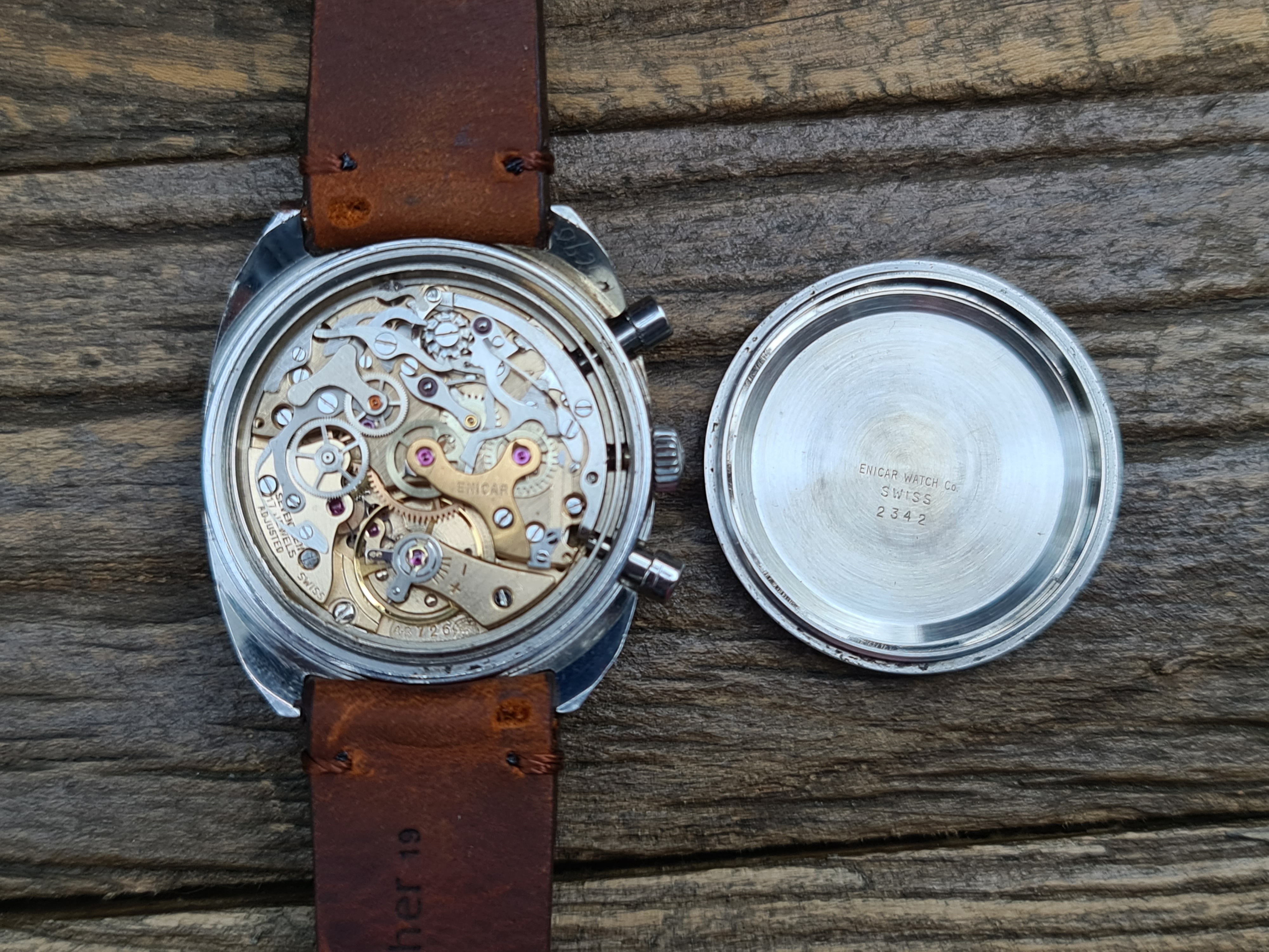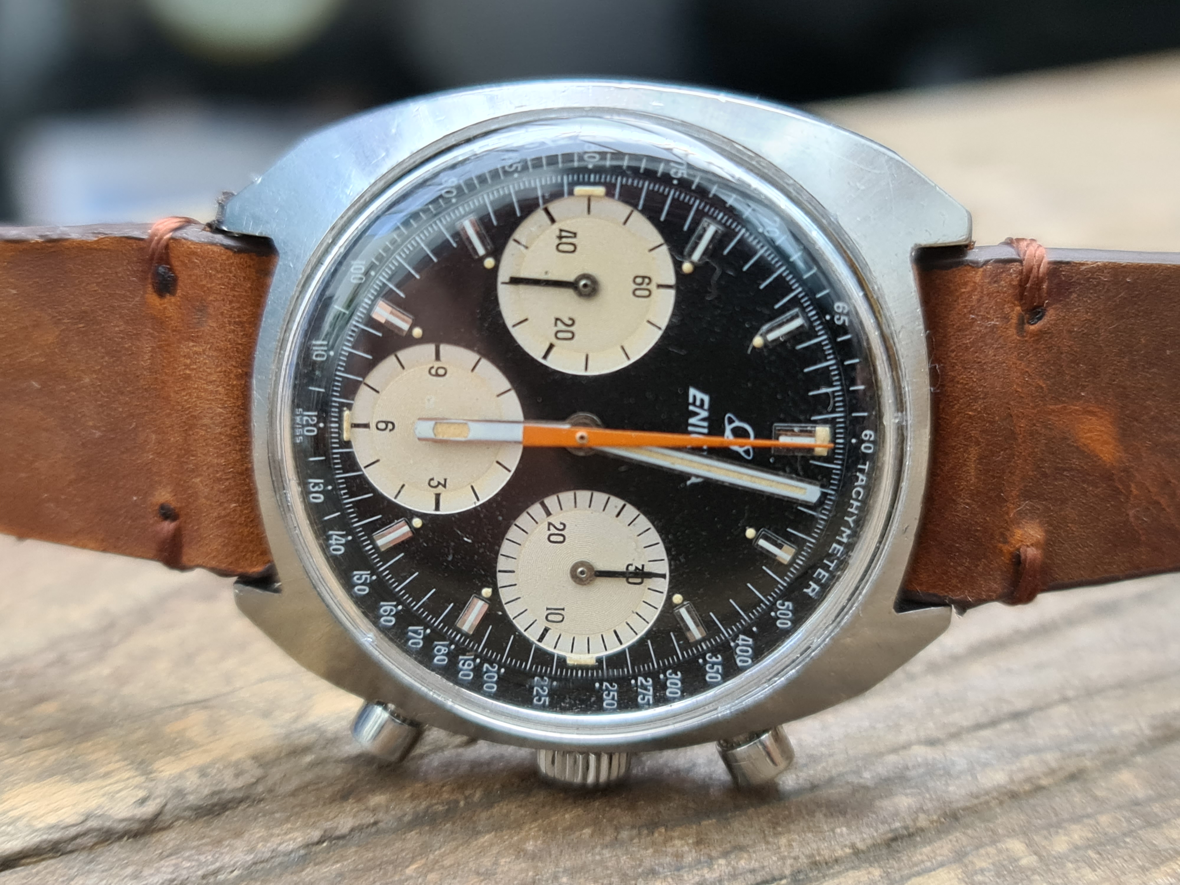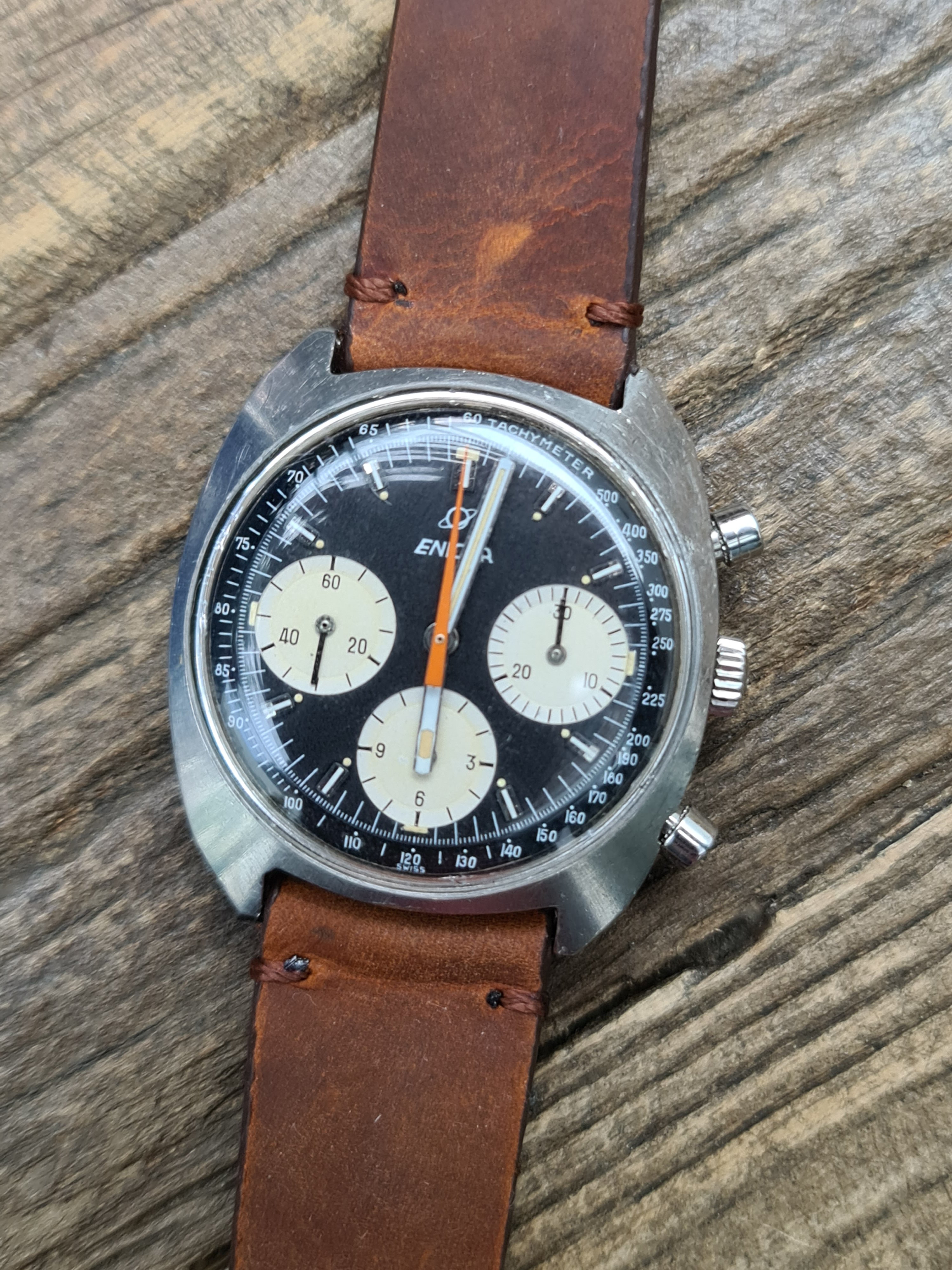 ·Up for sale is a lovely Enicar Valjoux 72 Chronograph nicknamed the 'Gerhard Mitter' or 'Mitter' for short. These were worn by the Formula driver Gerhard Mitter during races. Movement is actually the upgraded and higher beat Valjoux 72 movement being the 726.