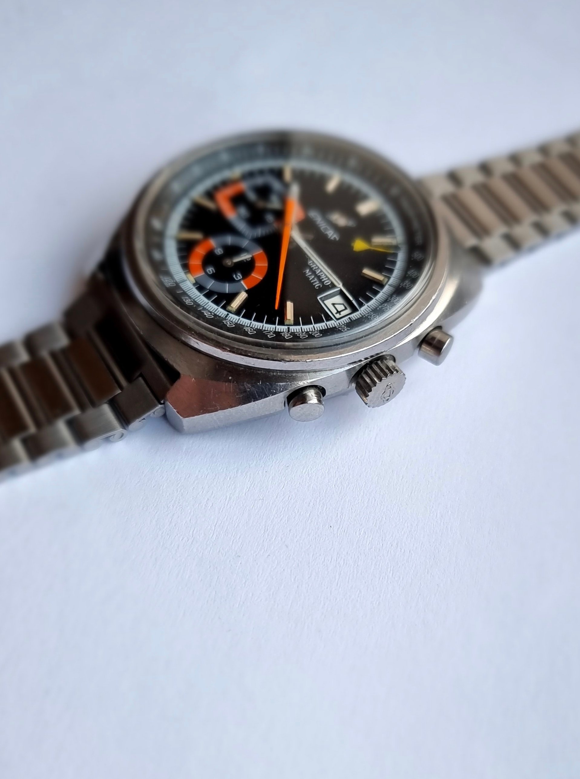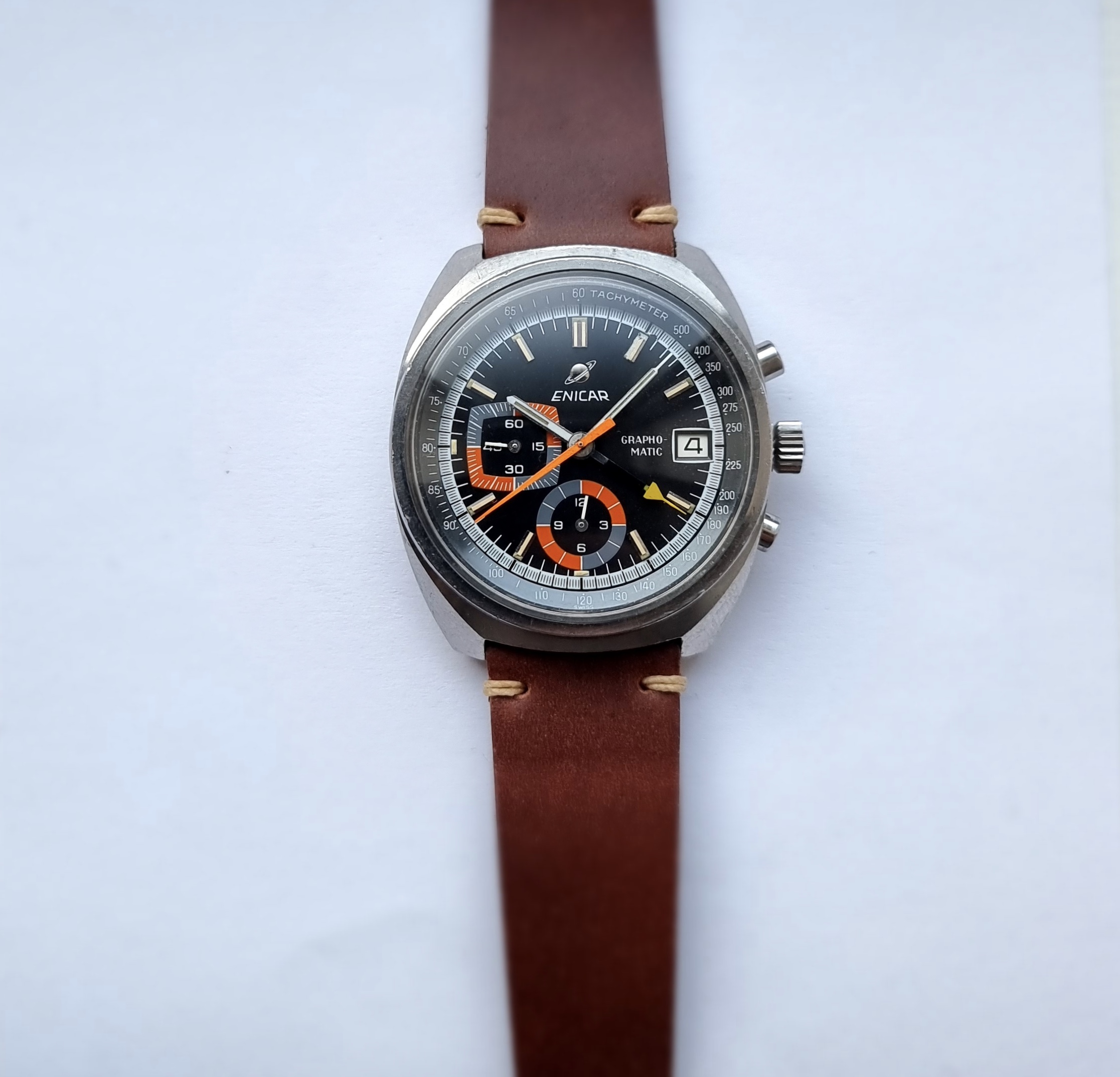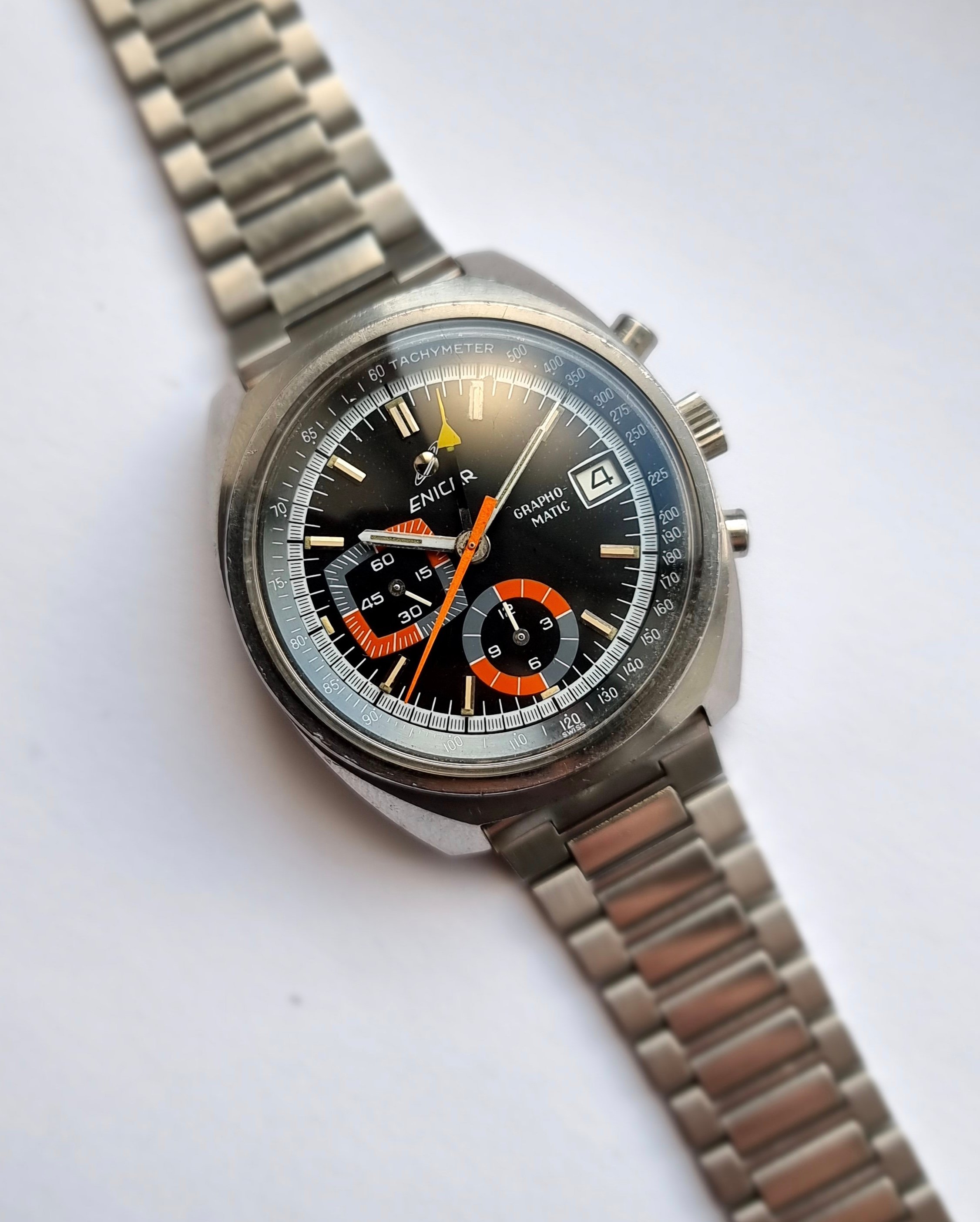·A nice Enicar Grapho-Matic chronograph with Lemania 1340 from the 1970s.
