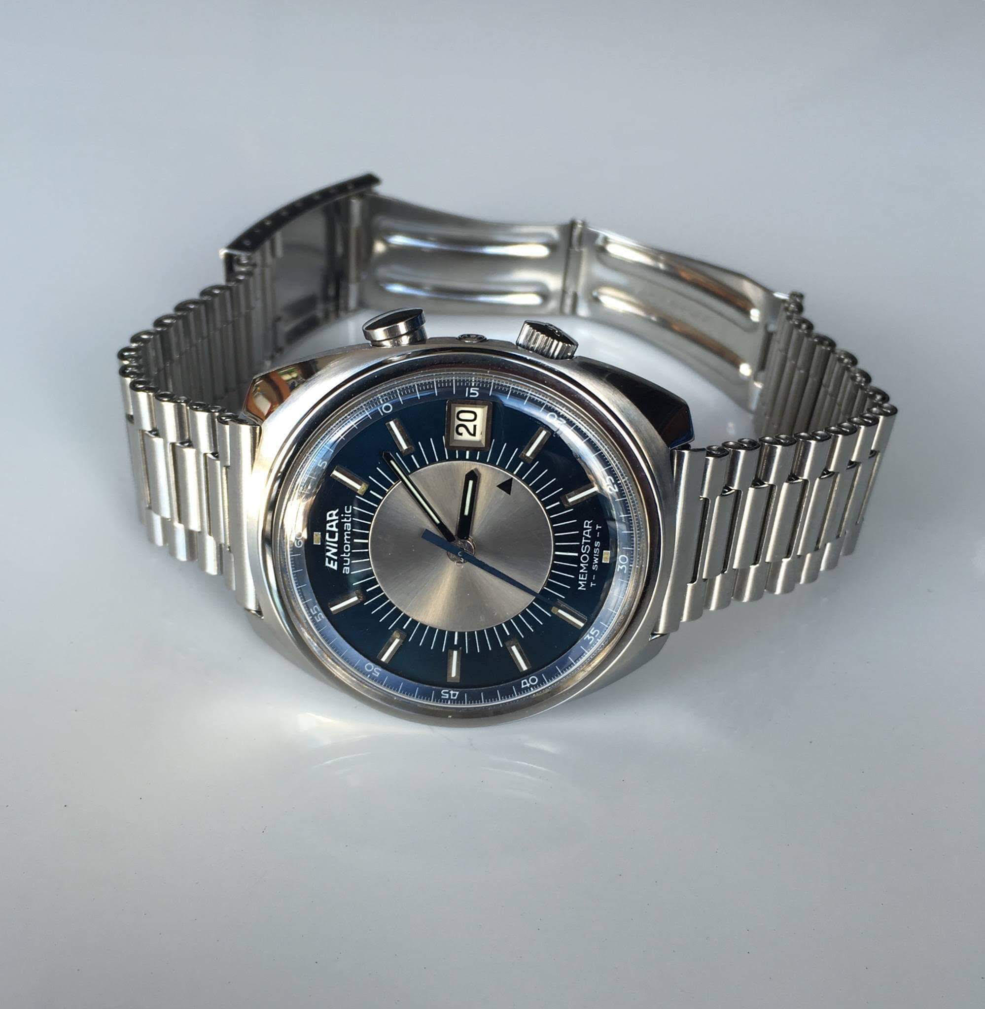 Brand: EnicarYear: Late 60’s Model: MemostarReference: 298-01-01Movement: modified Lemania 2980