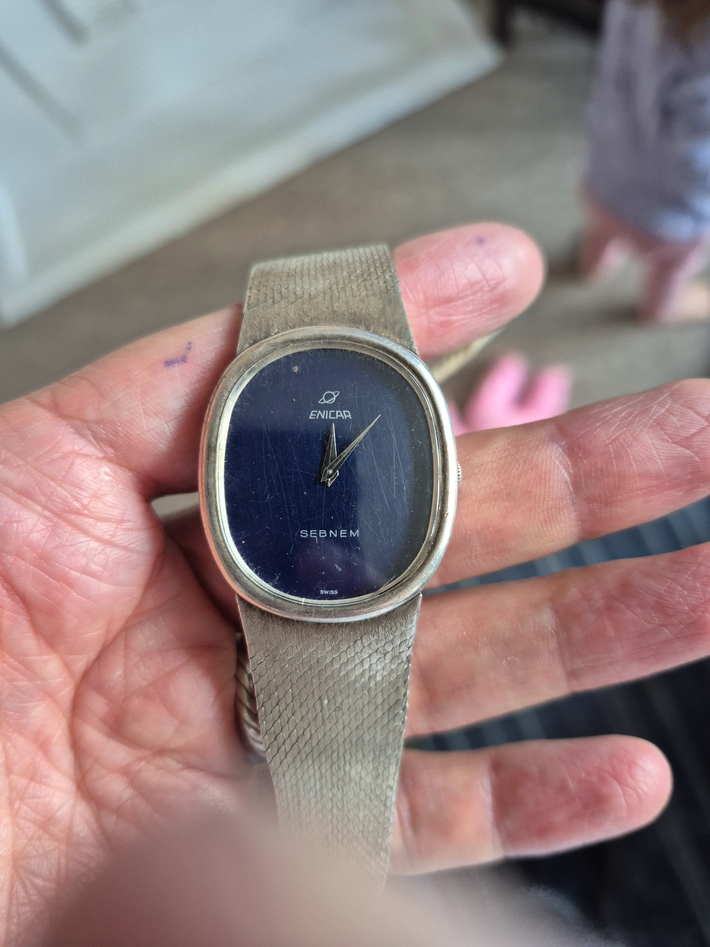 ·I visited my watch repairer today. Over the years he's become more of a friend and today he surprised me. " I've got something that might interest you" he told me. He produced this Enicar dress watch and told me it was mine if I wanted it. It was an unclaimed collection from 1994 and the liklihood of someone coming to collect now was, we both agreed very slim!!