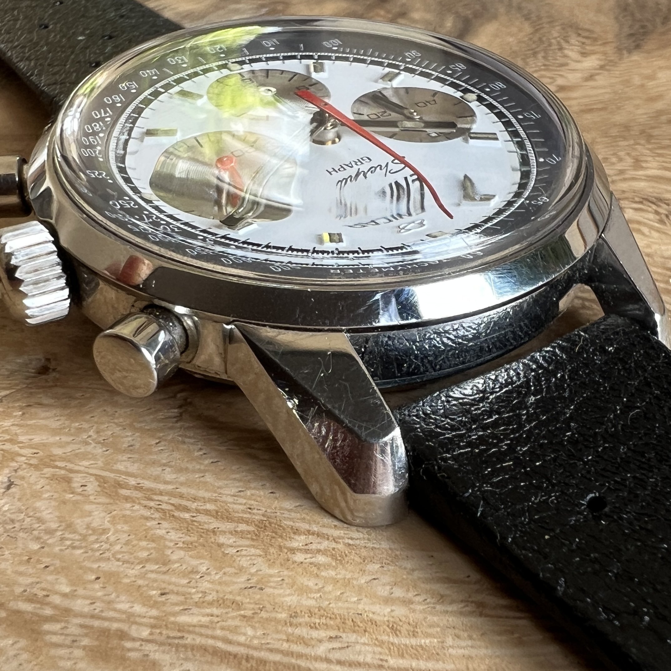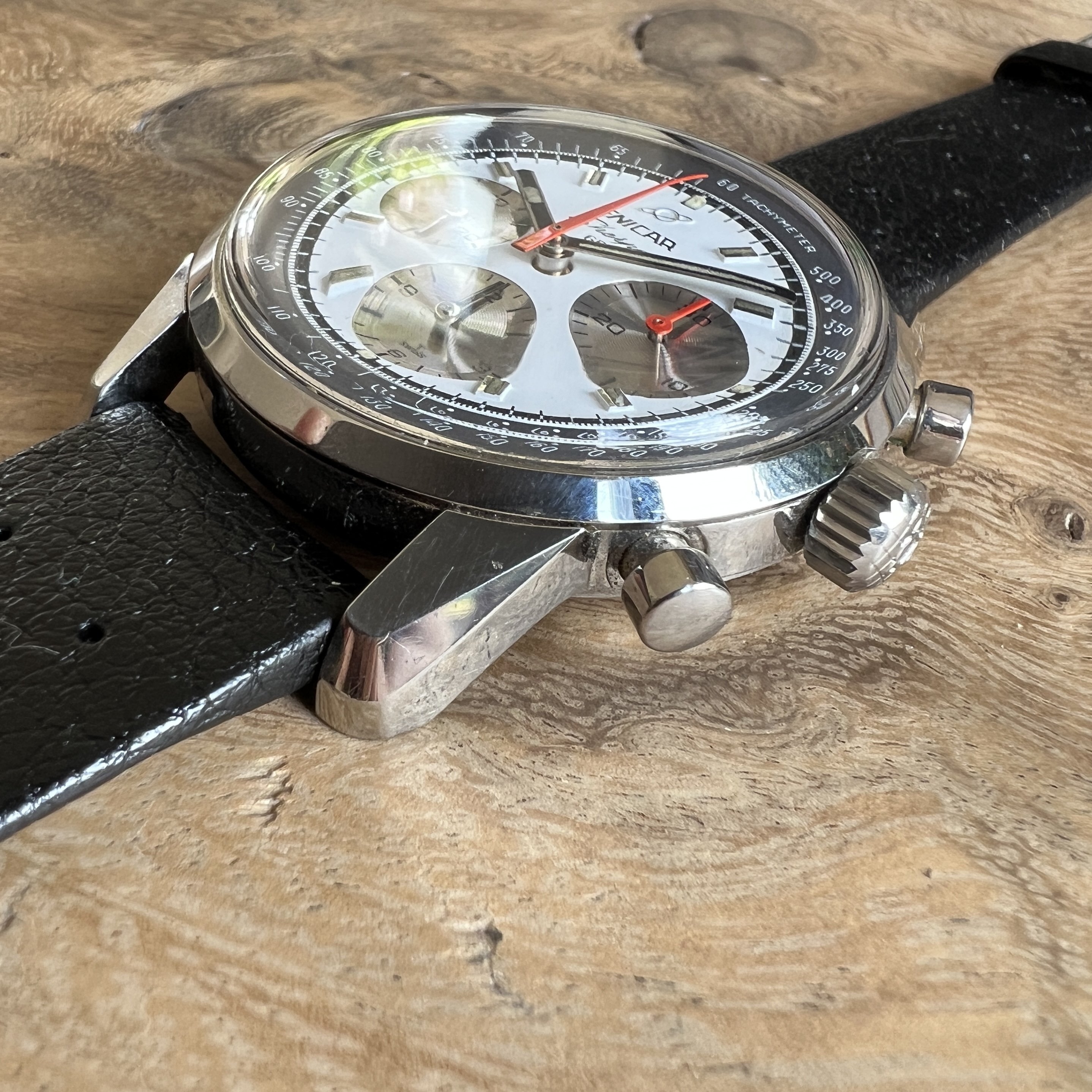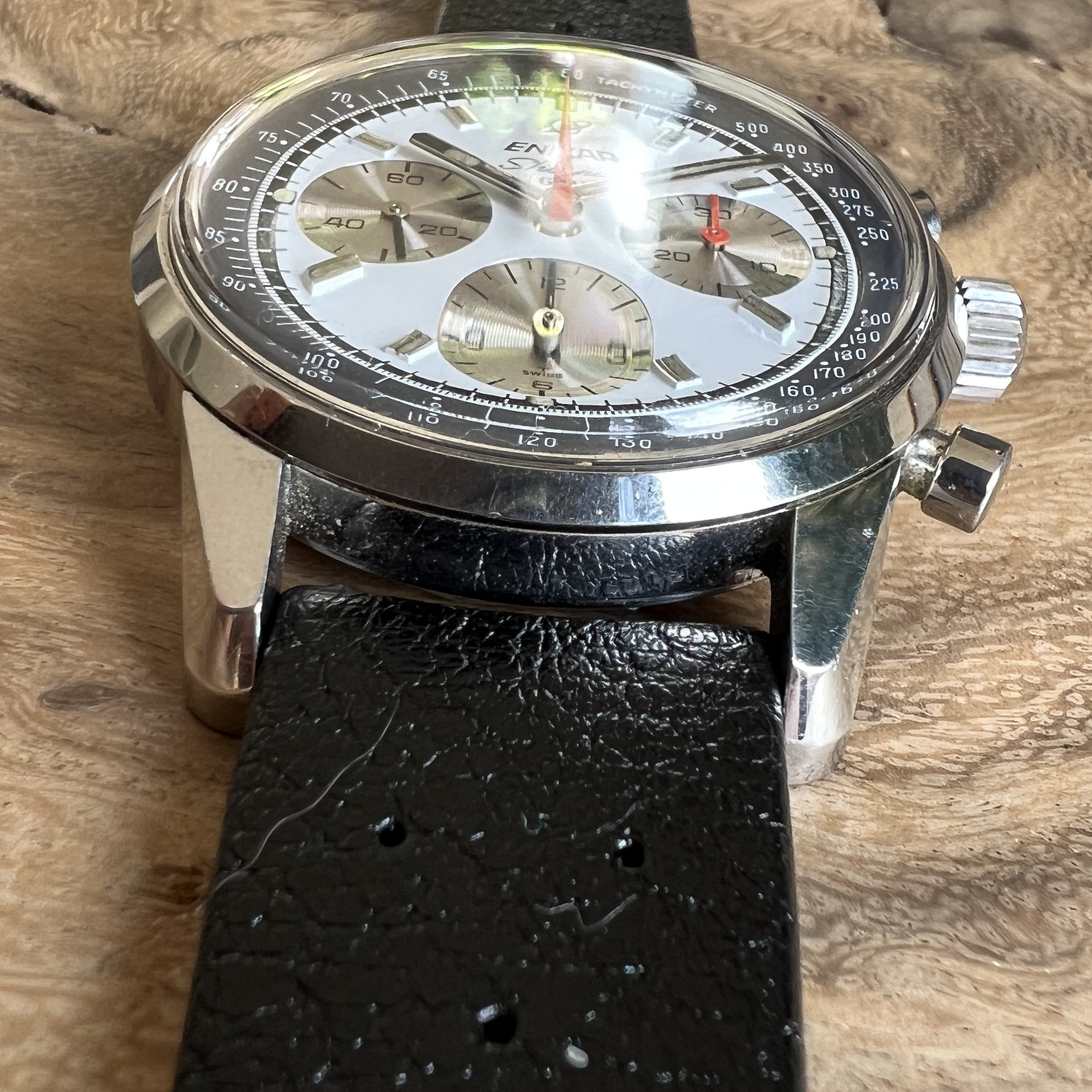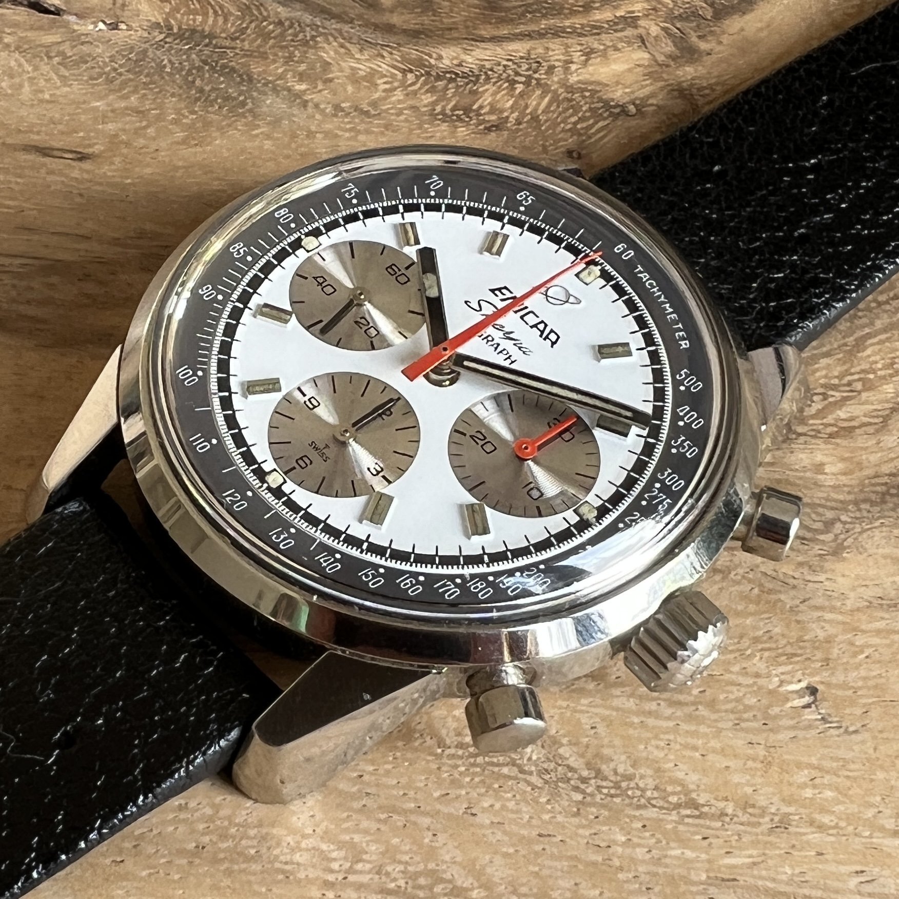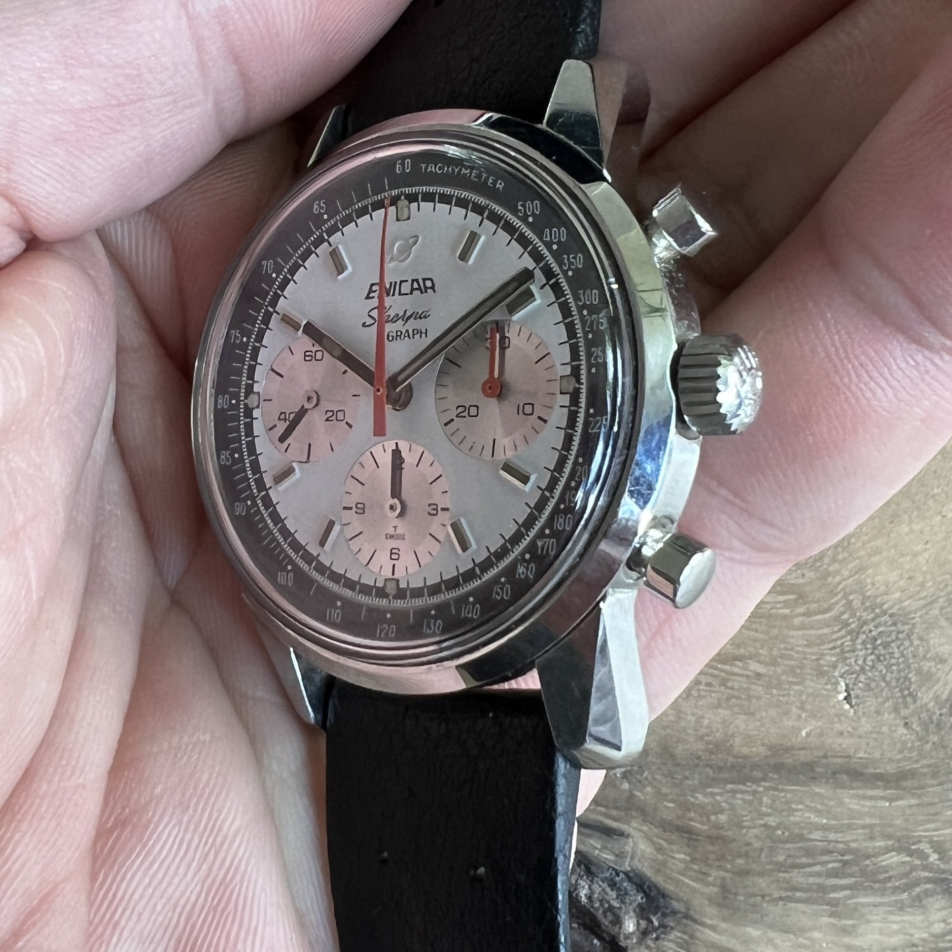 ··@SpeedyBirthYearFor sale an Enicar Sherpa Graph in amazing vintage condition. This unusual white dial Sherpa Graph must have spend a long time of its life in a drawer as its condition shows little of its life since production in approx. 1968. It pains me to let it go, but other horological priorities await. 😀