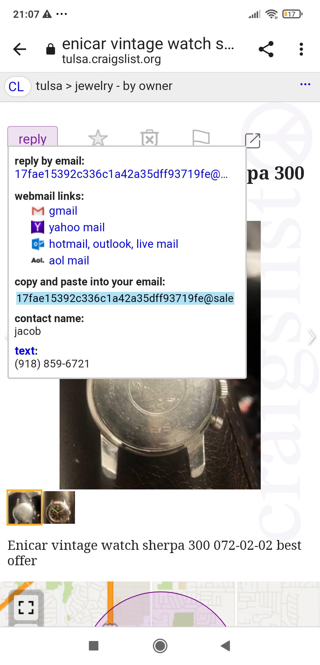 ·Right, I wanted to use the nicer conversion rates of wise.com . Turns out, its much more expensive now. As I said, he made a perfect tagged video for me, so I had no doubt he would not have the watch. He was directly contacting me via my page enicar101.com, usally not the place for scammers. Maybe he got more requests on his Craigslist sale post (i found after I closed the deal) and decided to cash more than once. The sale post is still online.