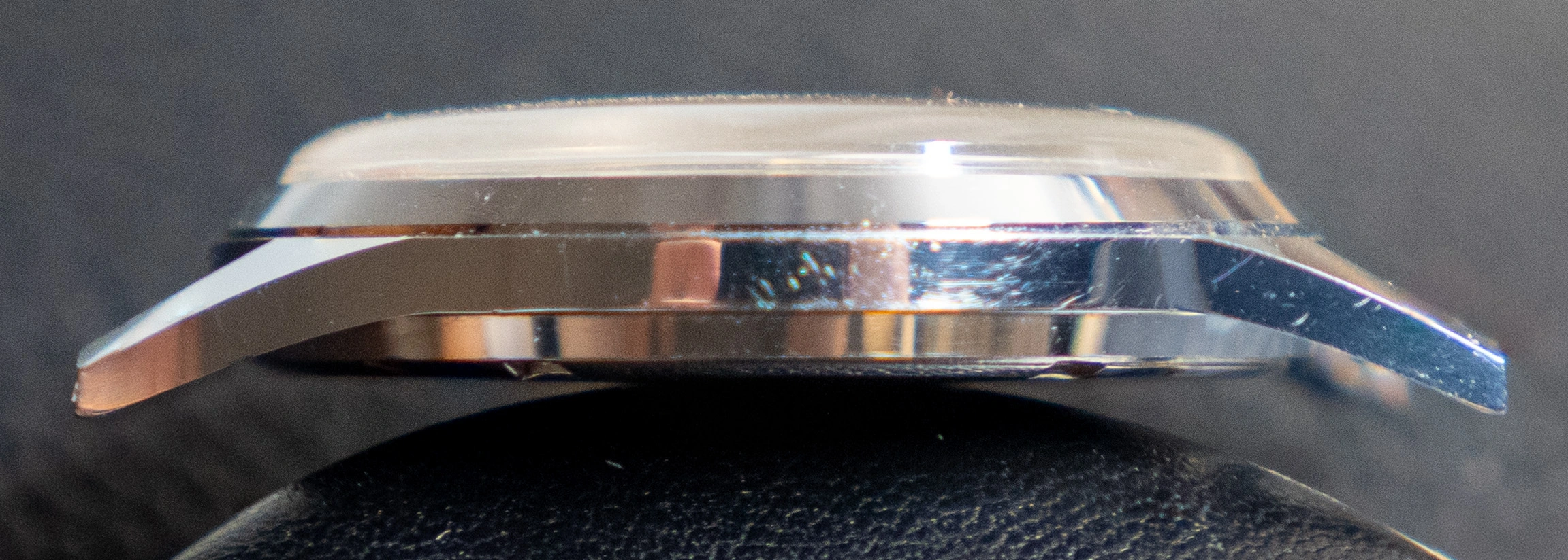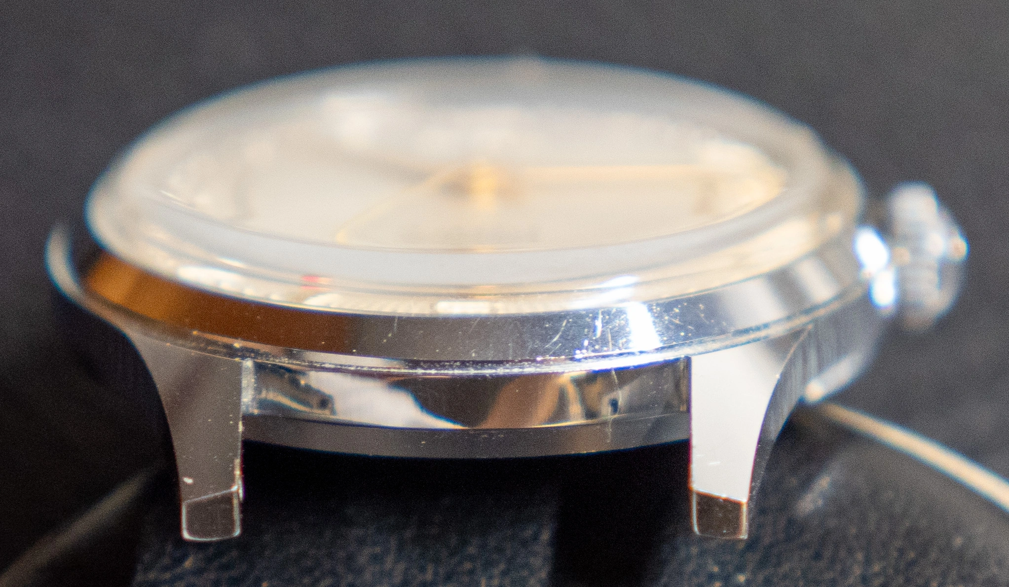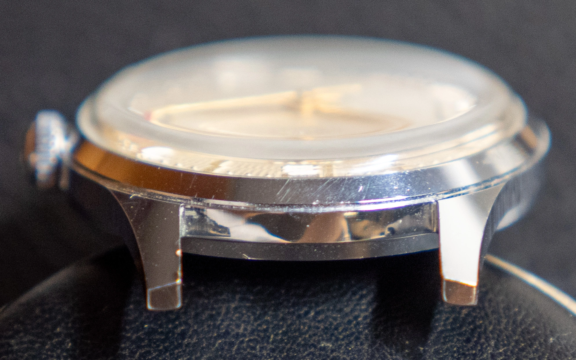 - The case is one of the really good point of this watch. It has kept most of it original finish and definition. There are some usual wear scratches. The main ding is on the top right lug.