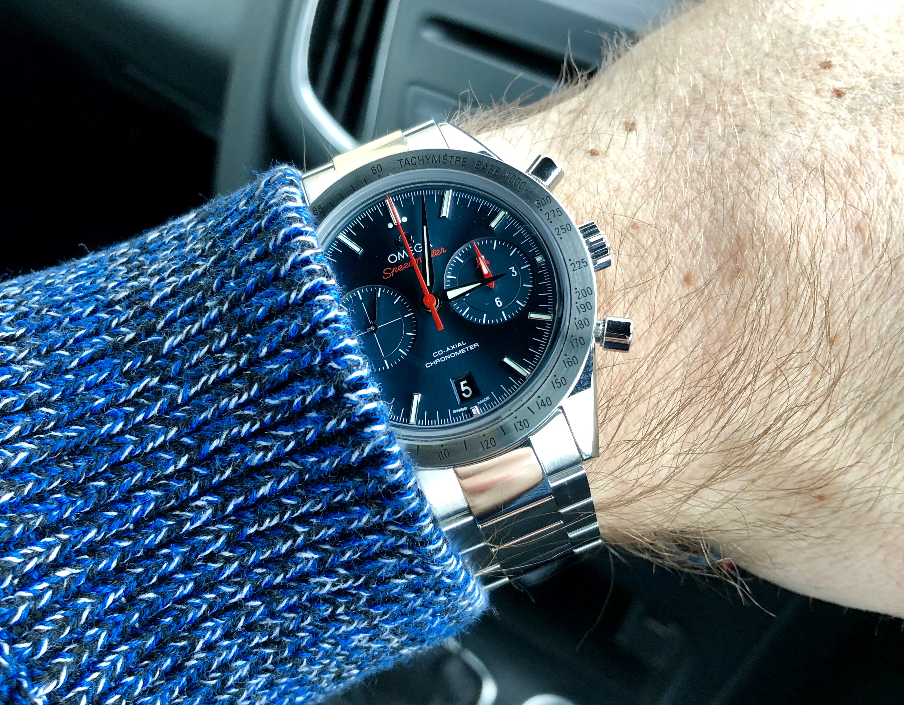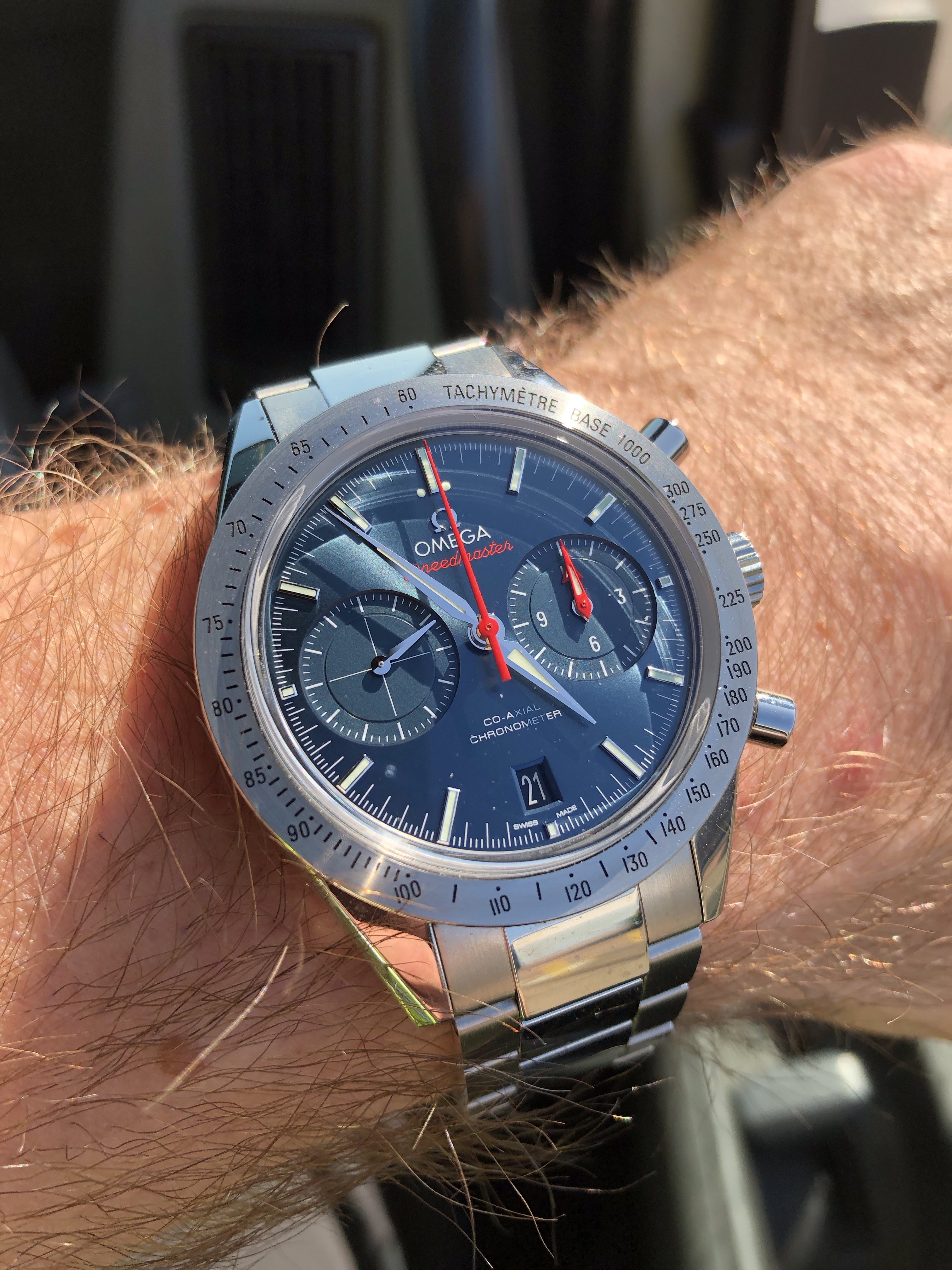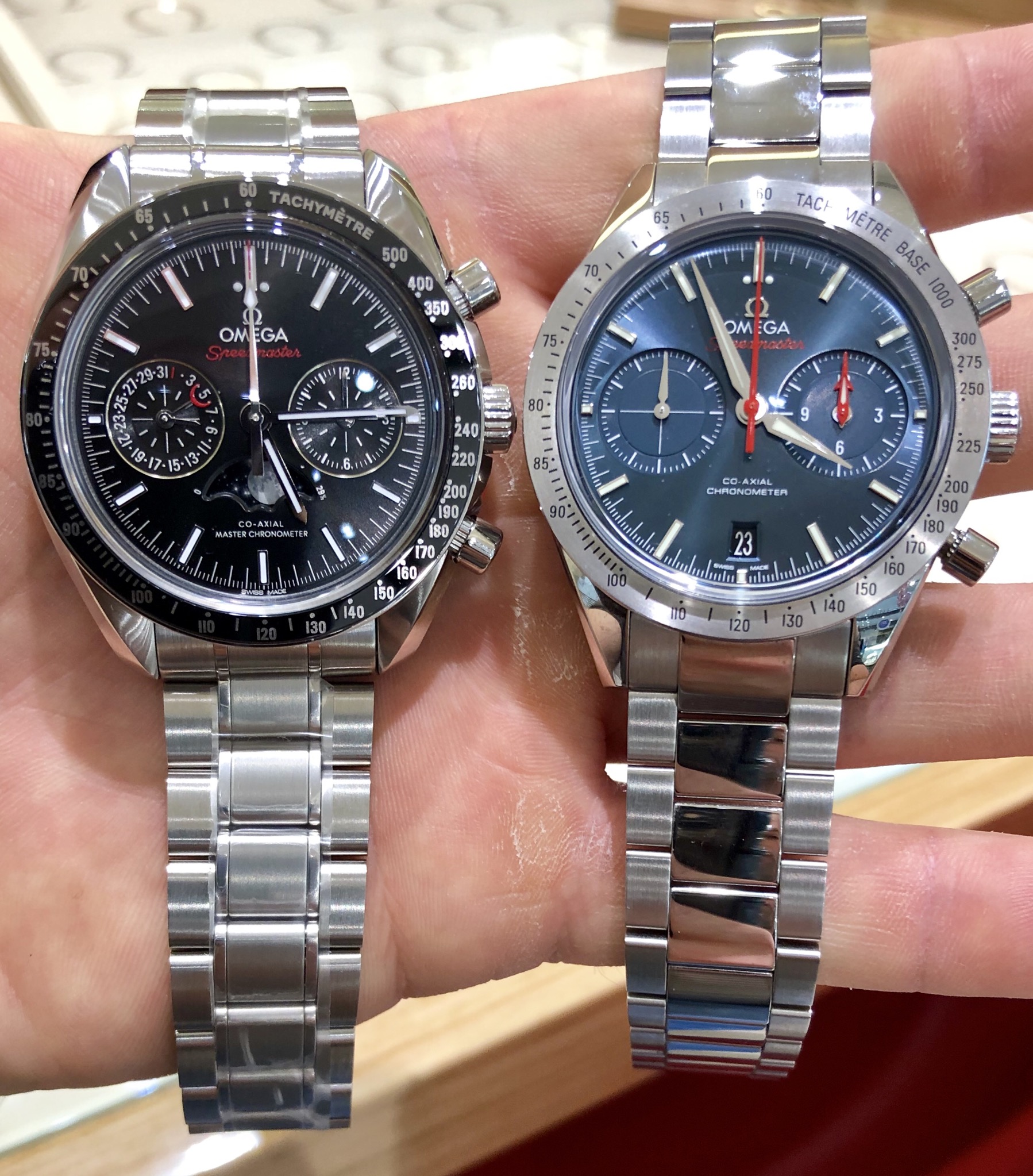 I did look at the Moonphase along with the Moonwatch, both are amazing. Even though the Moonphase is a whopping 44.25mm case diameter, the lug length is around 49.9mm, around the same size as the Speedmaster 57 lug length.