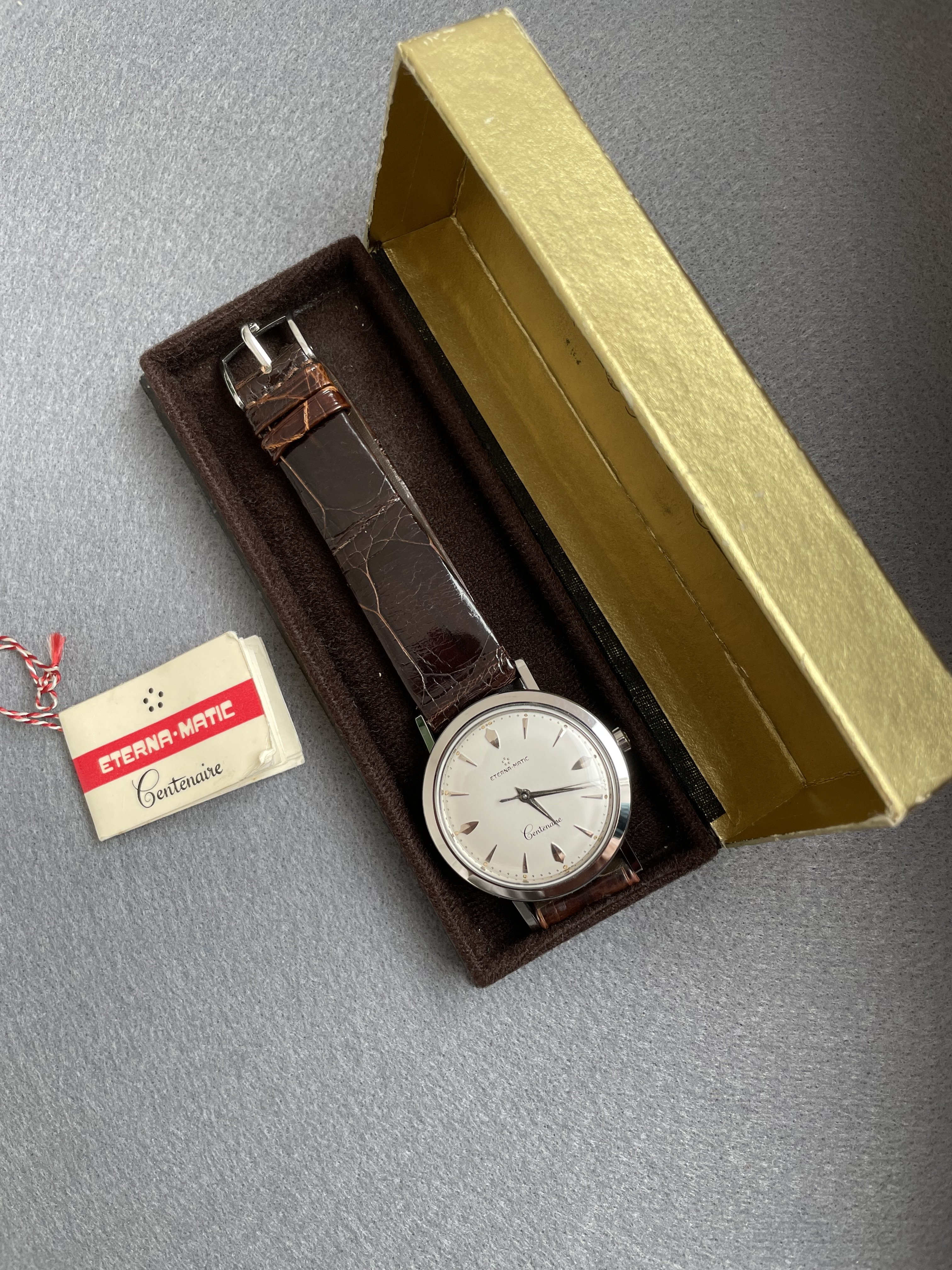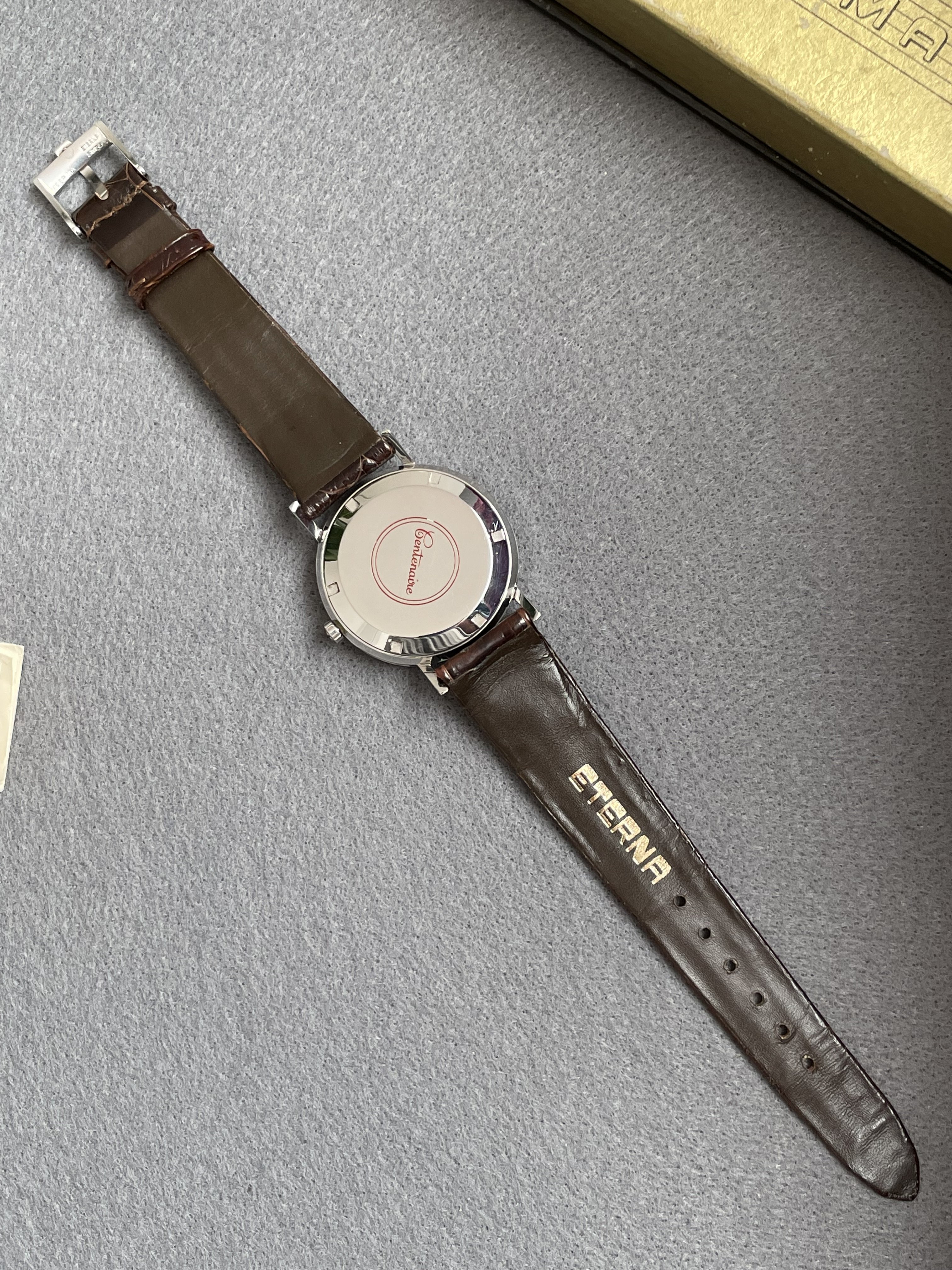 I would like to sell the watch, I would only exchange it for an Omega 166.010 or another Omega with "beefy lugs", or Omega Conny or Seamaster with black dial. Additional payment is possible. I set the price of the Eterna at €550 - anyone who finds a cheaper one in this condition should buy it.