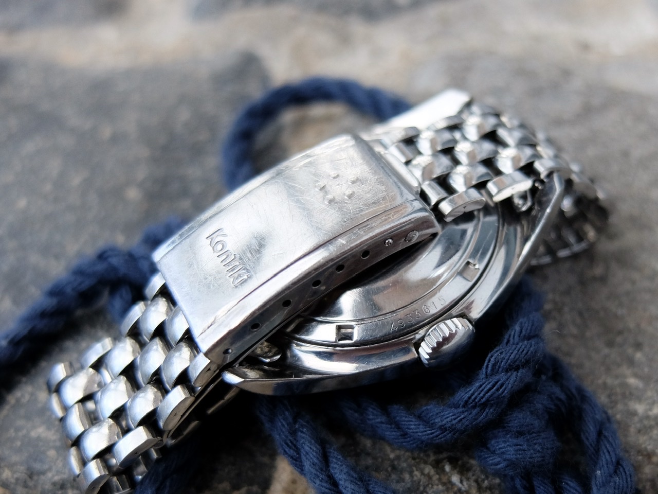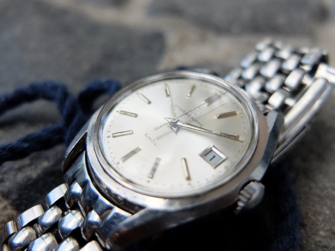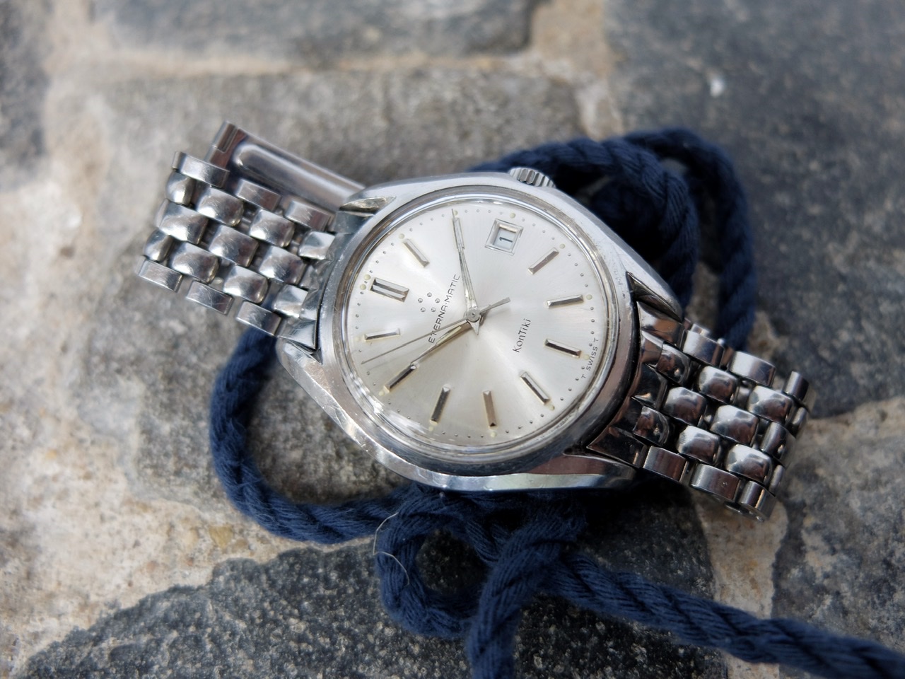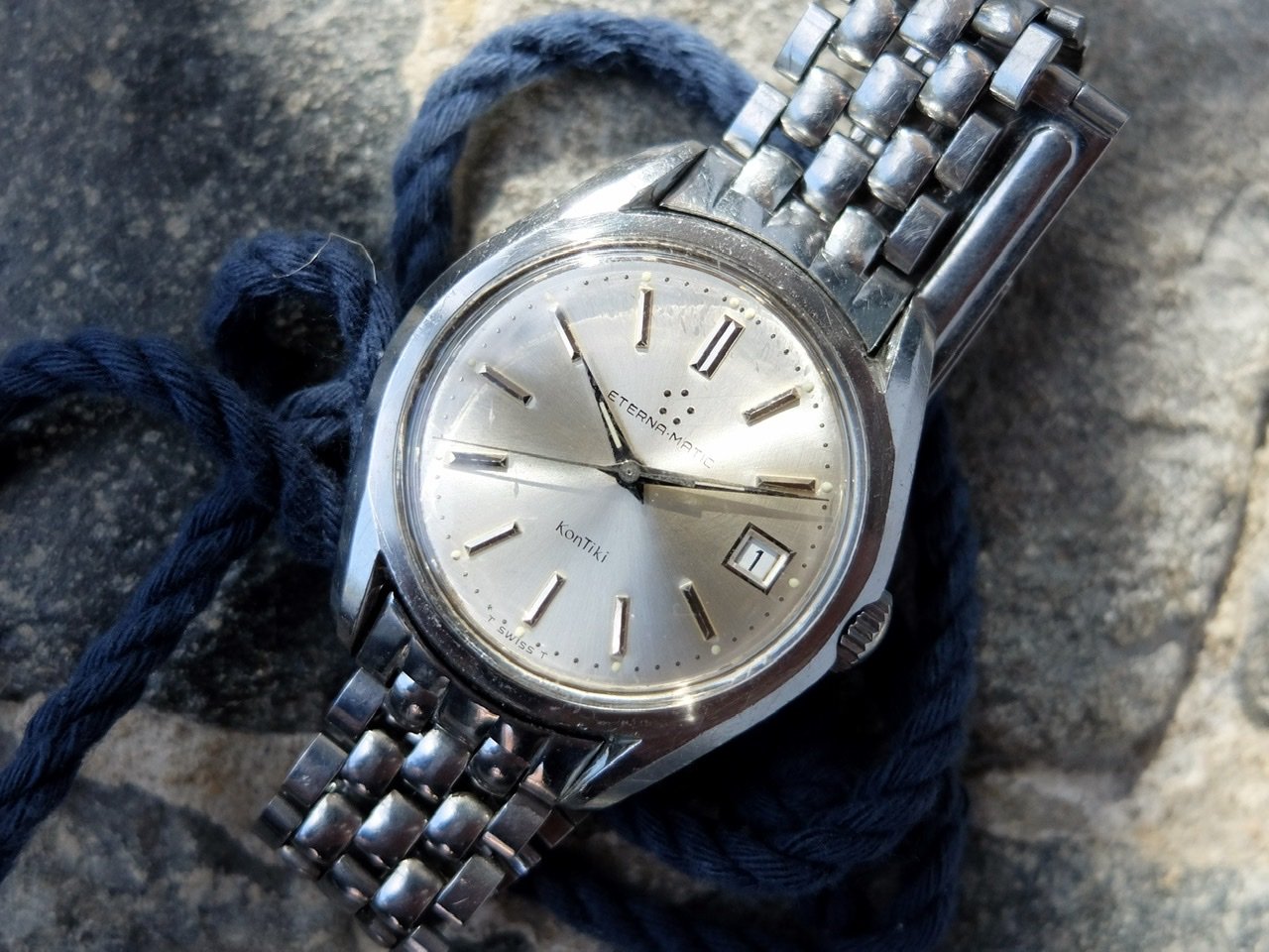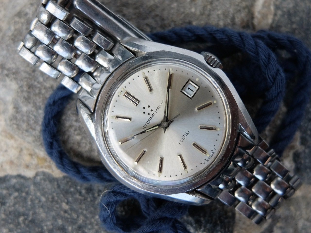 ·Up for sale is an Eterna Kontiki jumbo in the 37mm case with its original full length Gay Frères bracelet and KG end links. The clasp has a small ding right around the Kontiki engraving that doesn’t effect its function at all. It closes properly.
