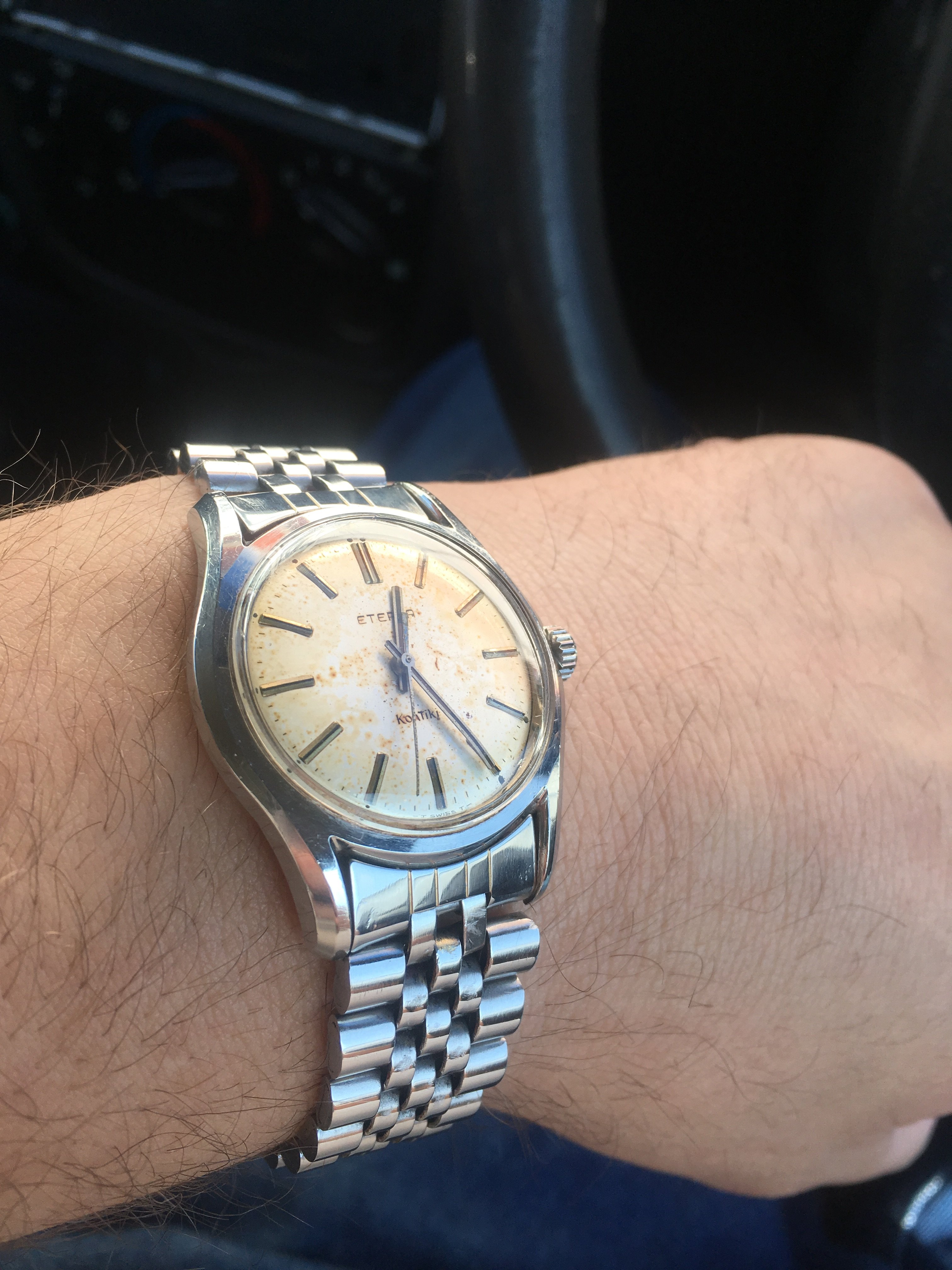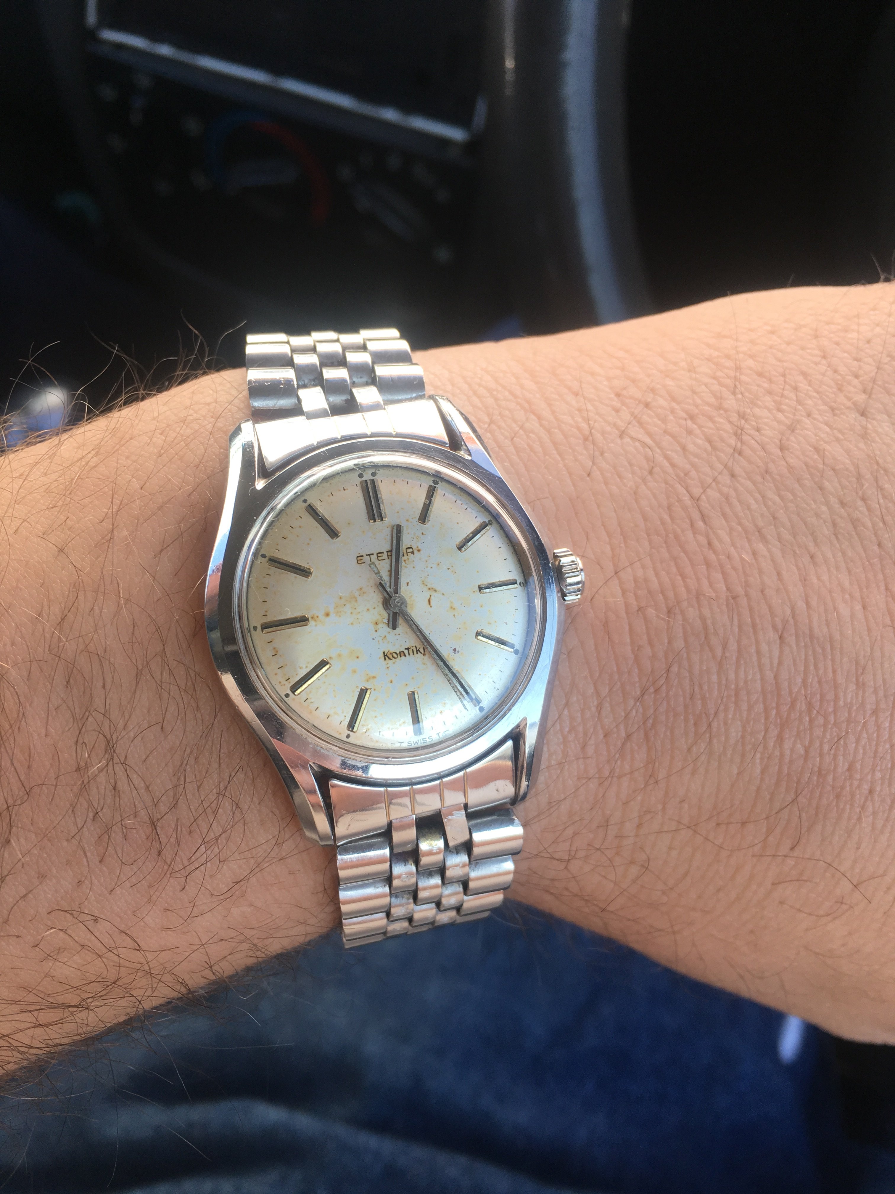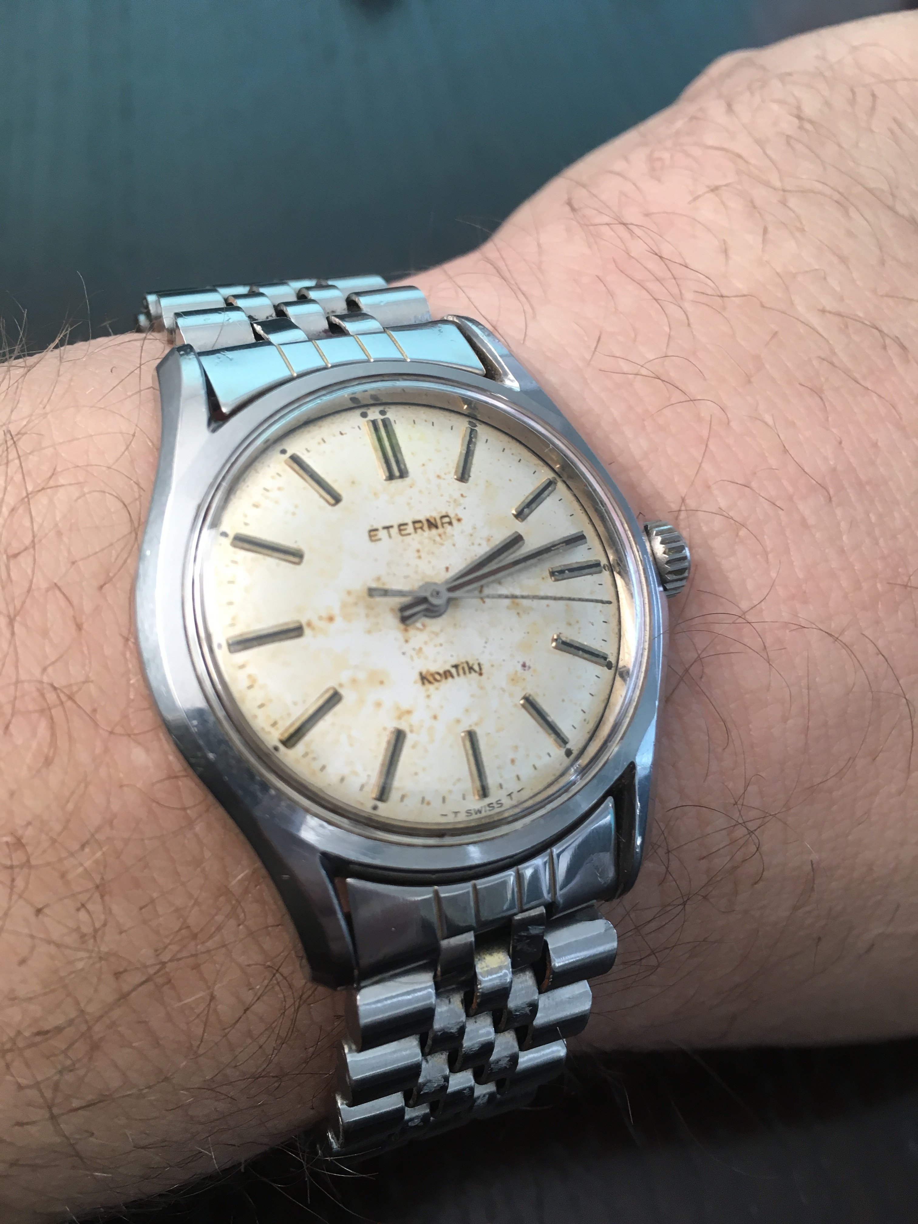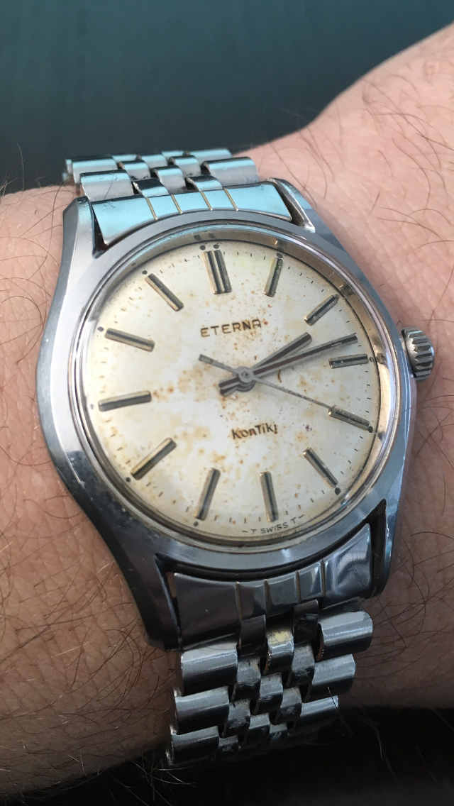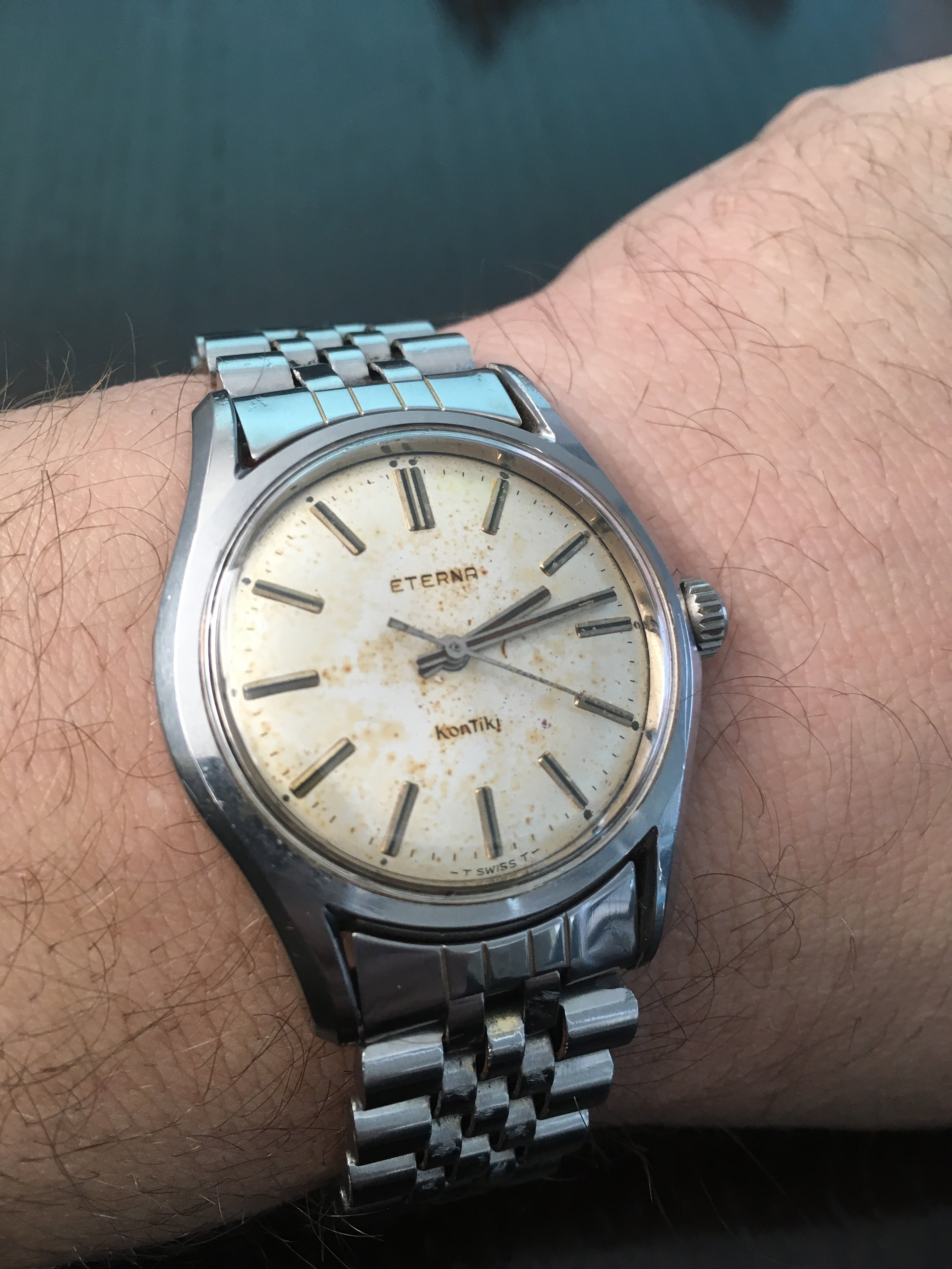 Posts 448 Likes 524 cfw ·Sep 5, 2020 Eterna Kontiki first edition. 130t casing. 1408a manual wind. Keeps great time. Comes on an aftermarket jubilee bracelet. $325 includes PayPal fees and shipping.