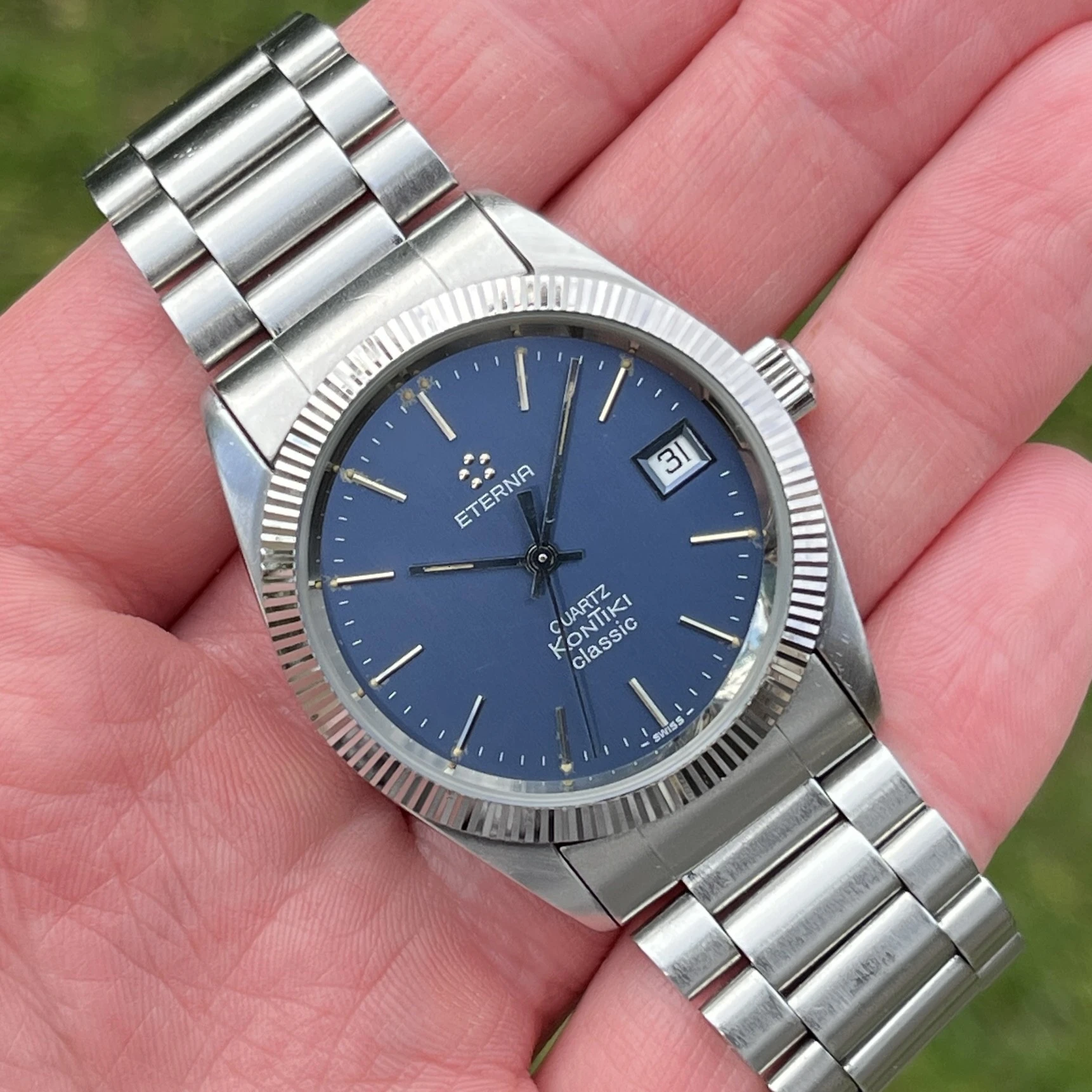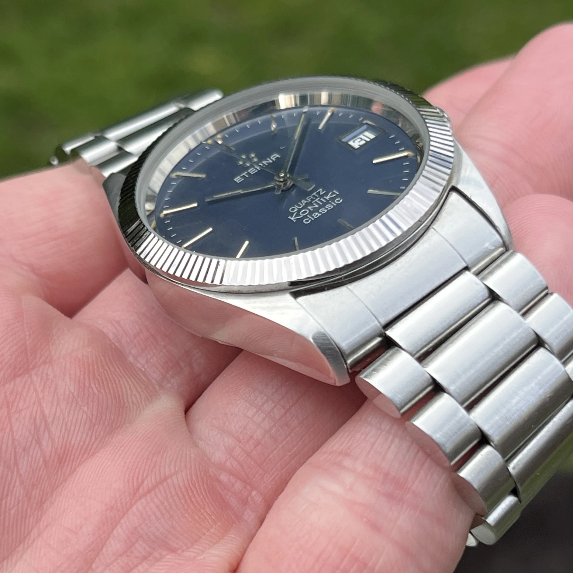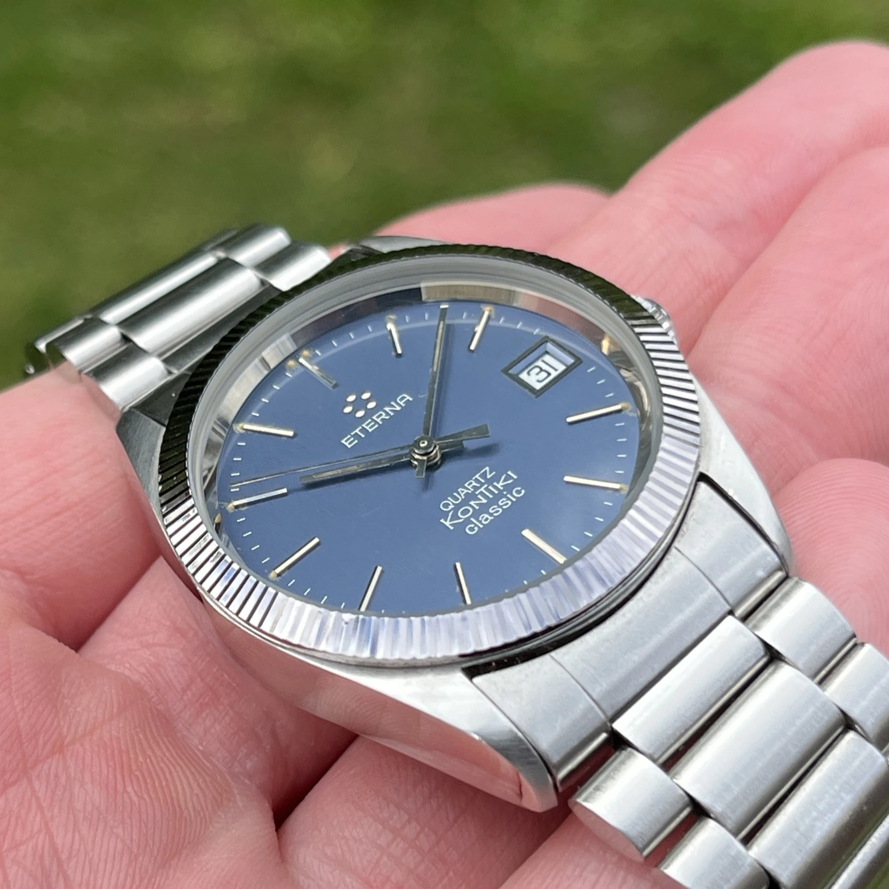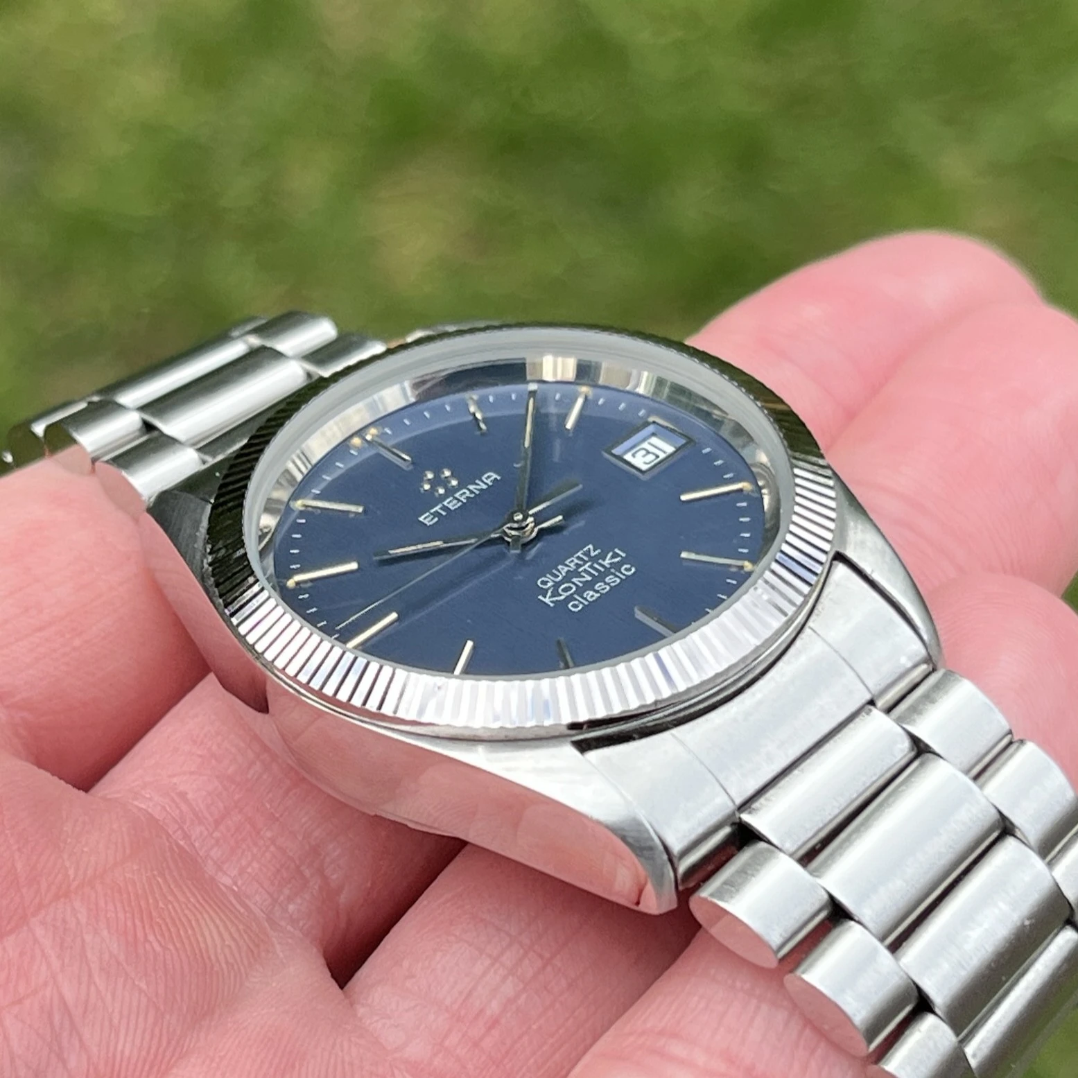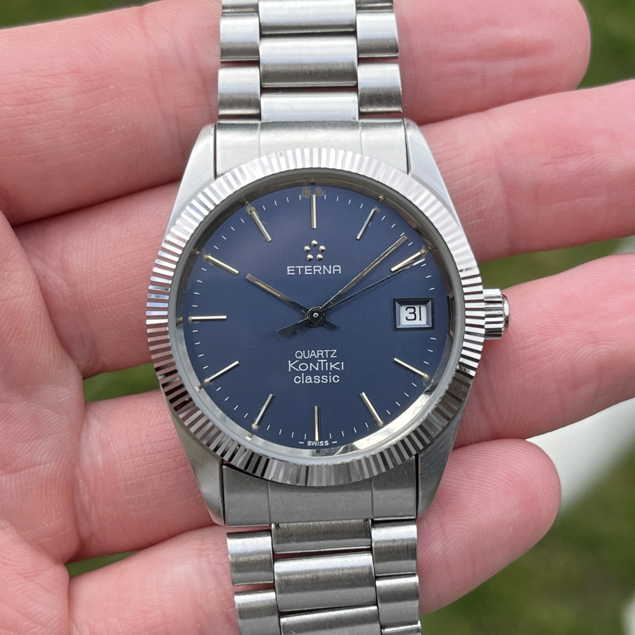 Spring cleaning continues. Up for your consideration is this 1980s Eterna Kontiki Classic with a quartz movement (new battery January 2025). I acquired this watch a few years back.