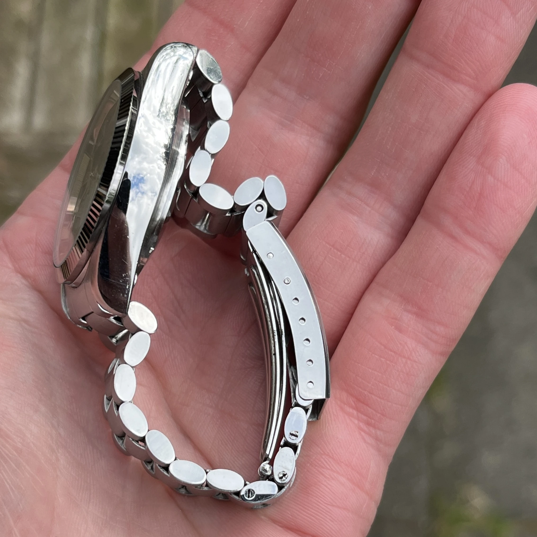 The case is in great condition with razor sharp lugs and a fluted bezel that is a sight to behold. It also has a screw down crown.