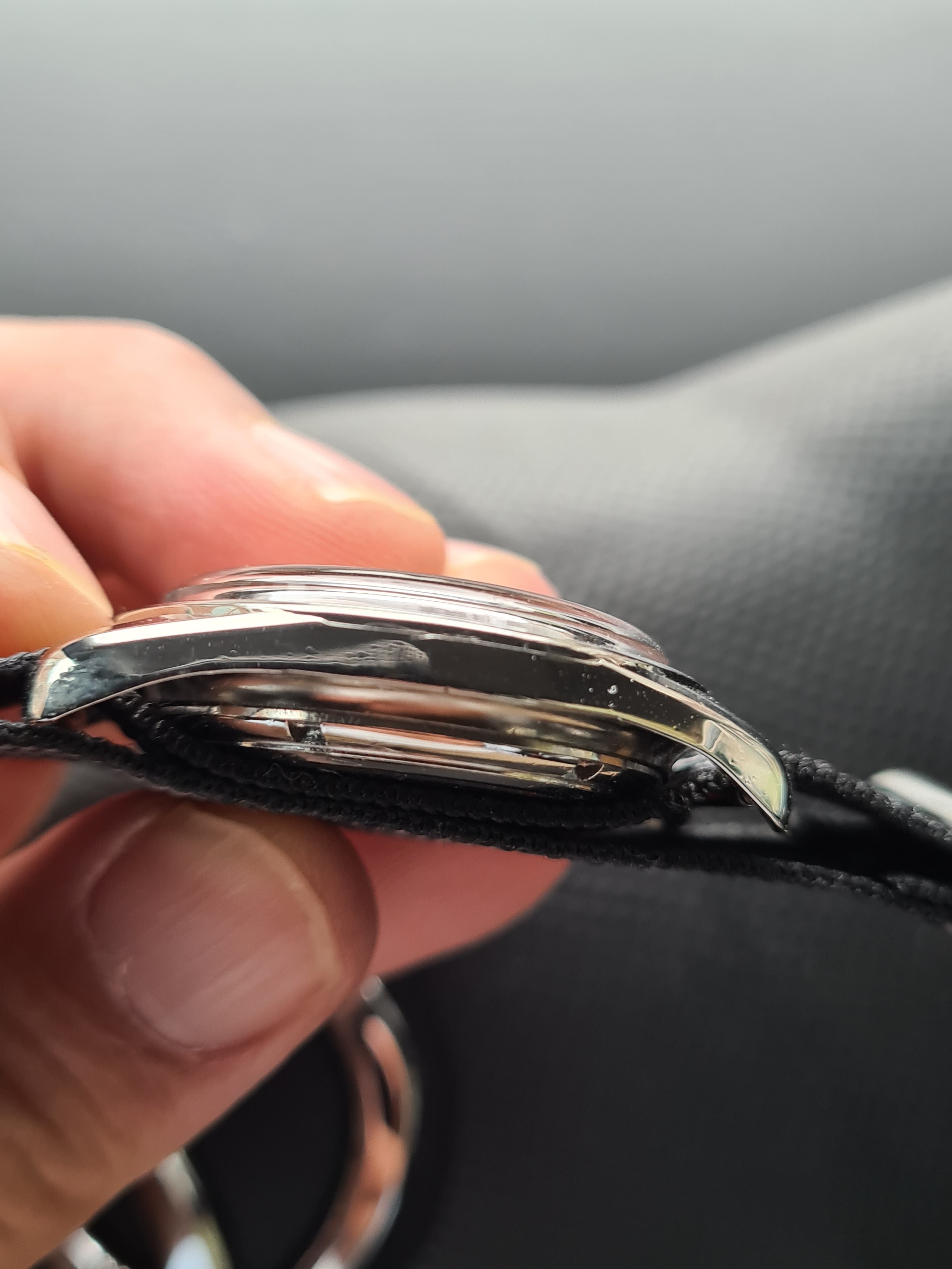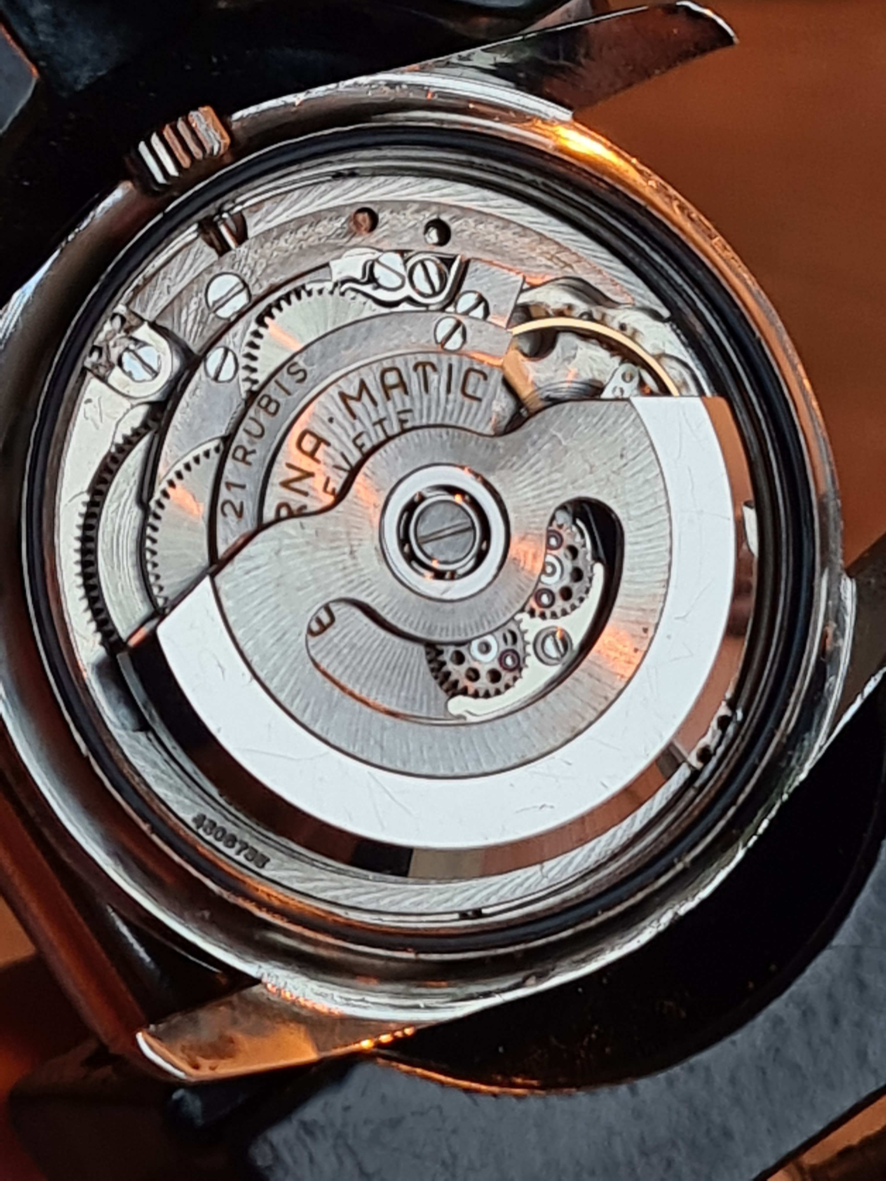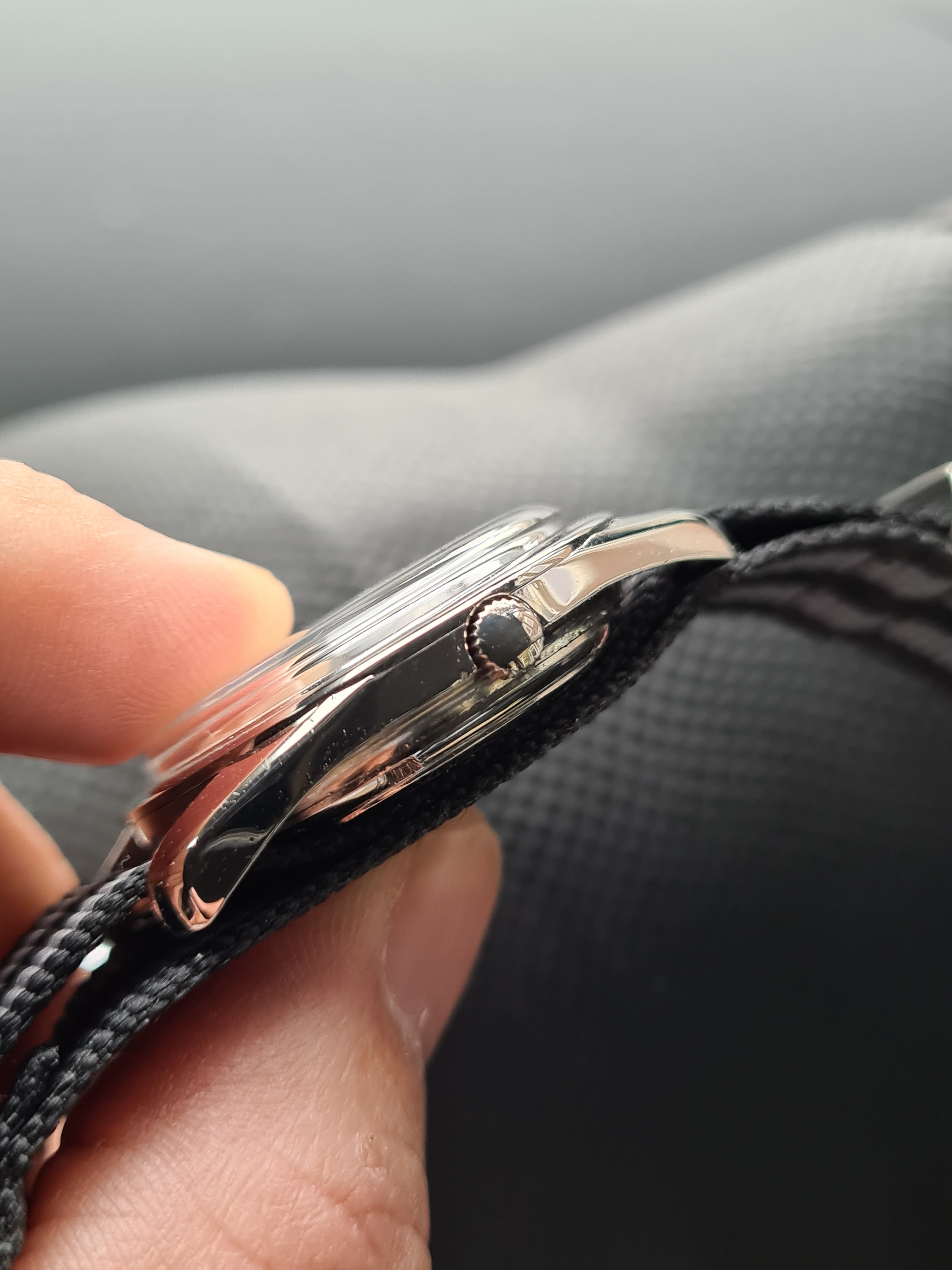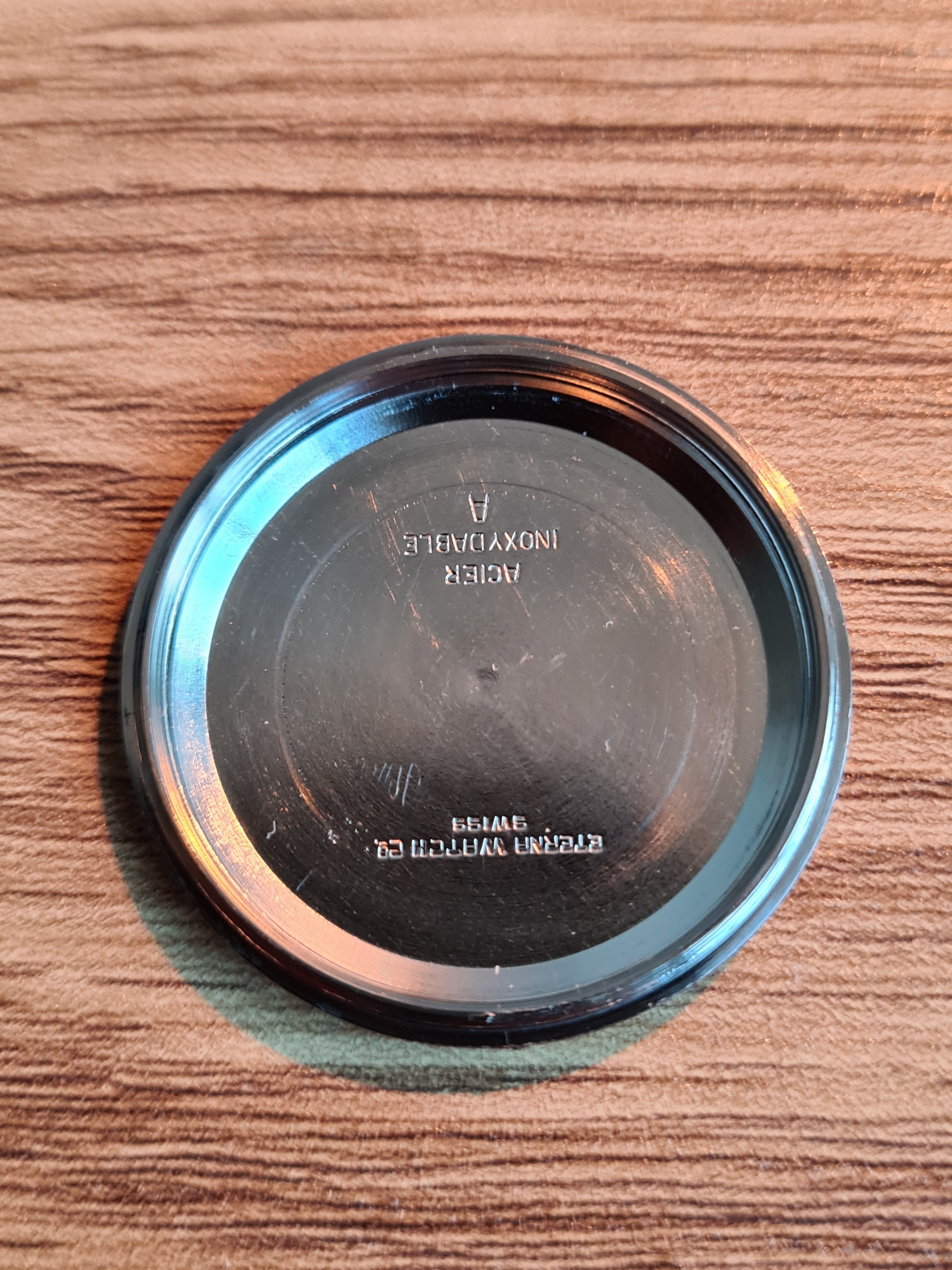 For sale today a Eterna Matic Chronometer. I'm not a eterna expert but here it goes (if I made a mistake just pm me, I will correct it). The case measures 35mm with a hidden/sunken crown. The hands were probably replaced because I only saw these with dauphine-ish hands. The crown is unsigned. Not sure if it's original. The same goes for the lume plots.The watch was produced probably around 1959/1960 according to the eterna timetable. The watch runs fine but service history is unknown. I could'nt make a picture of the caliber. But I assume it's a chronometer rated 1422U caliber. The watch will be delivered with a eterna box. I do not know if it's original to the watch.