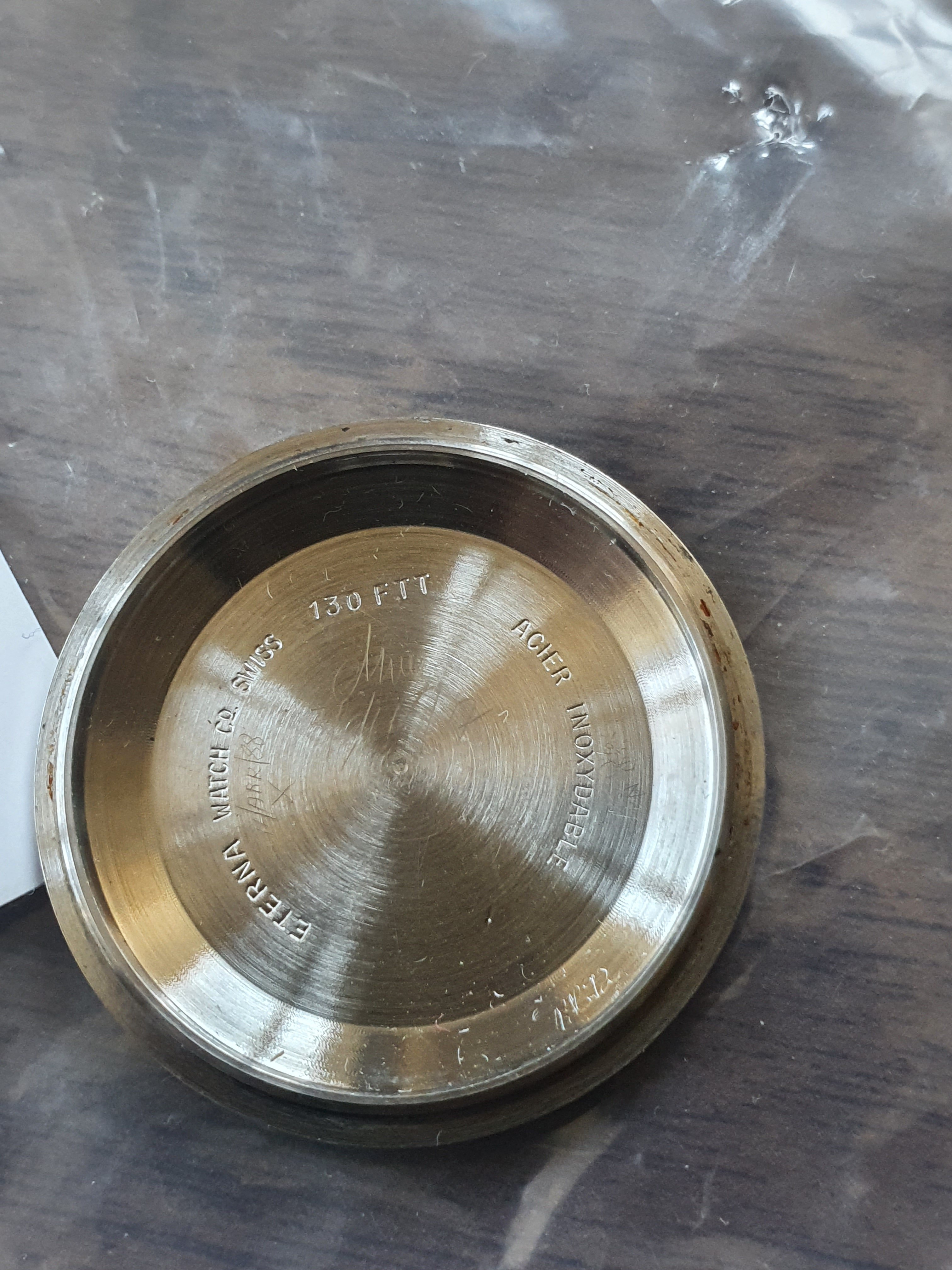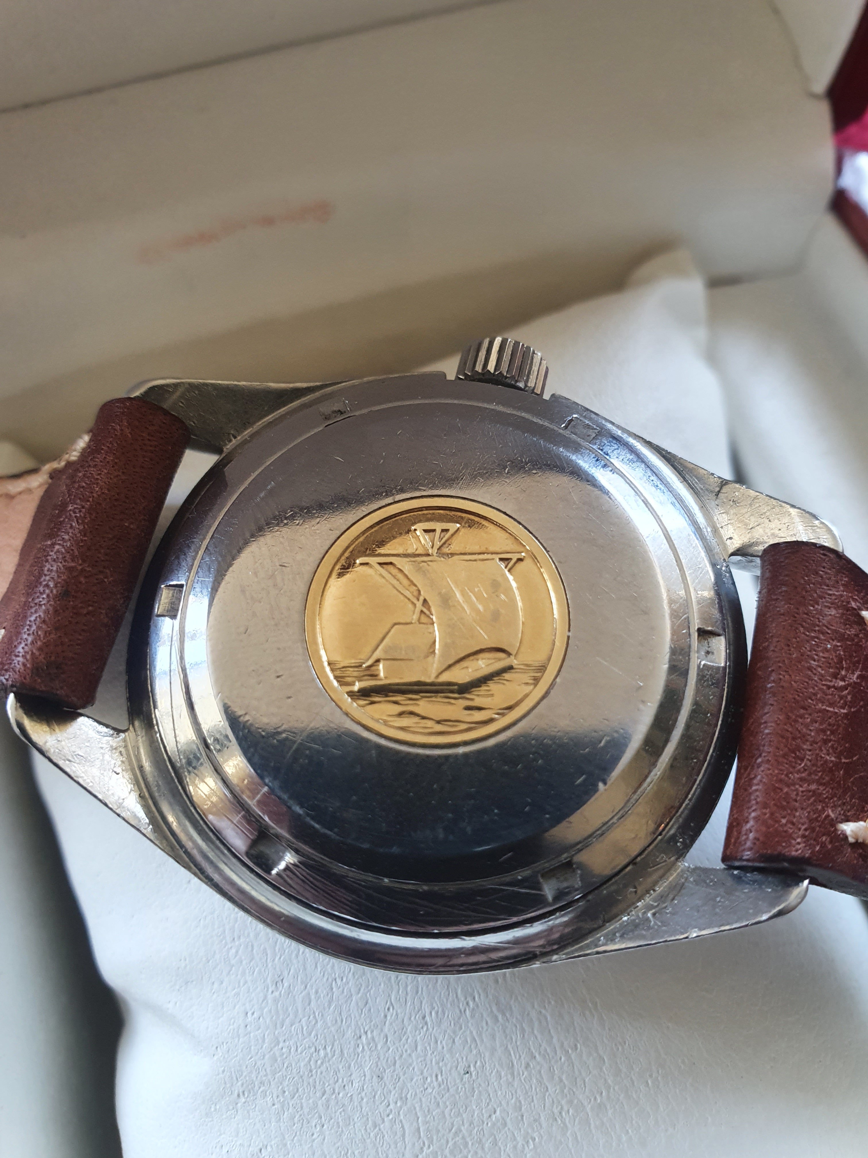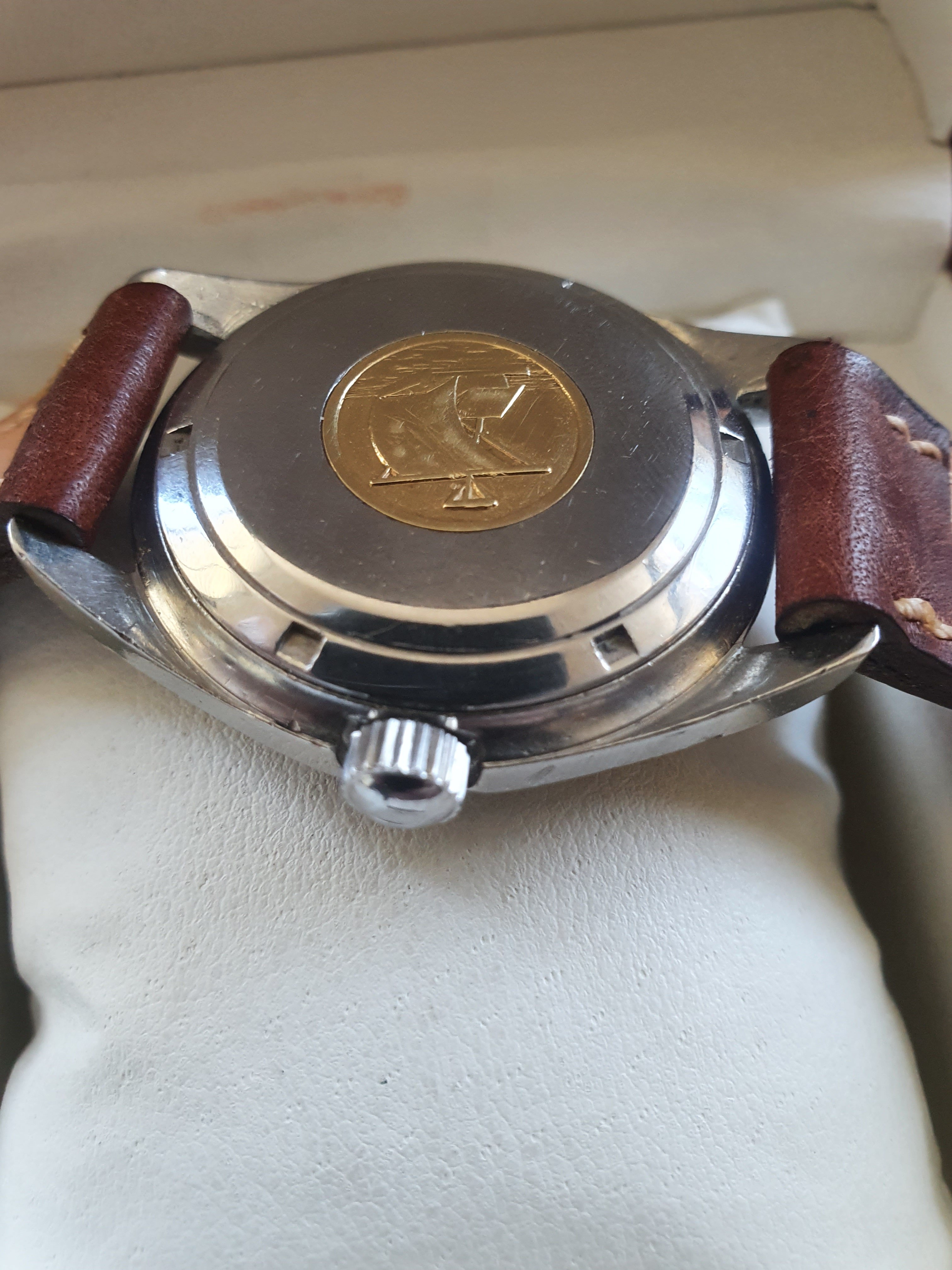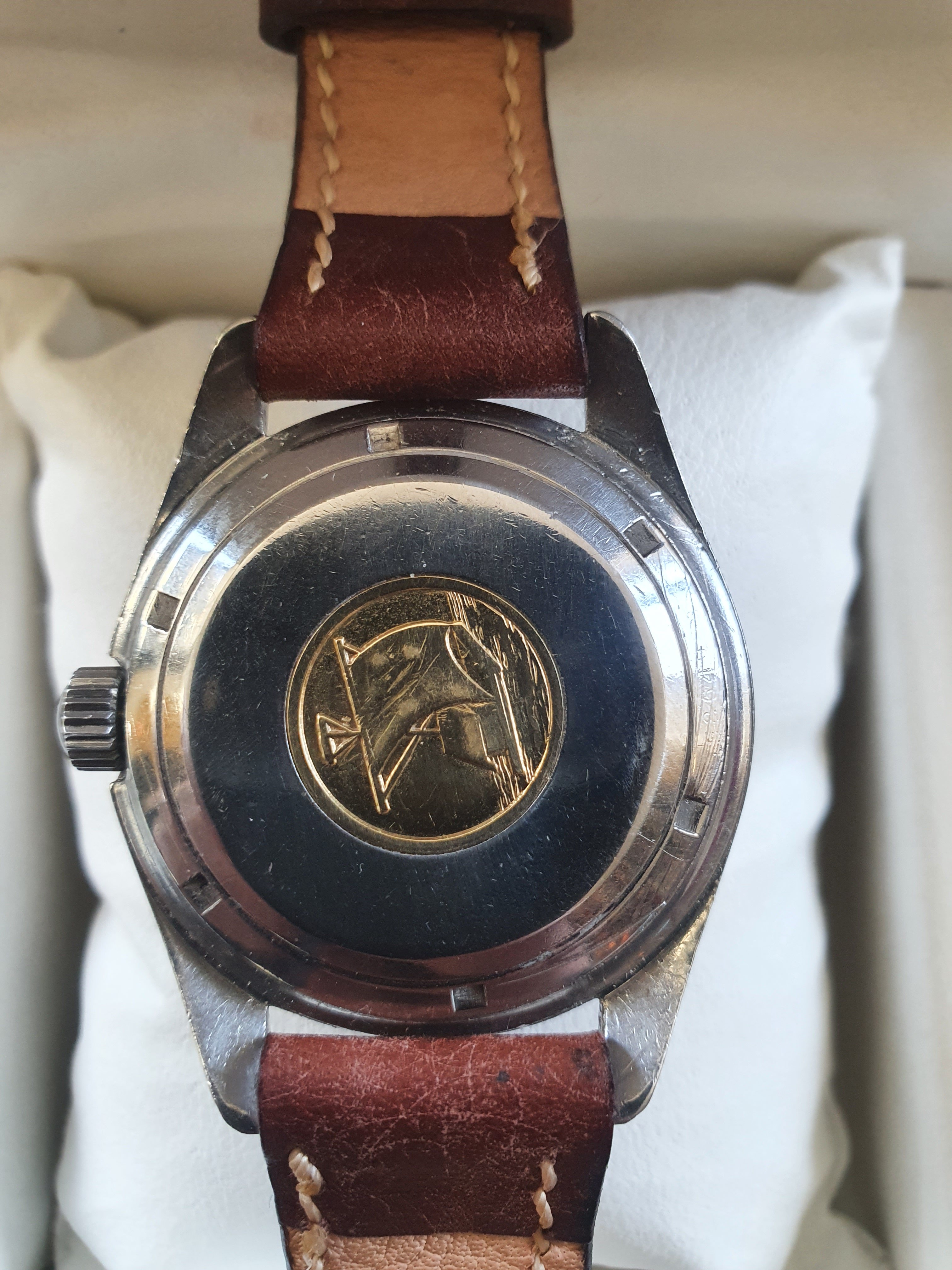 Overall, the watch is in decent, unpolished condition, with signs of general wear. There are some small marks on the lower left front of the case, and the dial shows minor signs of ageing. Gold medallion on back is in good shape. Crown is a replacement, though the appropriate one can be easily sourced.