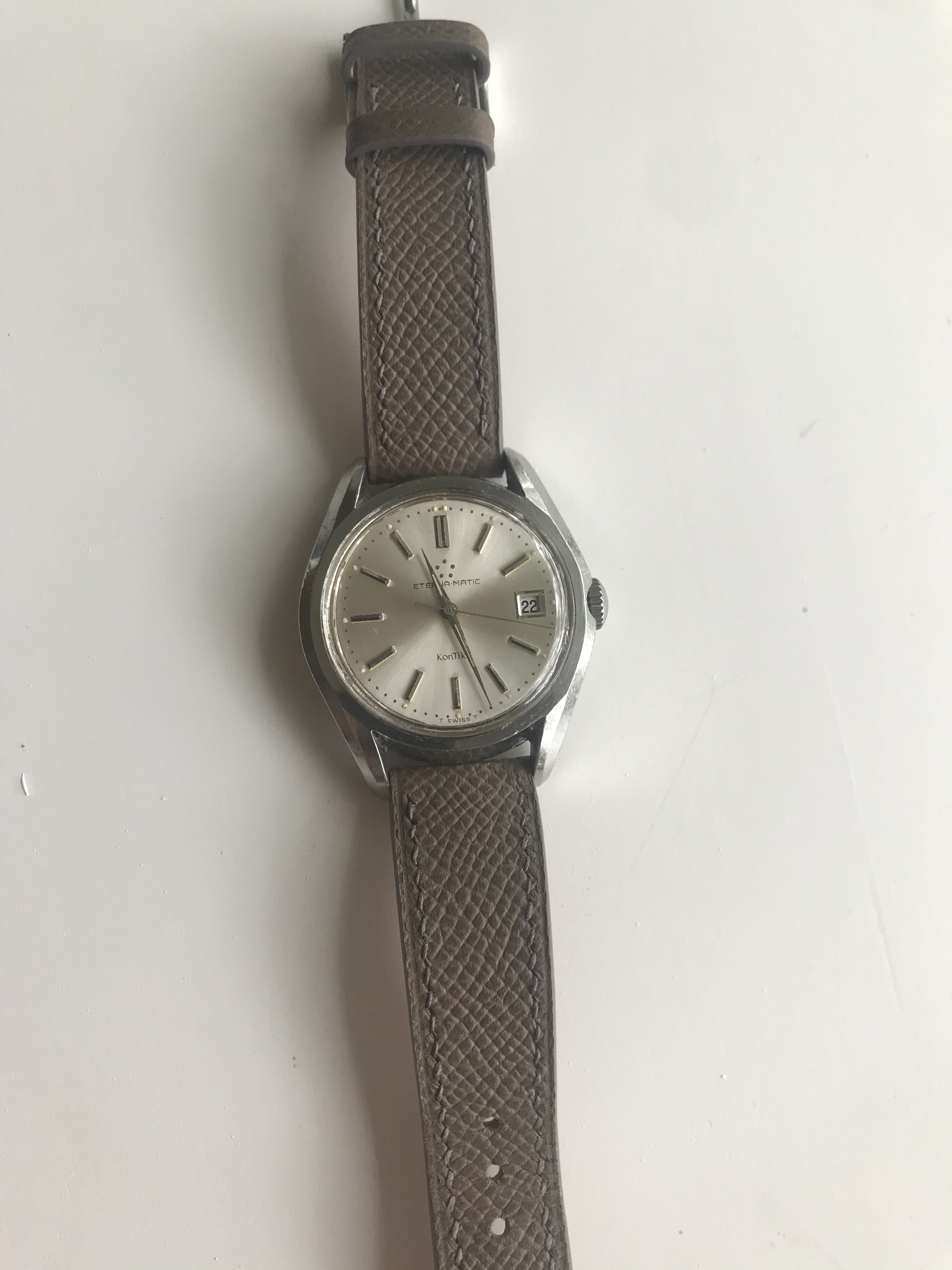 Got my first Eterna recently. A Kontiki with GF bracelet. Love the clean dial design. The bracelet needs to have some links removed, so this shot on a strap will have to do.
