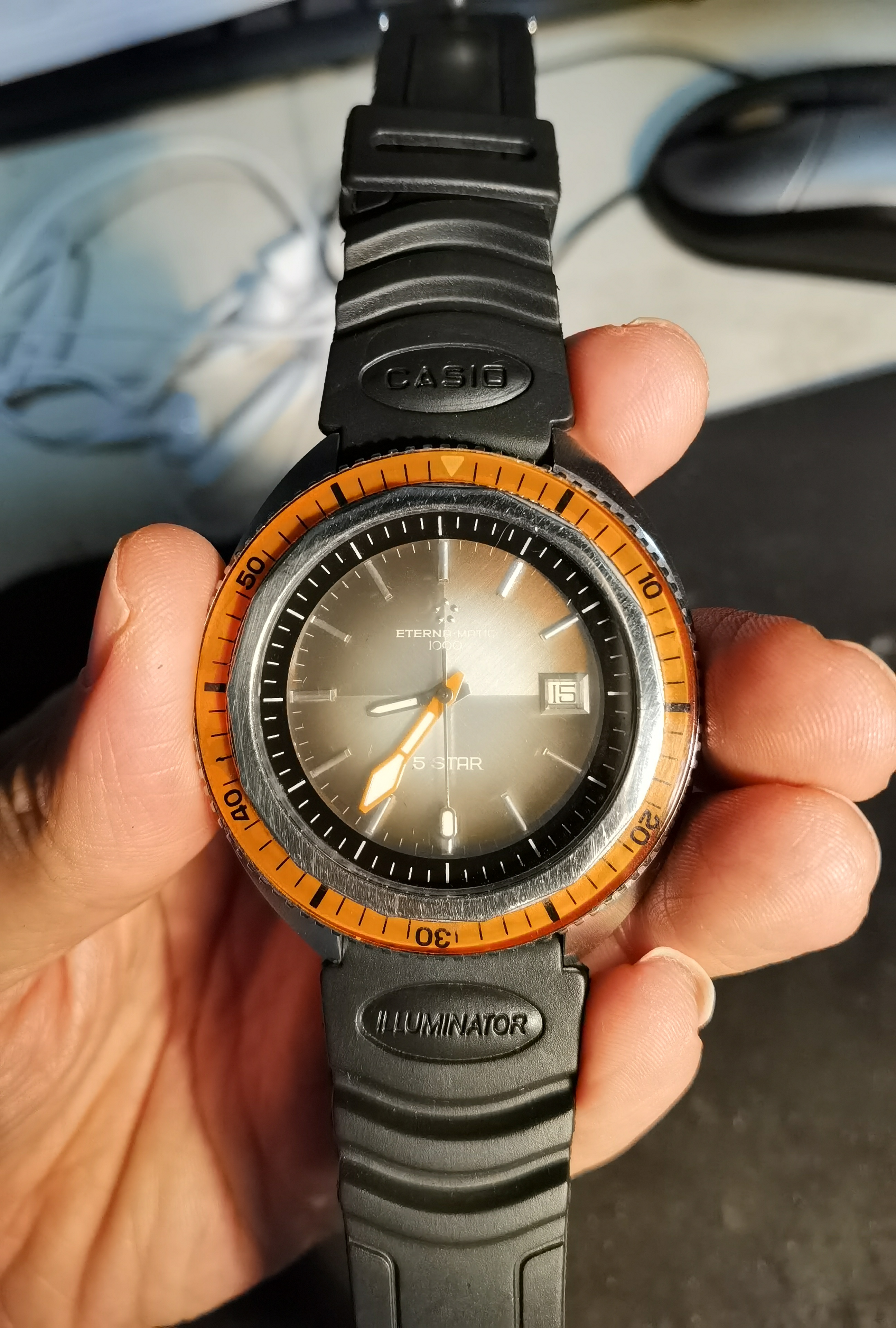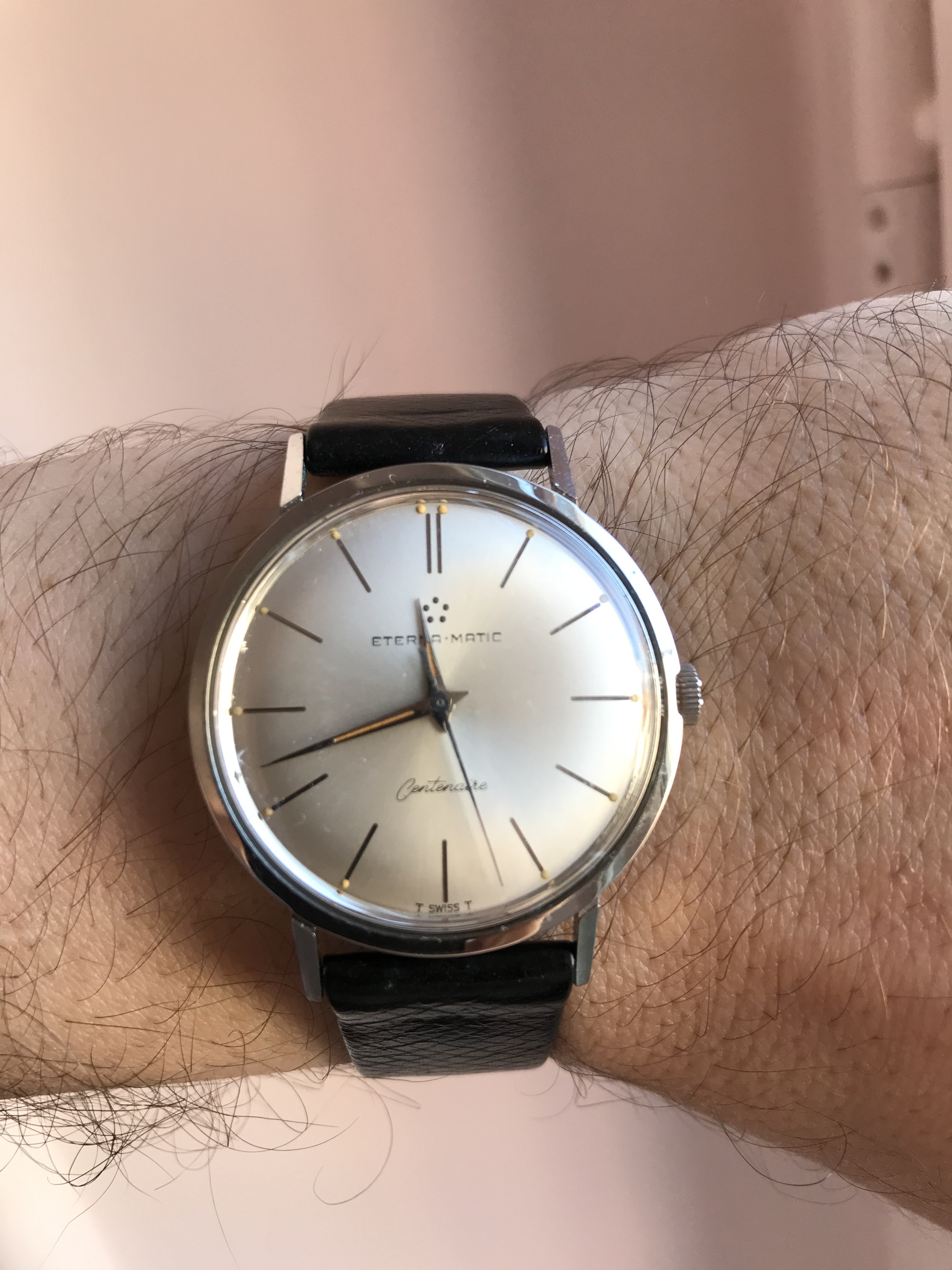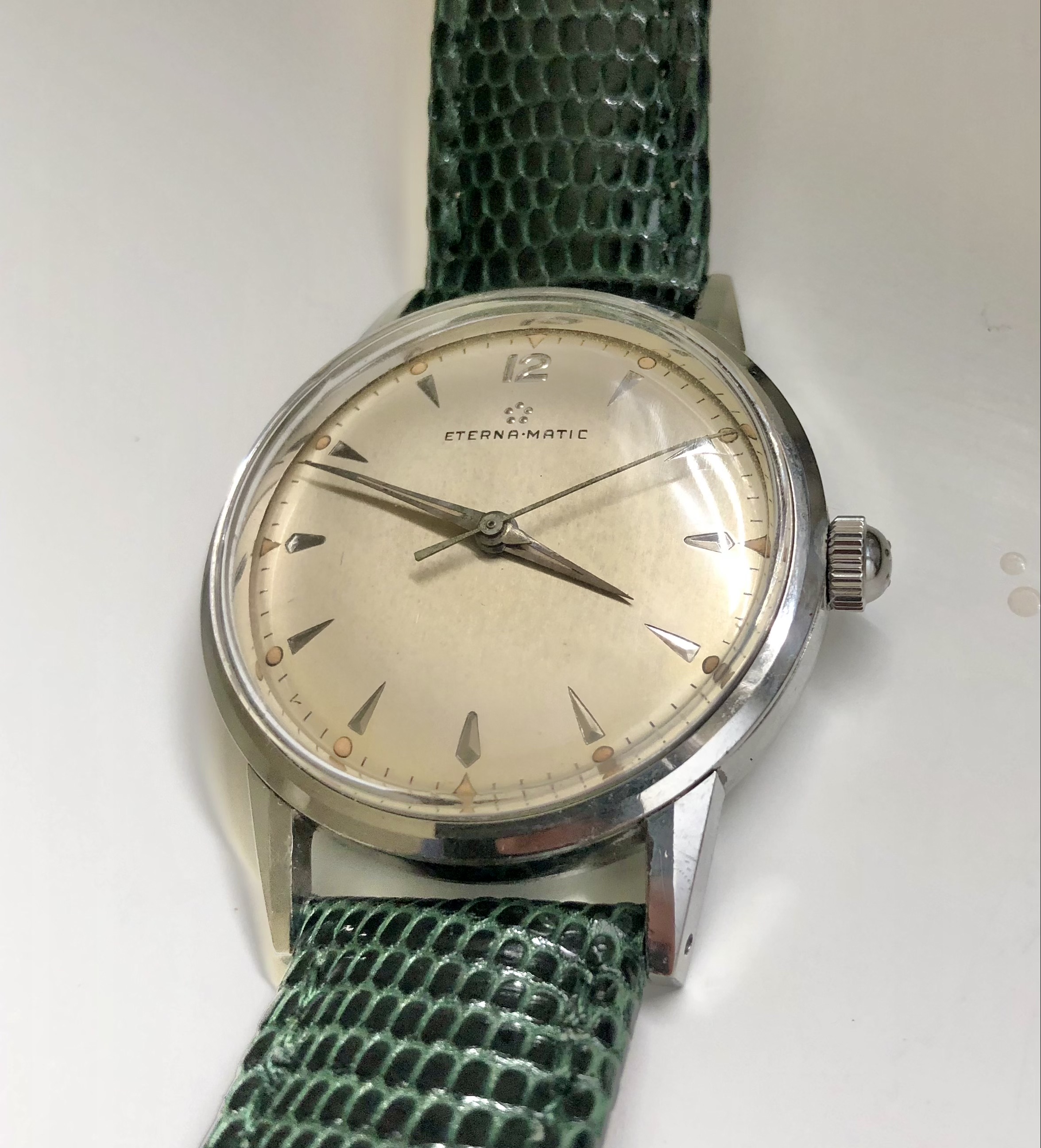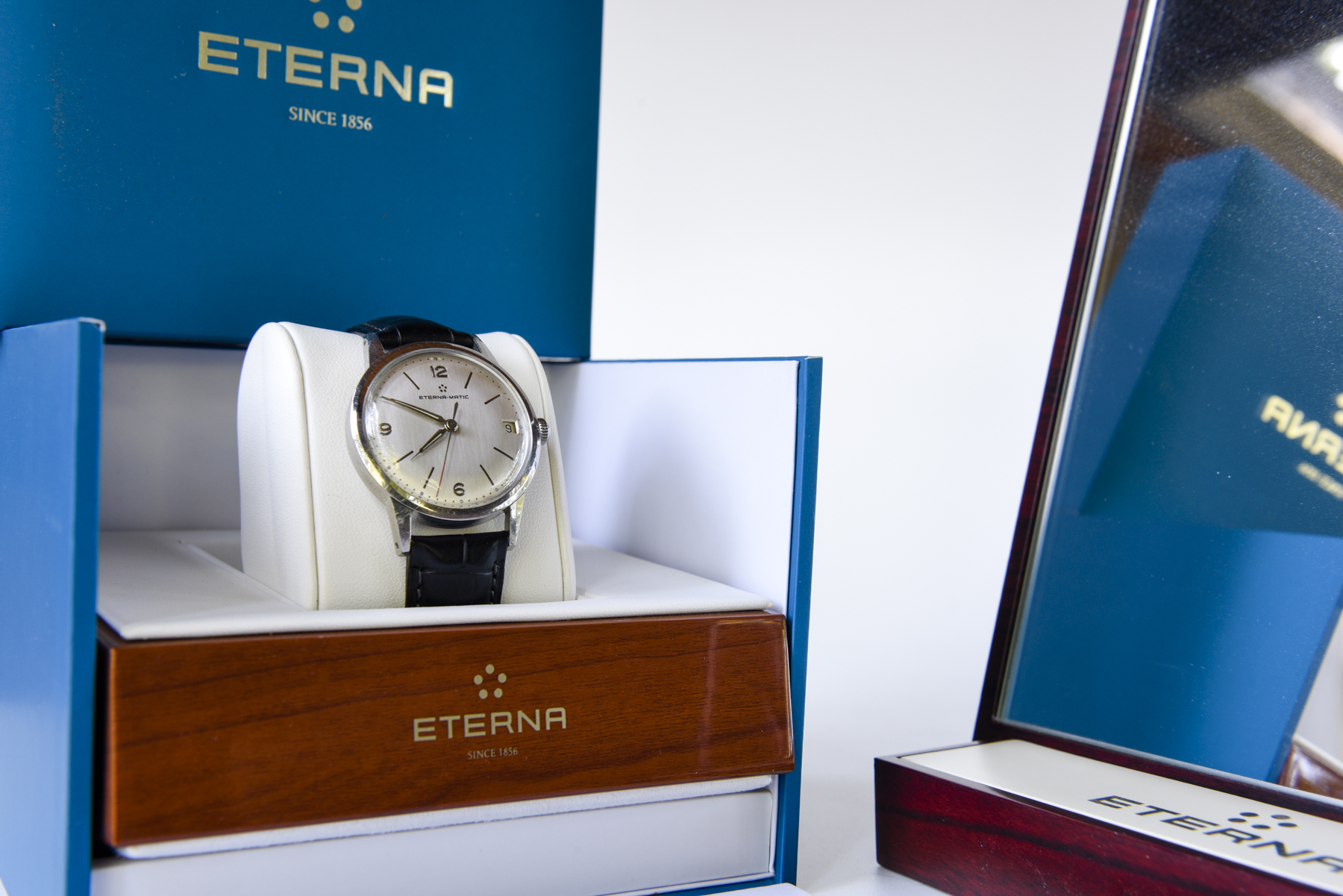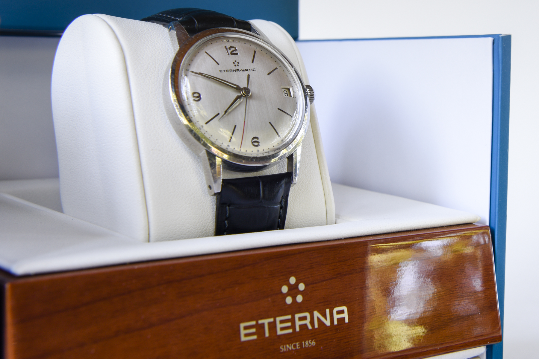 Very nice condition, with its box, its buckle and a Eterna strap.